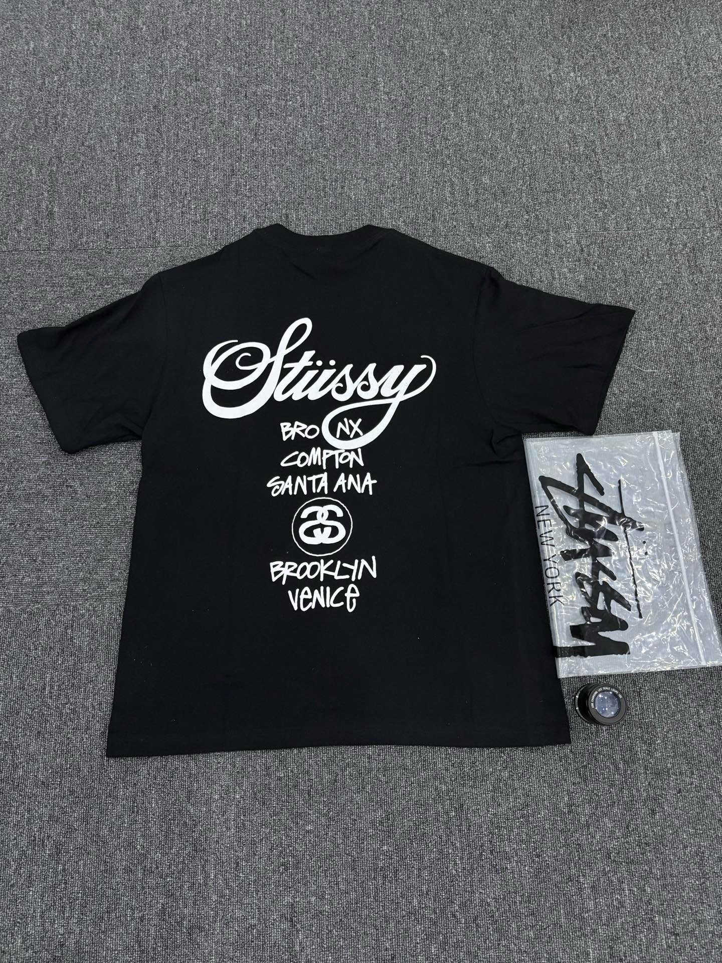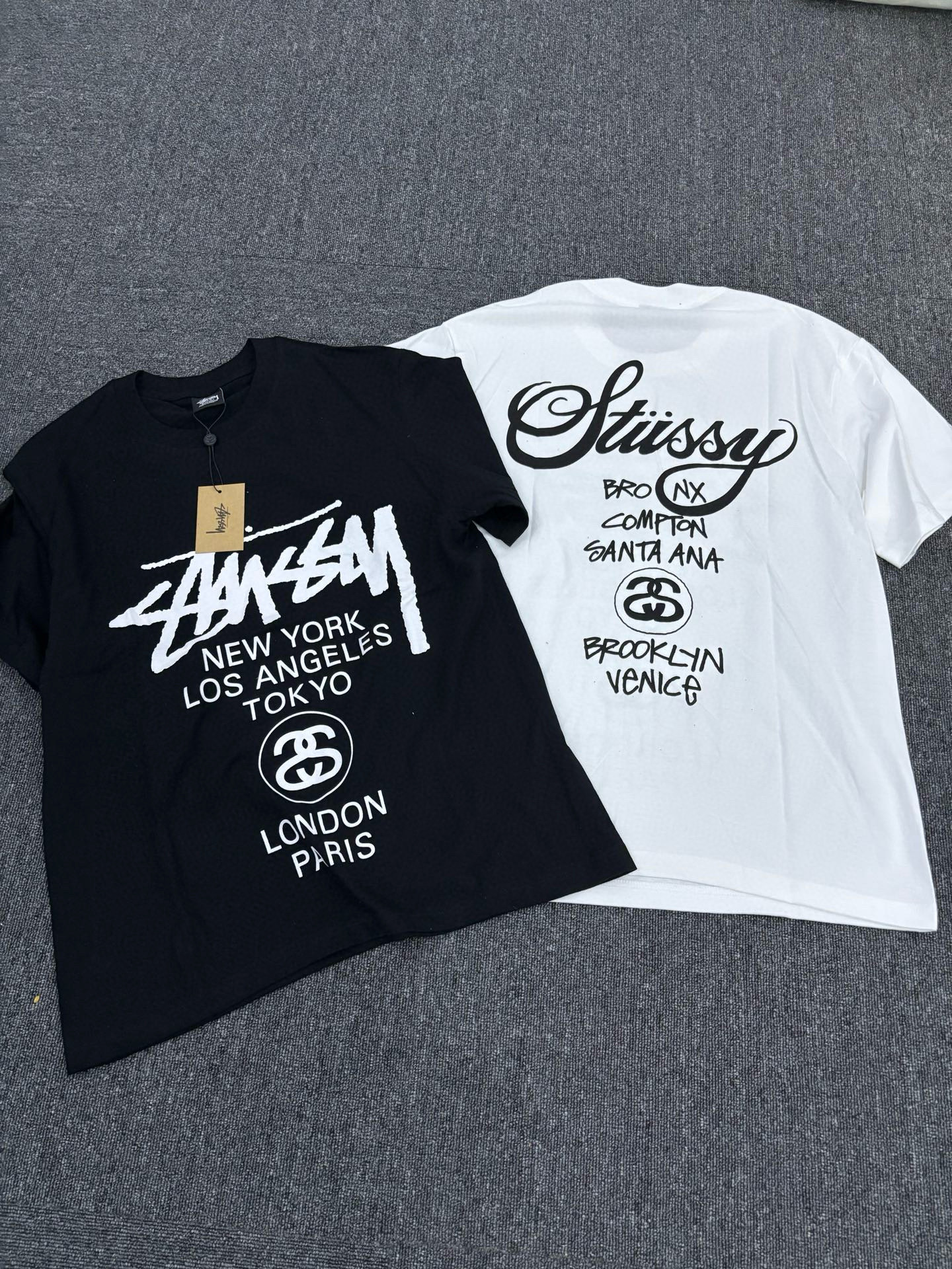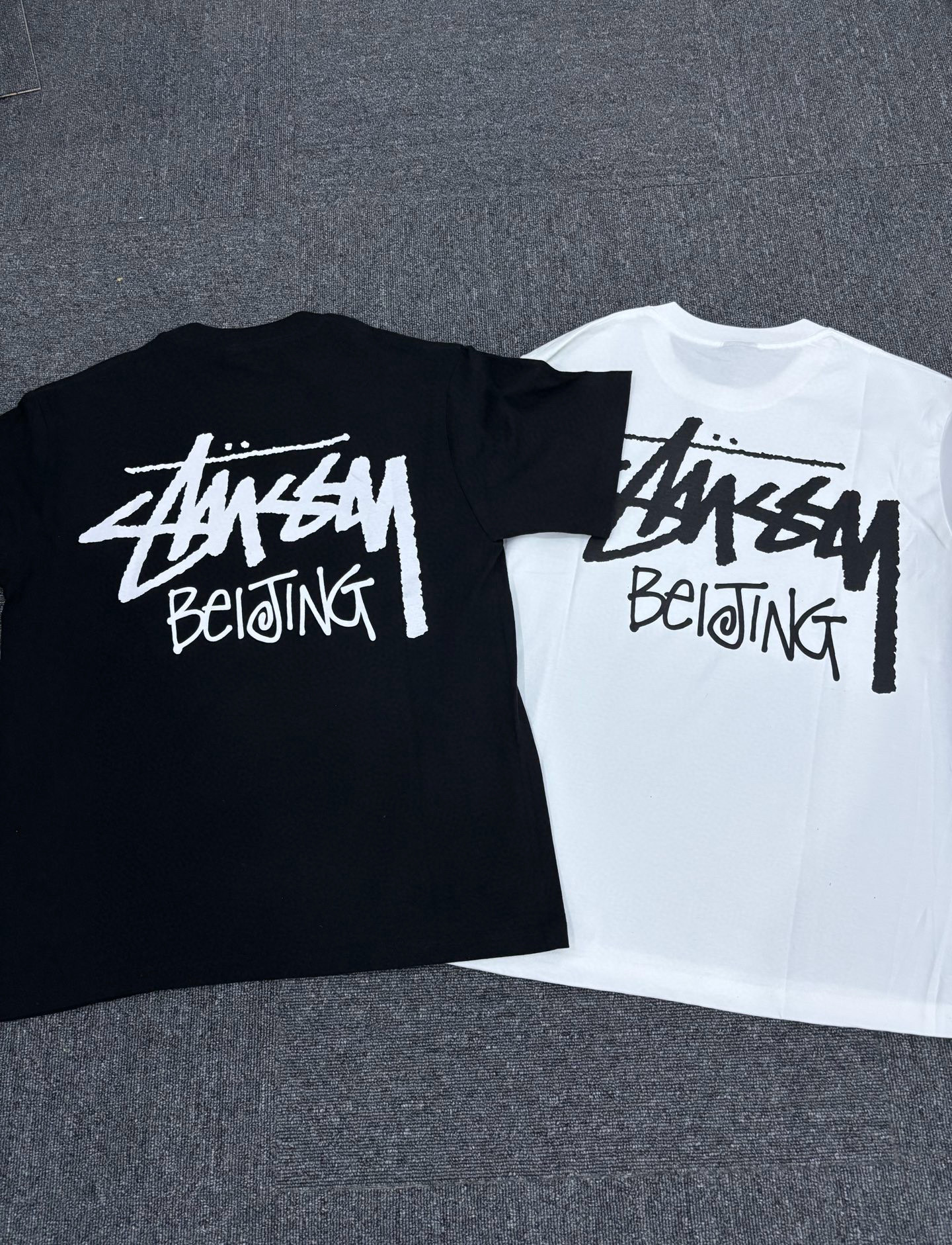 여름 stussy Stussy 2025 새로운 남성과 여성 반팔 티셔츠 남성 느슨한 헤비급 고품질 티셔츠 인쇄스토어 가기
