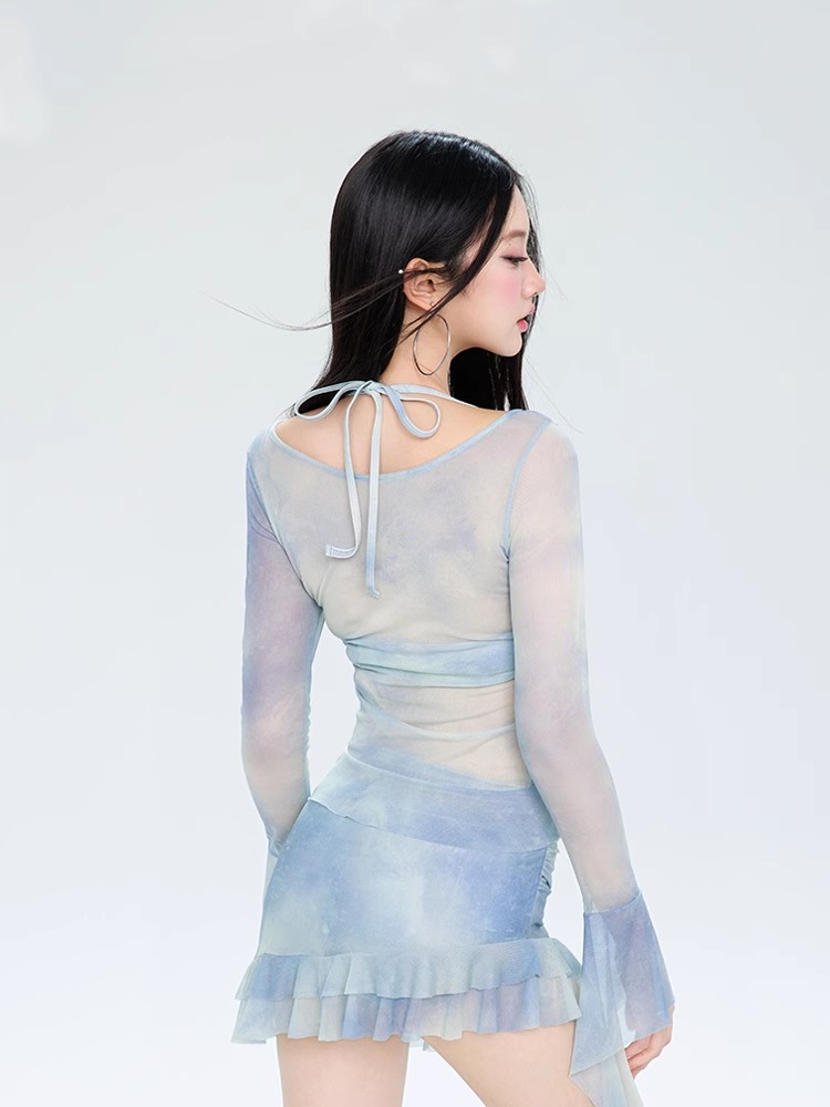 여성용 수영복 2025 새로운 스타일 아름답고 섹시한 스플릿 스커트 4피스 비키니 온천 긴팔 수영복