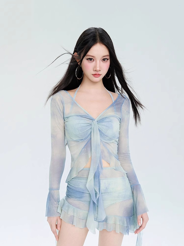 여성용 수영복 2025 새로운 스타일 아름답고 섹시한 스플릿 스커트 4피스 비키니 온천 긴팔 수영복스토어 가기
