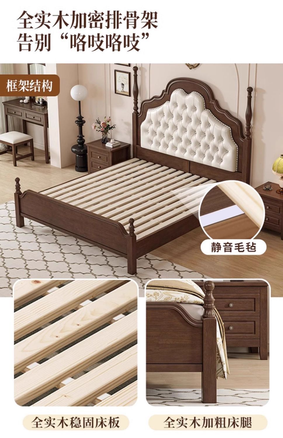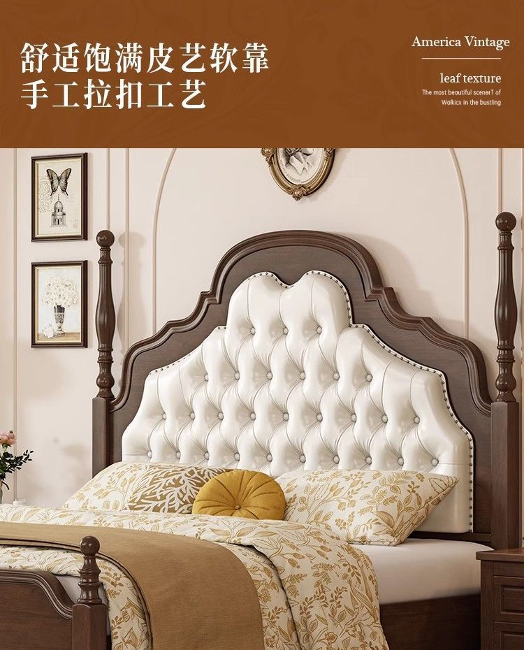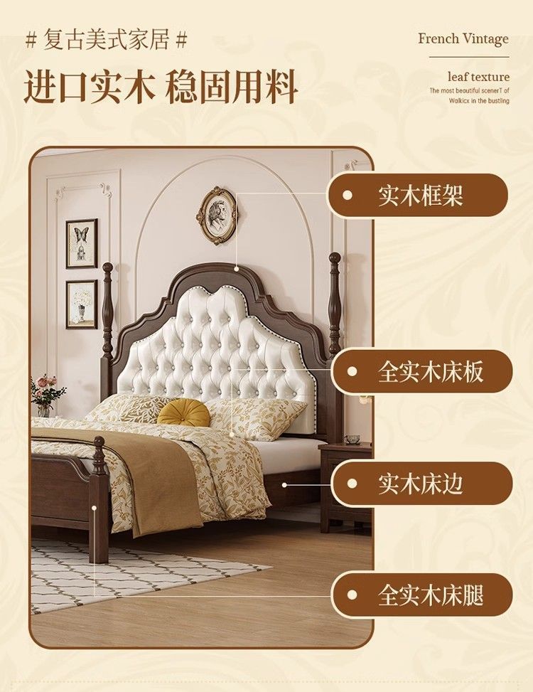 프랑스 복고풍 원목 침대, 모던하고 심플한 마스터 침실, 고급스럽고 분위기 있는 미국식 가벼운 럭셔리 더블 침대, 유럽식 중세 웨딩 침대스토어 가기
