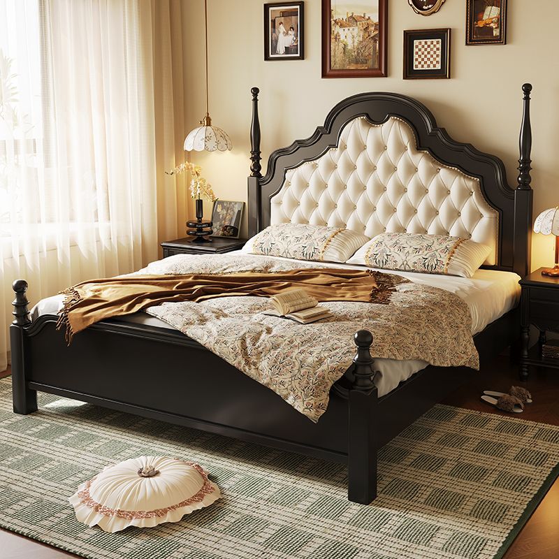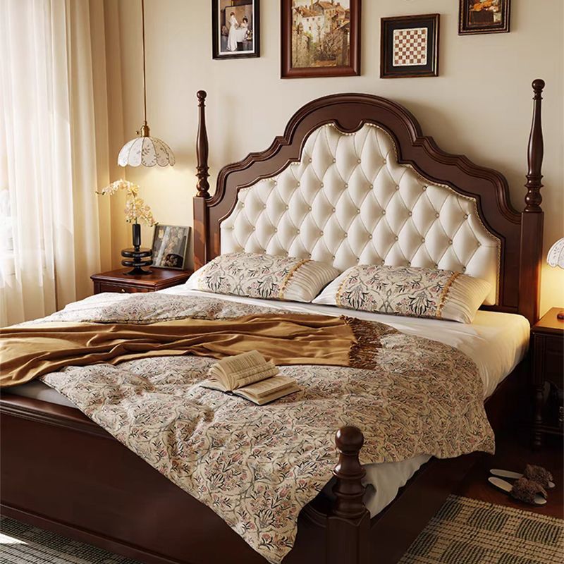 프랑스 복고풍 원목 침대, 모던하고 심플한 마스터 침실, 고급스럽고 분위기 있는 미국식 가벼운 럭셔리 더블 침대, 유럽식 중세 웨딩 침대