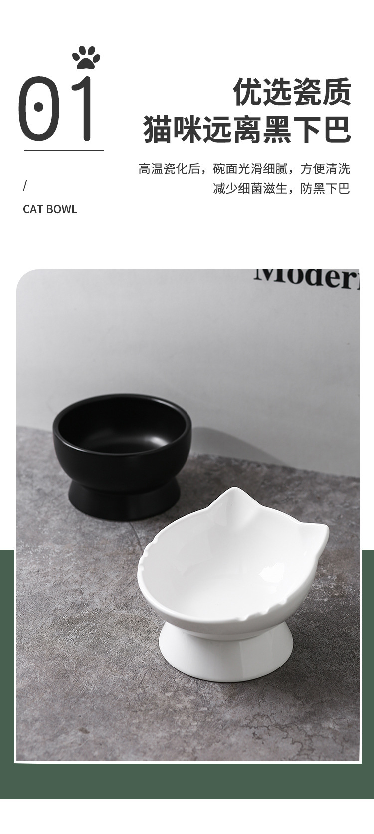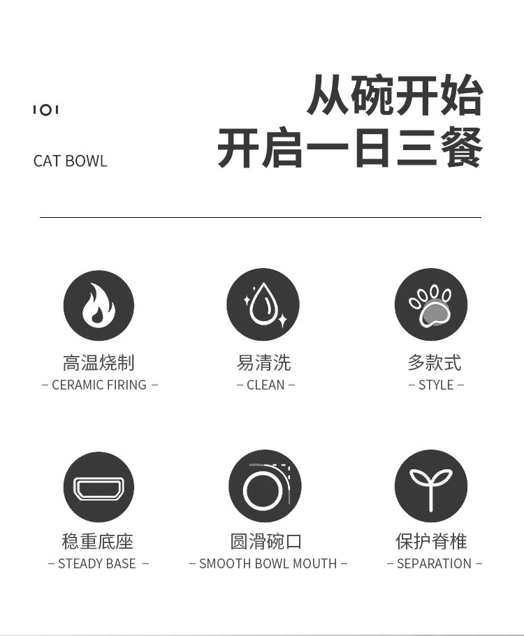 고양이 그릇, 세라믹 고양이 사료 그릇, 개 그릇, 애완동물 특수 식품 그릇, 밥 그릇, 대구경 물 그릇, 높은 발과 기울어짐 방지