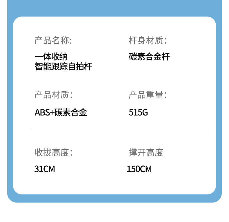 • 1.5m [AI 지능형 얼굴 추적 + 다기능 원격 블루투스 리모컨] 매우 안정적인 4각 삼각대 ☆ 통합 짐벌 셀카봉