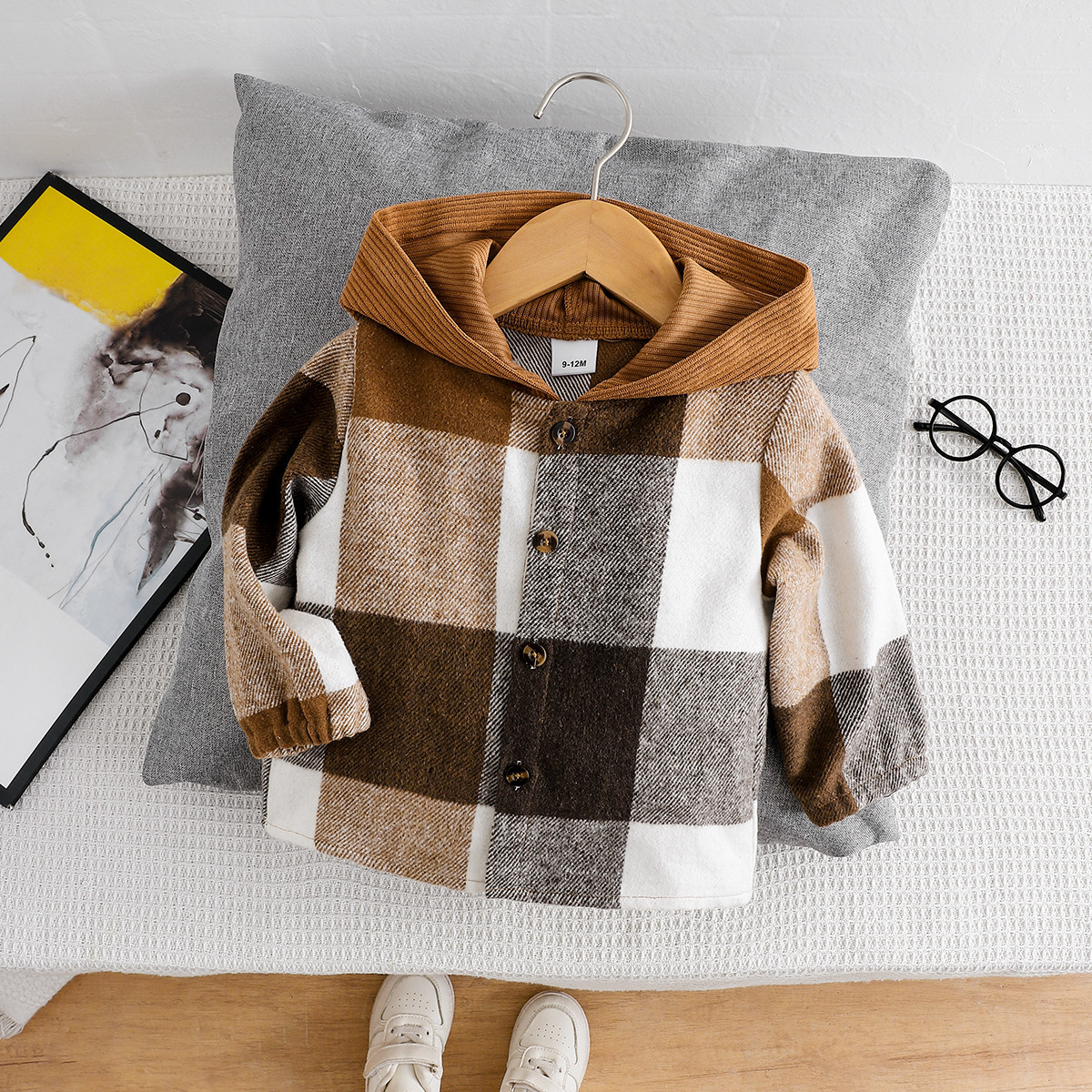 가을 소년 코트 한국 스타일 새로운 어린이 중립 격자 무늬 옷깃 기모 긴팔 탑 트렌디 짧은 카디건스토어 가기