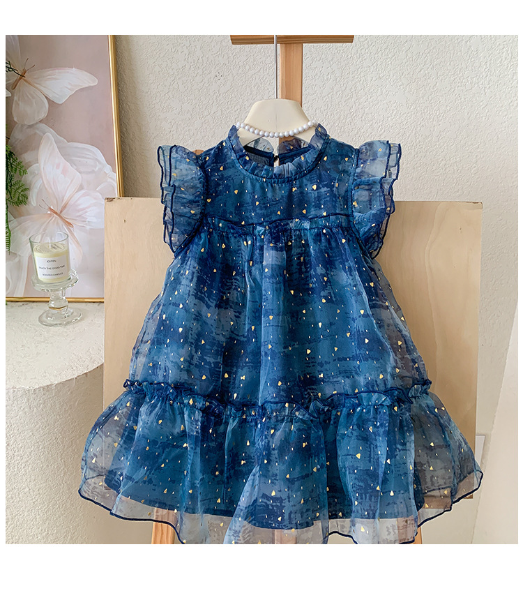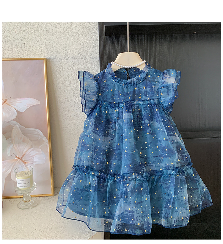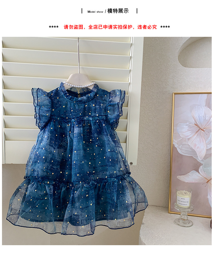 여자 스커트 2025 여름 새로운 스타일 어린이 드레스 작은 플라잉 슬리브 아기 공주 드레스 여름 메쉬 스커트스토어 가기