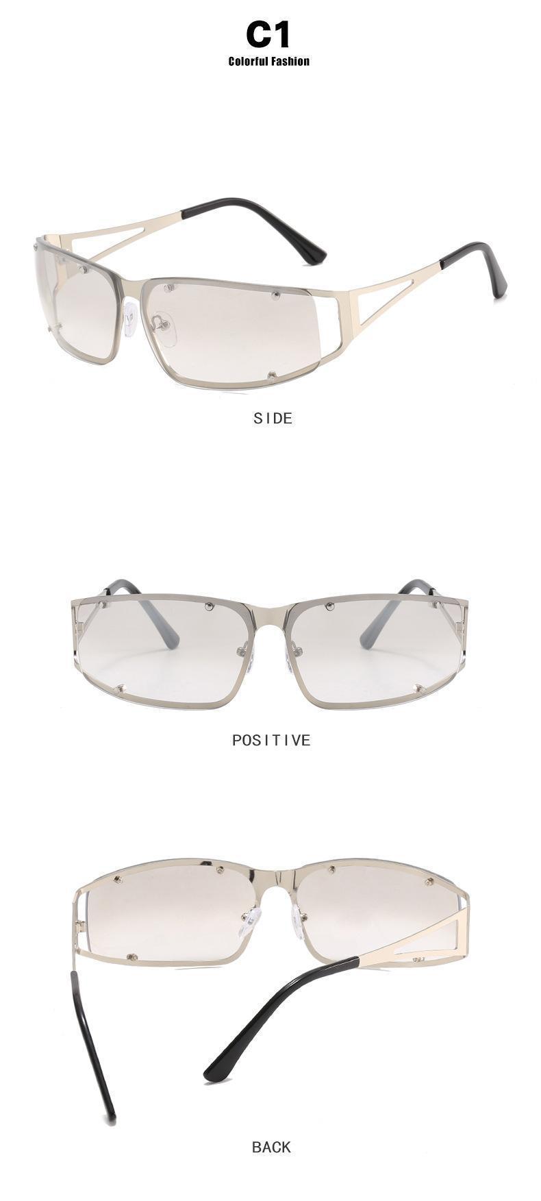 유럽과 미국의 패션 미래 기술 Y2K 대형 프레임 선글라스 INS 맞춤형 중공 리벳 선글라스 거리 사진 다용도 안경