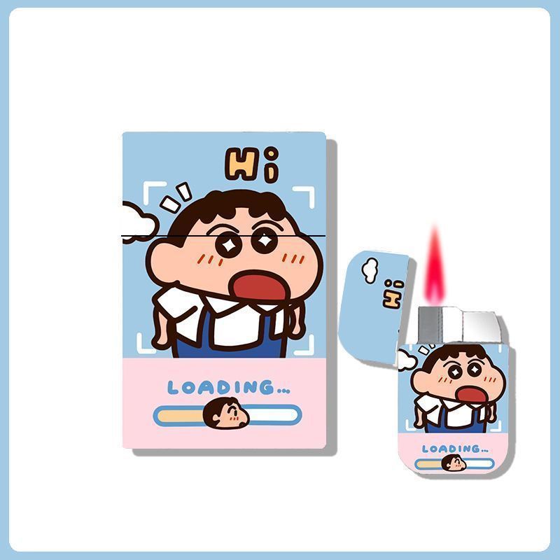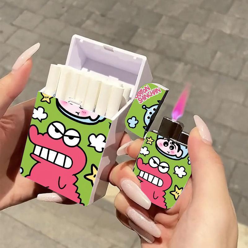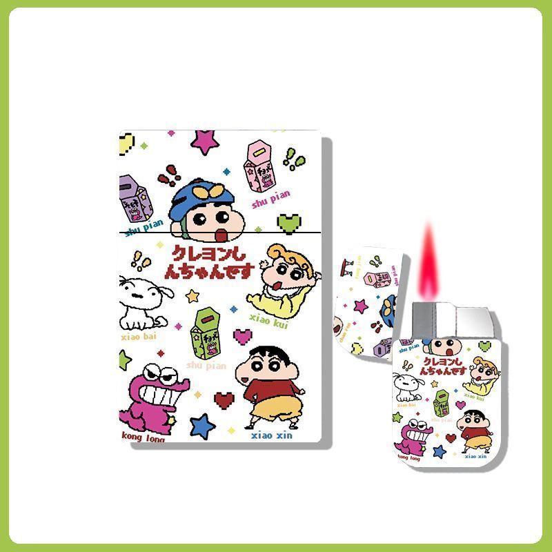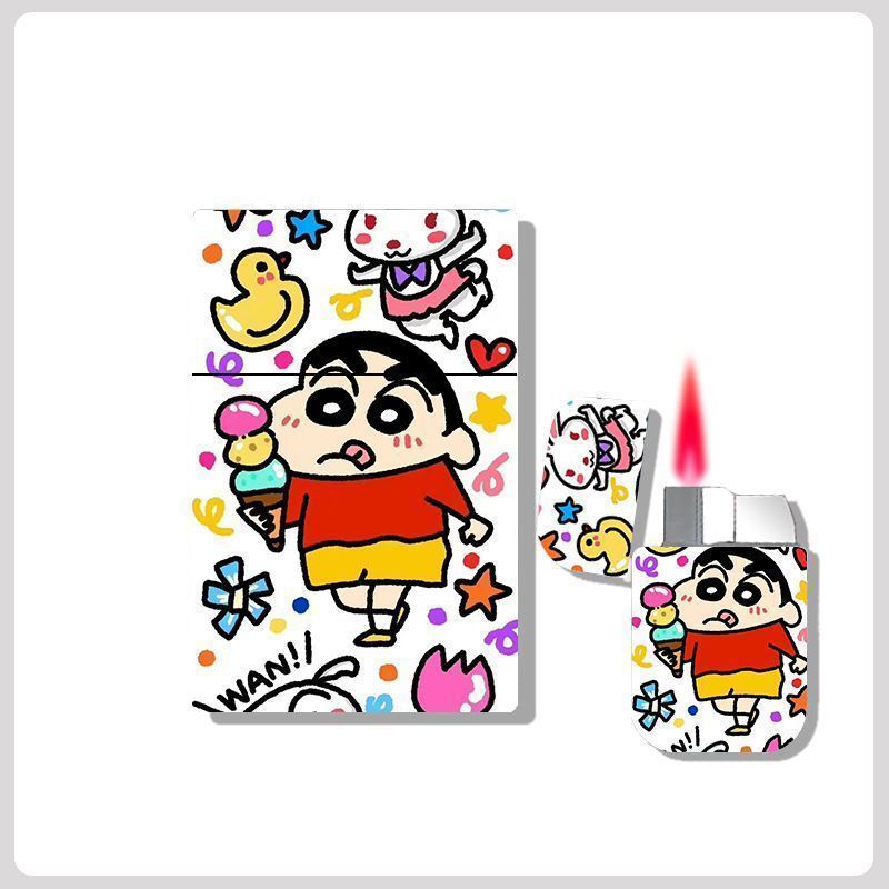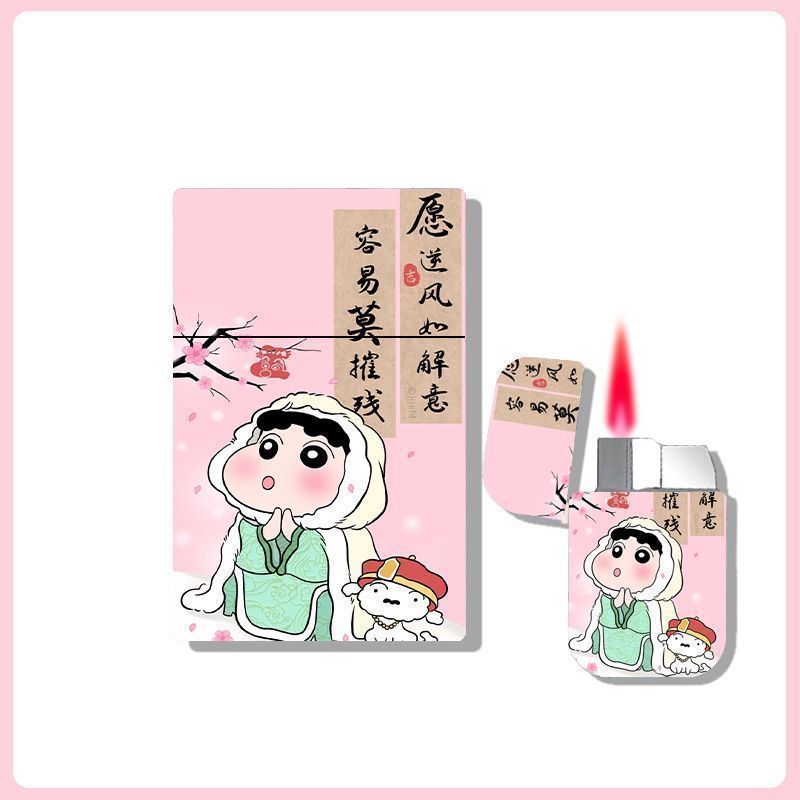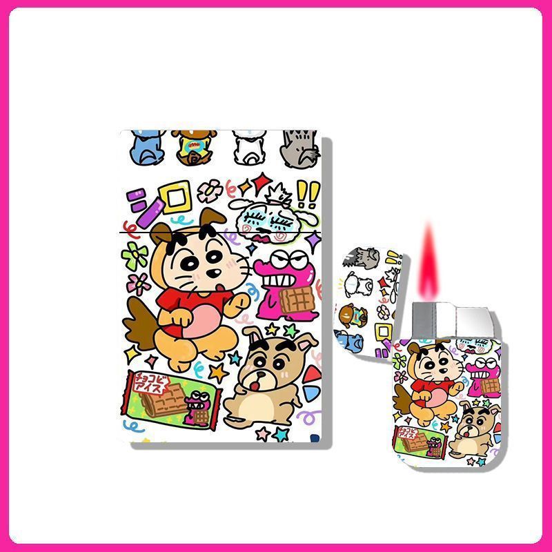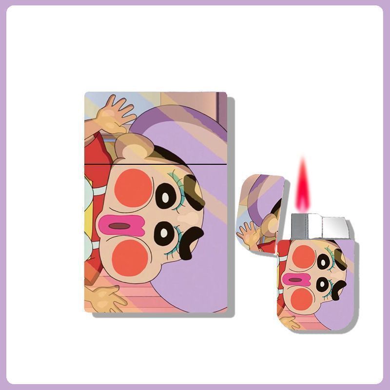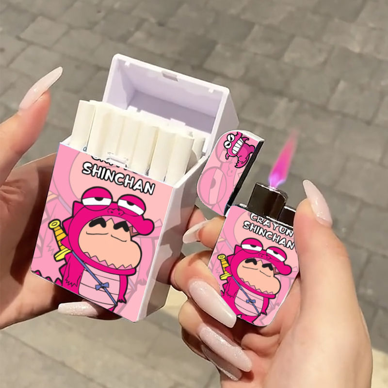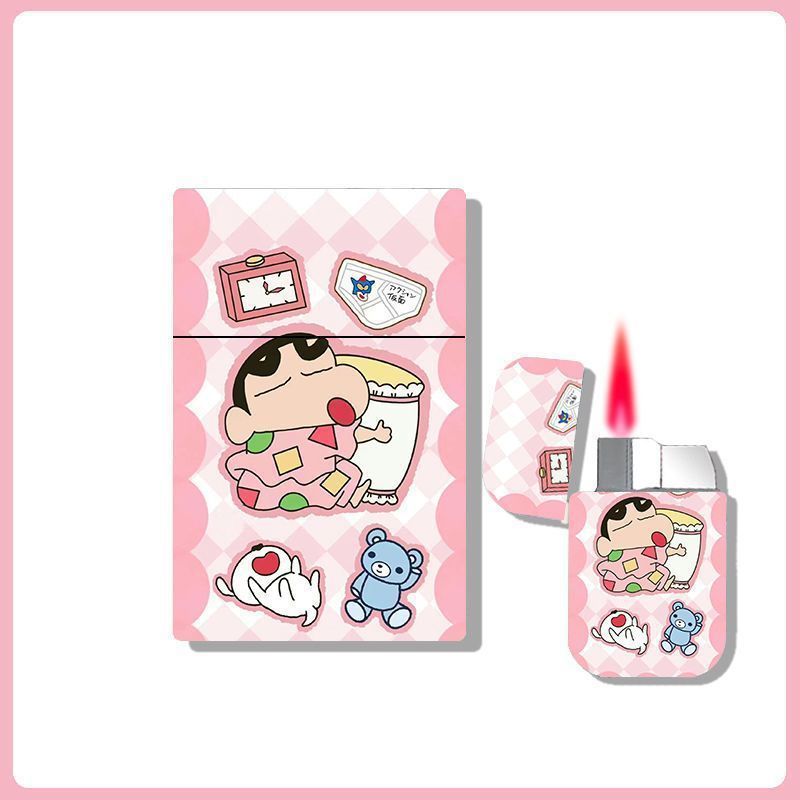 【다중 플랫폼 배송】귀여운 짱구 만화 라이터 담배갑 520 핑크 불꽃 창의적 디자인