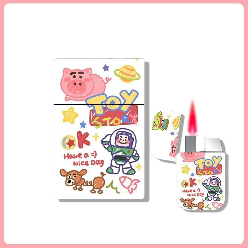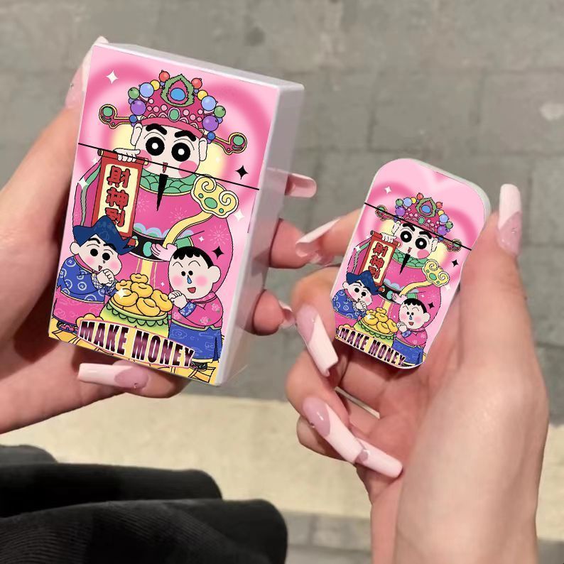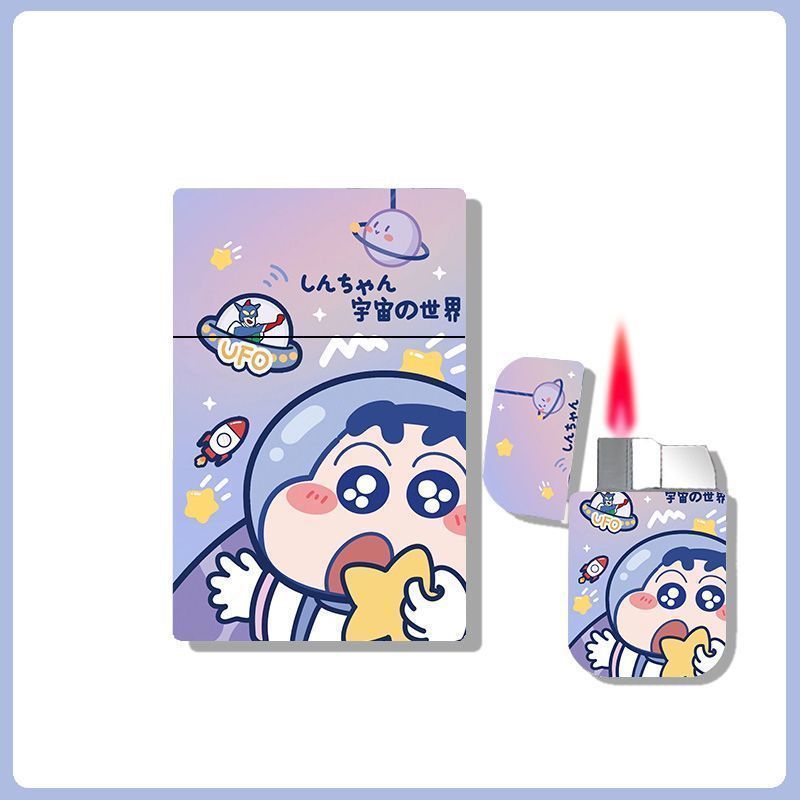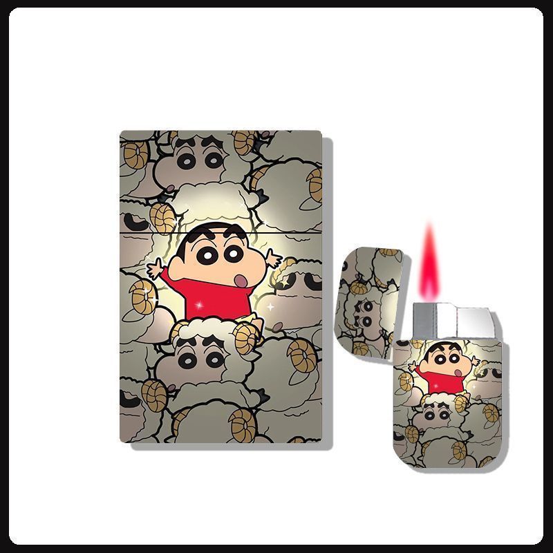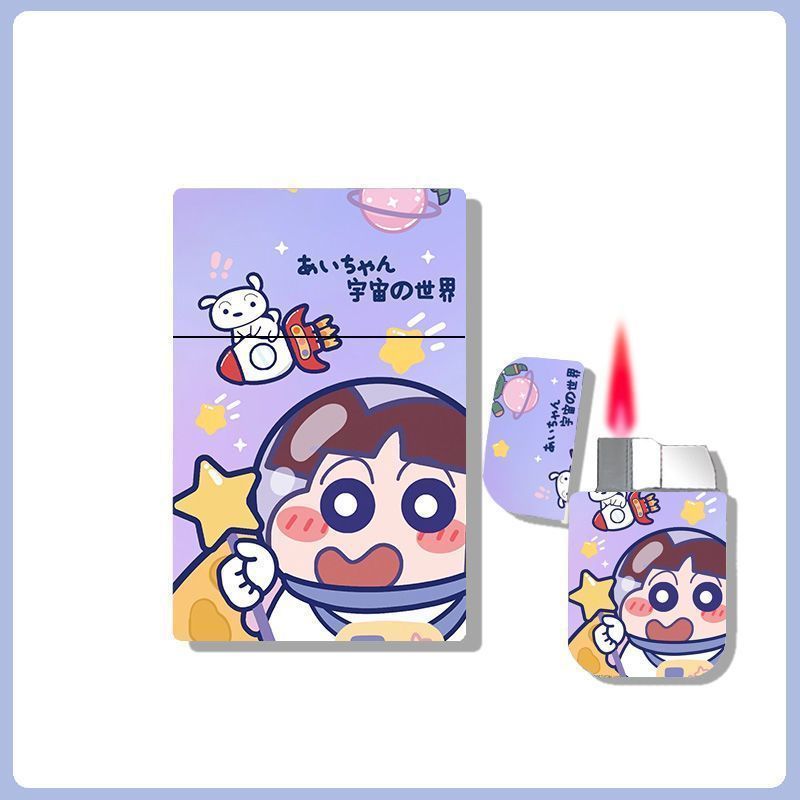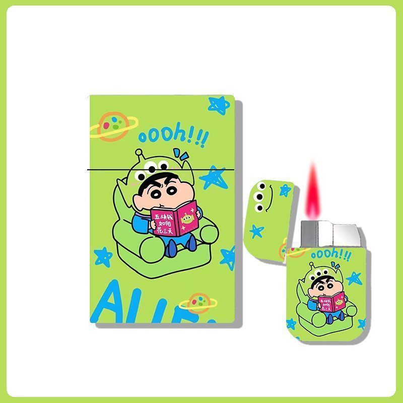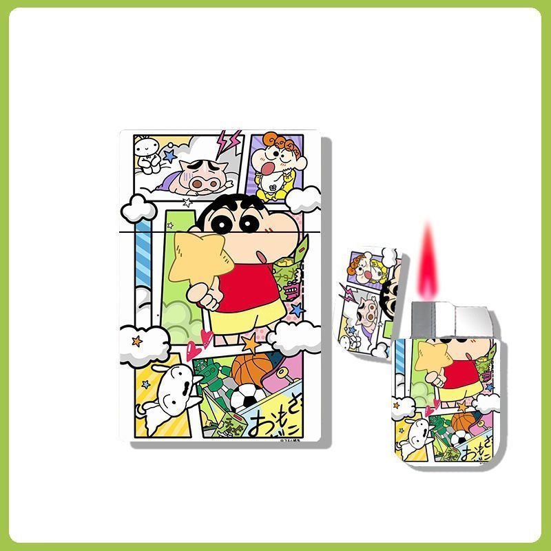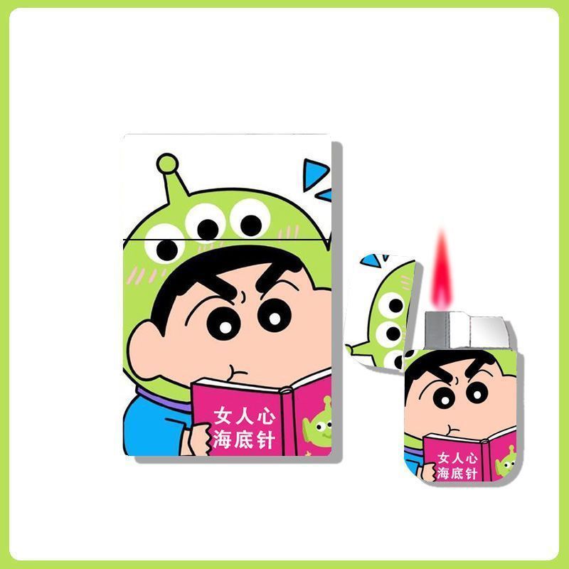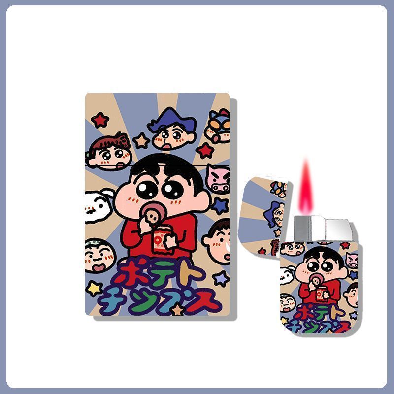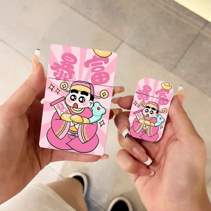 【다중 플랫폼 배송】귀여운 짱구 만화 라이터 담배갑 520 핑크 불꽃 창의적 디자인