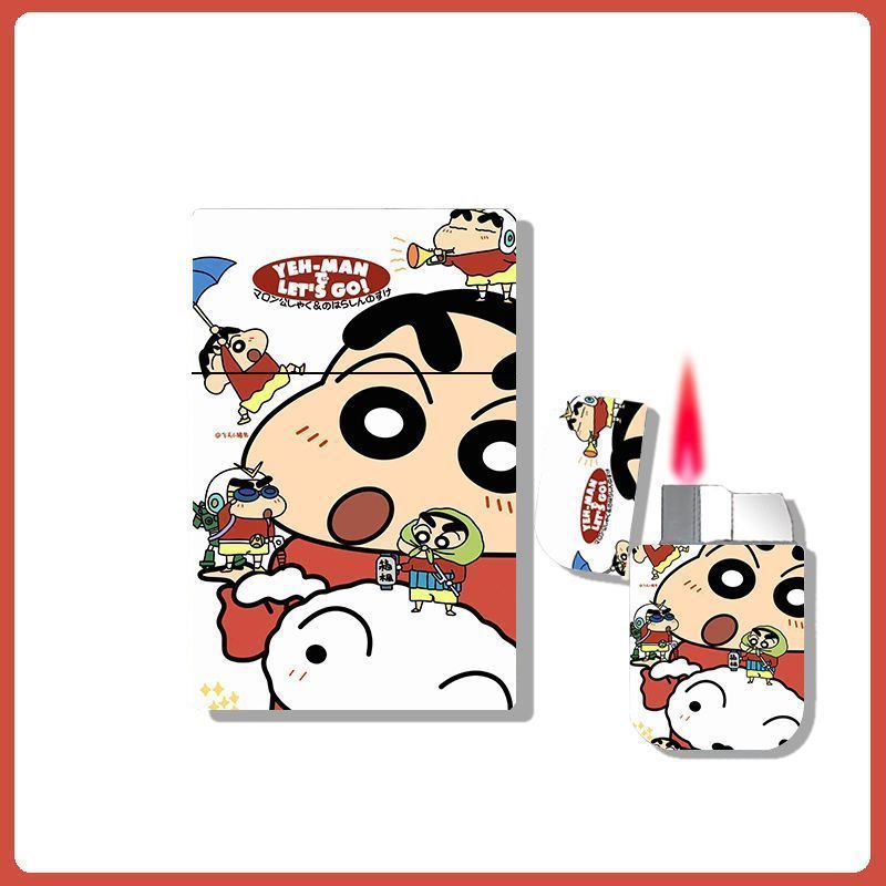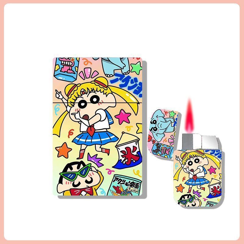 【다중 플랫폼 배송】귀여운 짱구 만화 라이터 담배갑 520 핑크 불꽃 창의적 디자인스토어 가기
