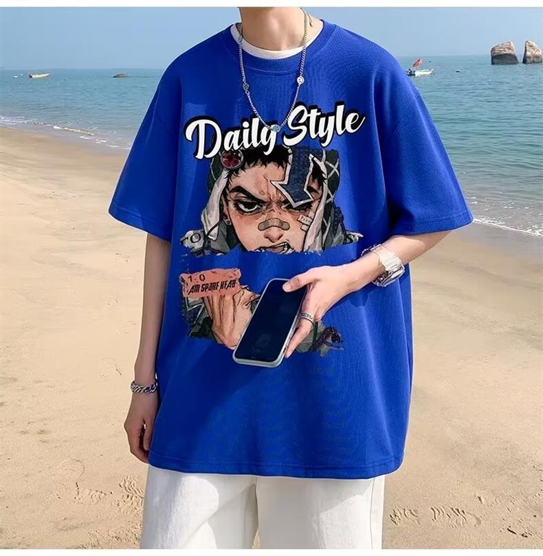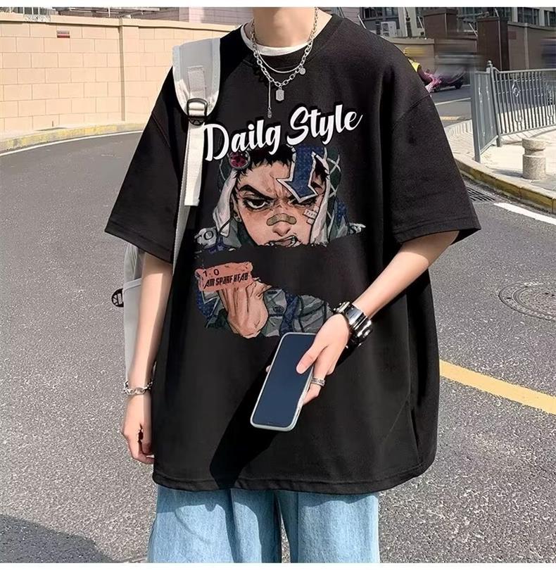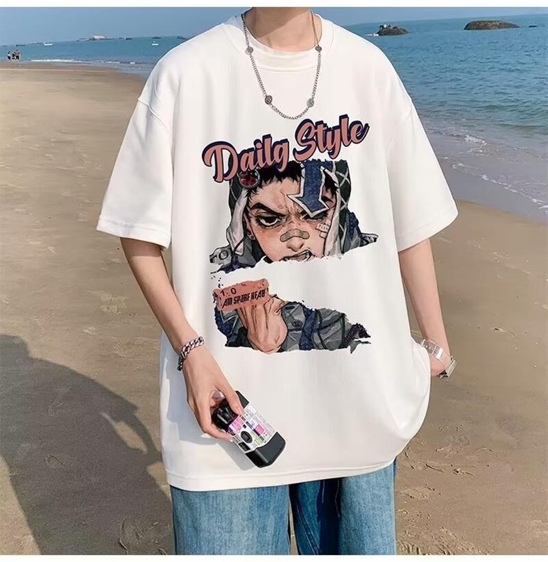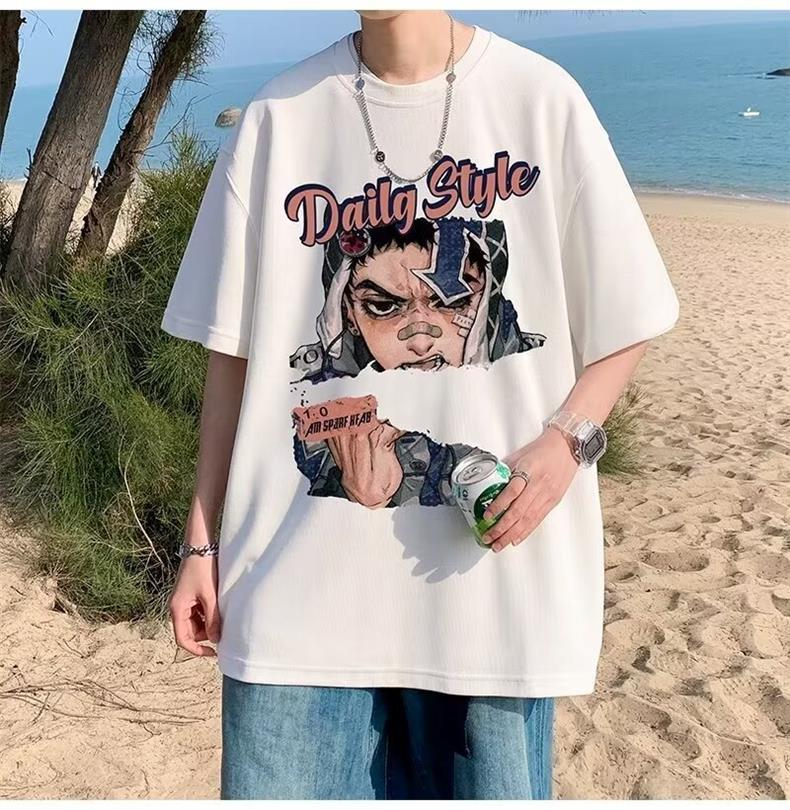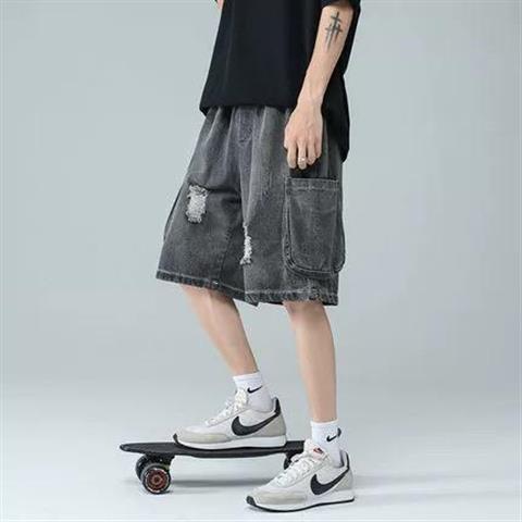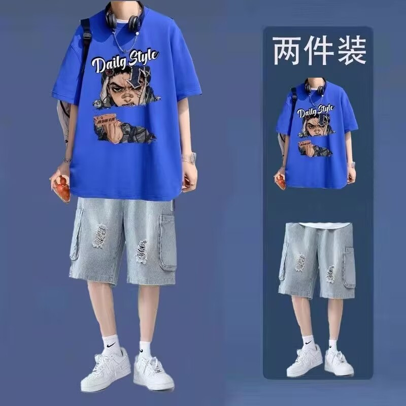 십대를 위한 루즈한 반팔 티셔츠 슈트, 트렌디하고 핸섬한 찢어진 데님 반바지, 투피스 세트, 남성 여름 아메리칸 스타일