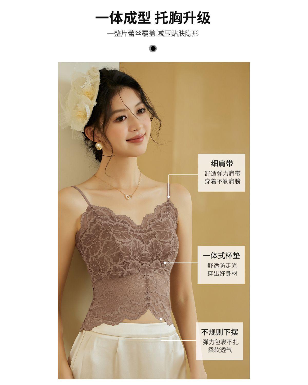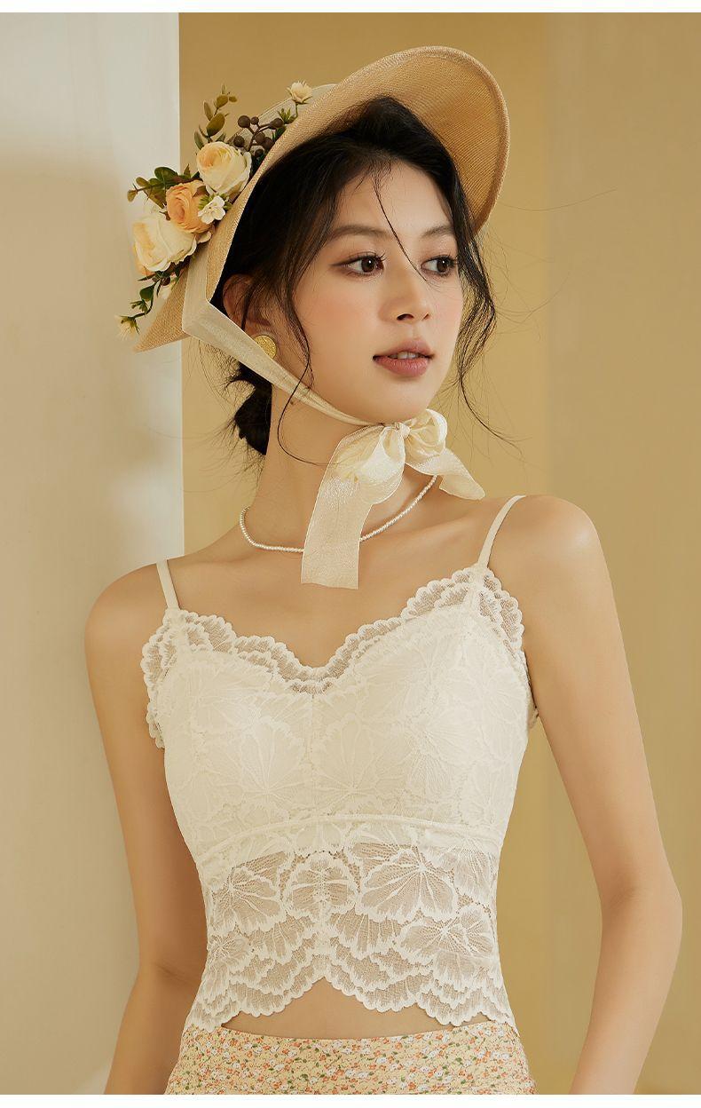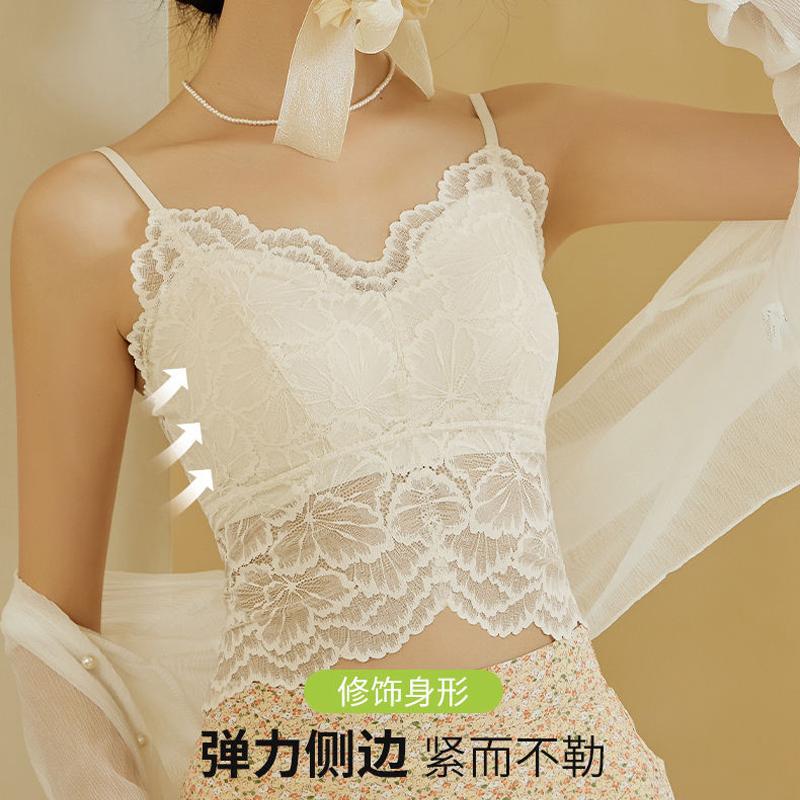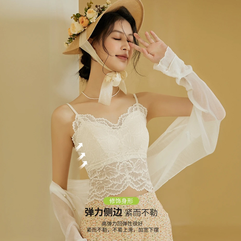 국경 간 대외 무역 인기 무봉제 레이스 섹시한 아름다운 등 멜빵 여성용 가슴 패드 조끼 여름 얇은 통기성 겉옷