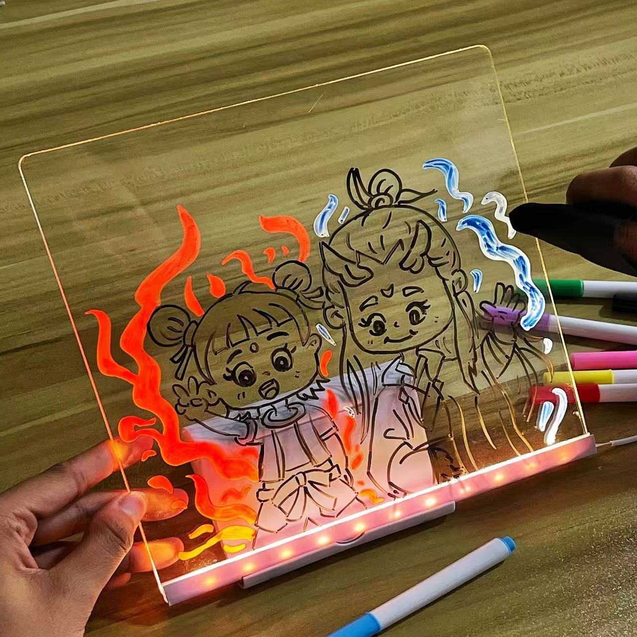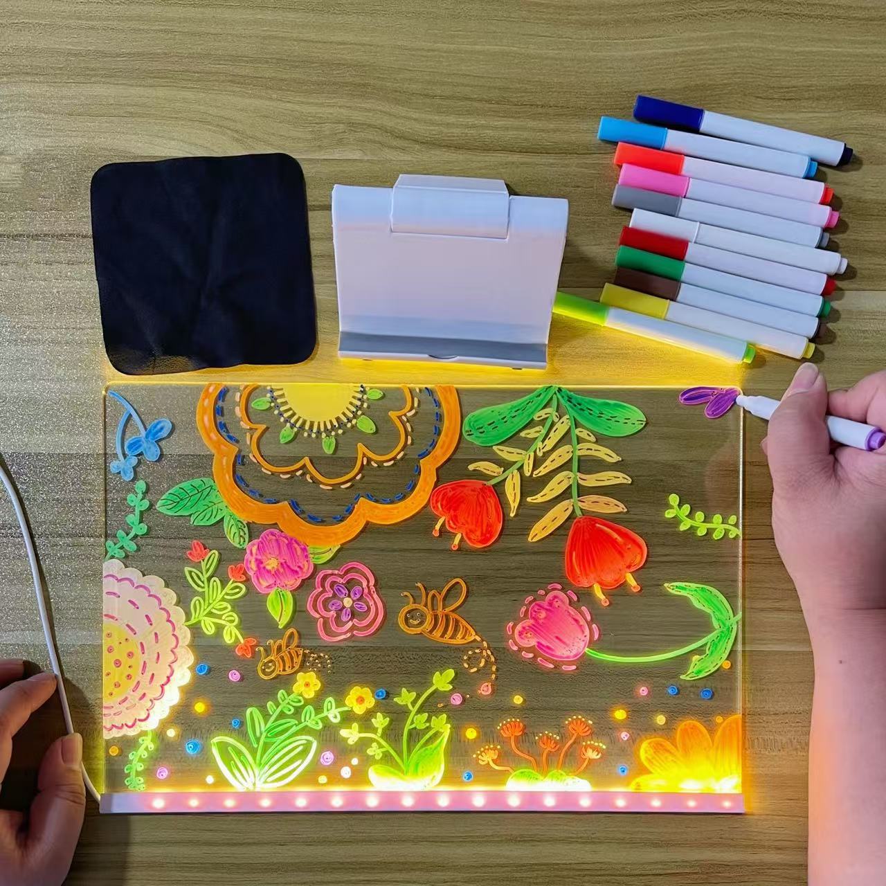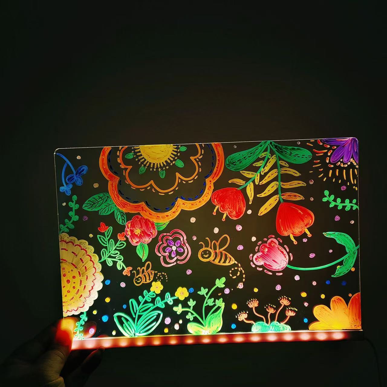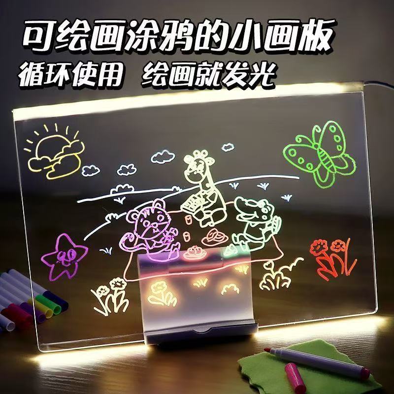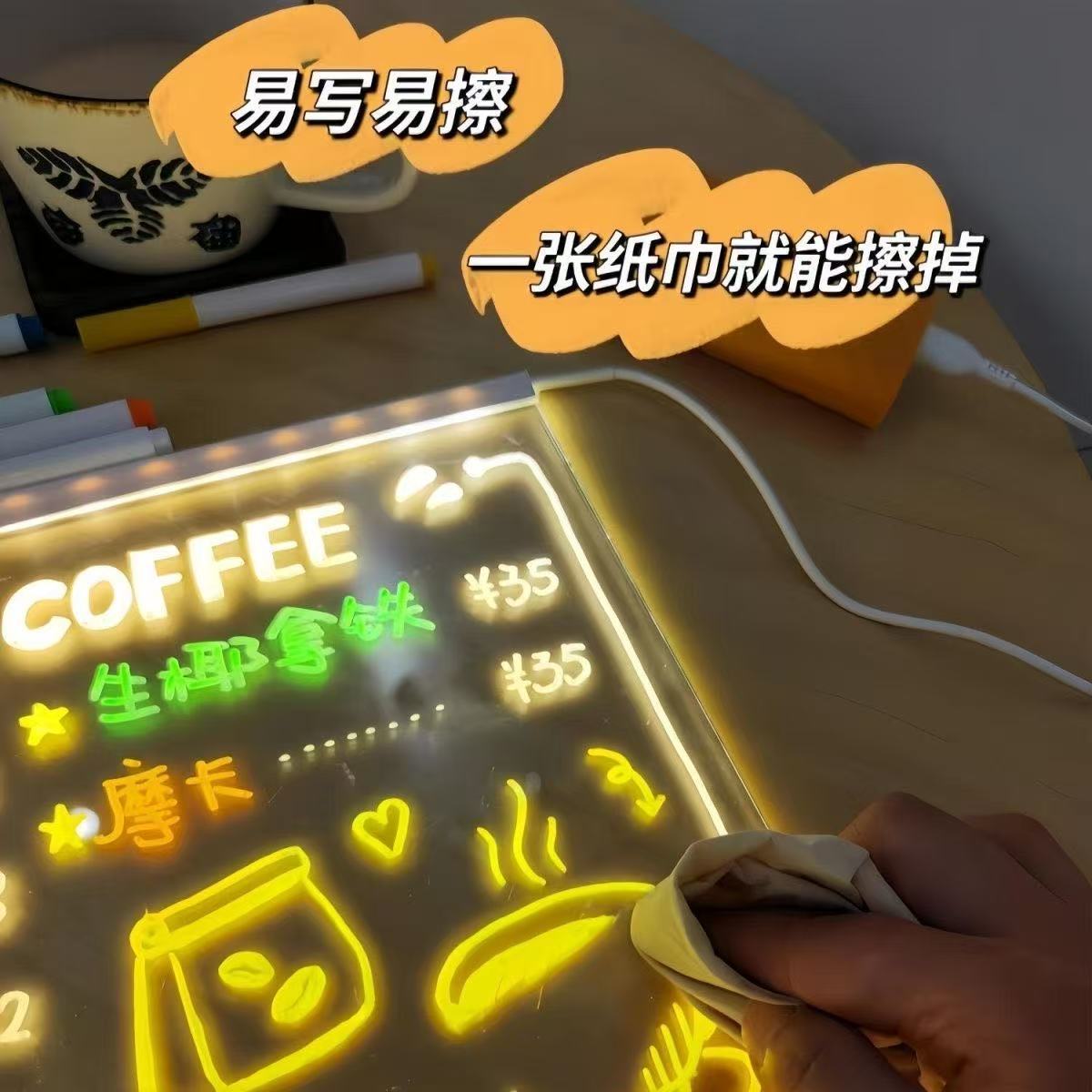국경 간 ins 지울 수있는 화이트 보드 빛나는 쓰기 보드 지울 수있는 LED 어린이 그림 낙서 아크릴 형광판