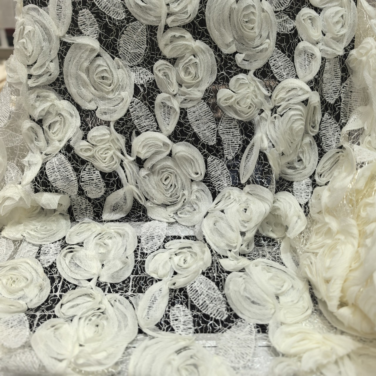 봄과 여름 인기 입체 꽃 쉬폰 자수 달콤한 여성 스커트 캐미솔 이브닝 드레스 신발 가방 모자 자수 원단