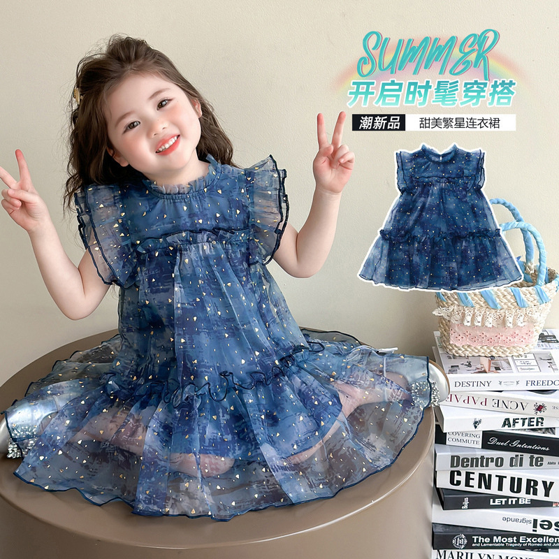 아기 소녀 여름 메쉬 스커트 얇은 요정 작은 플라잉 슬리브 공주 드레스 소녀 드레스스토어 가기