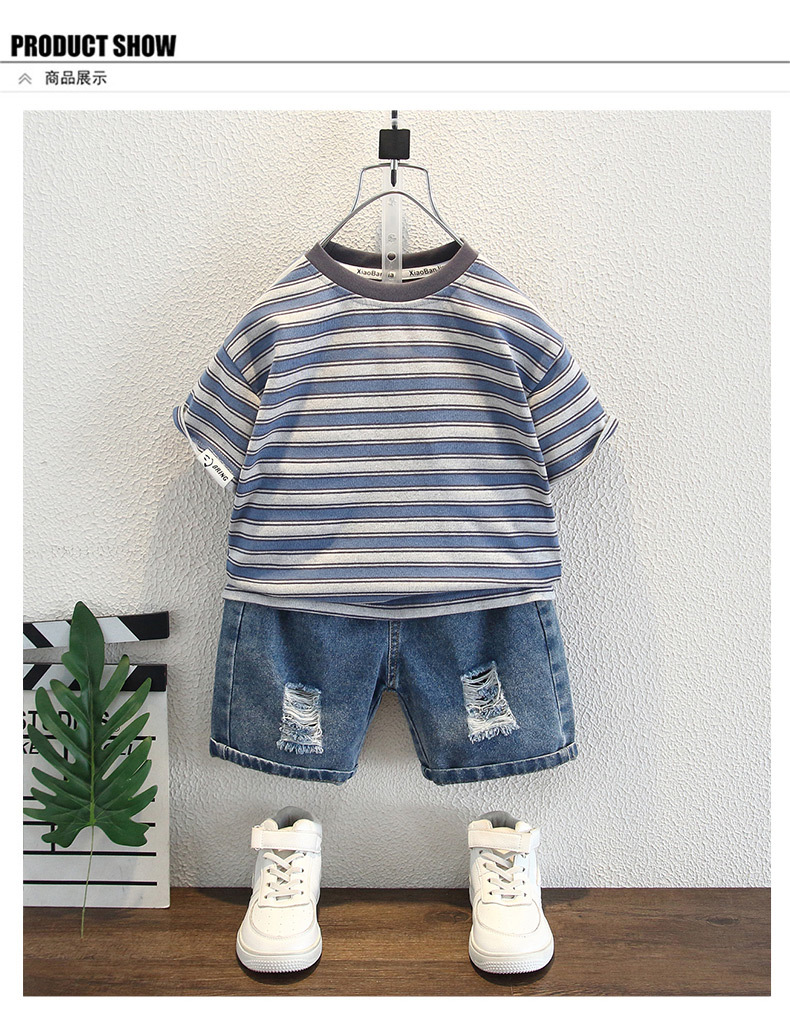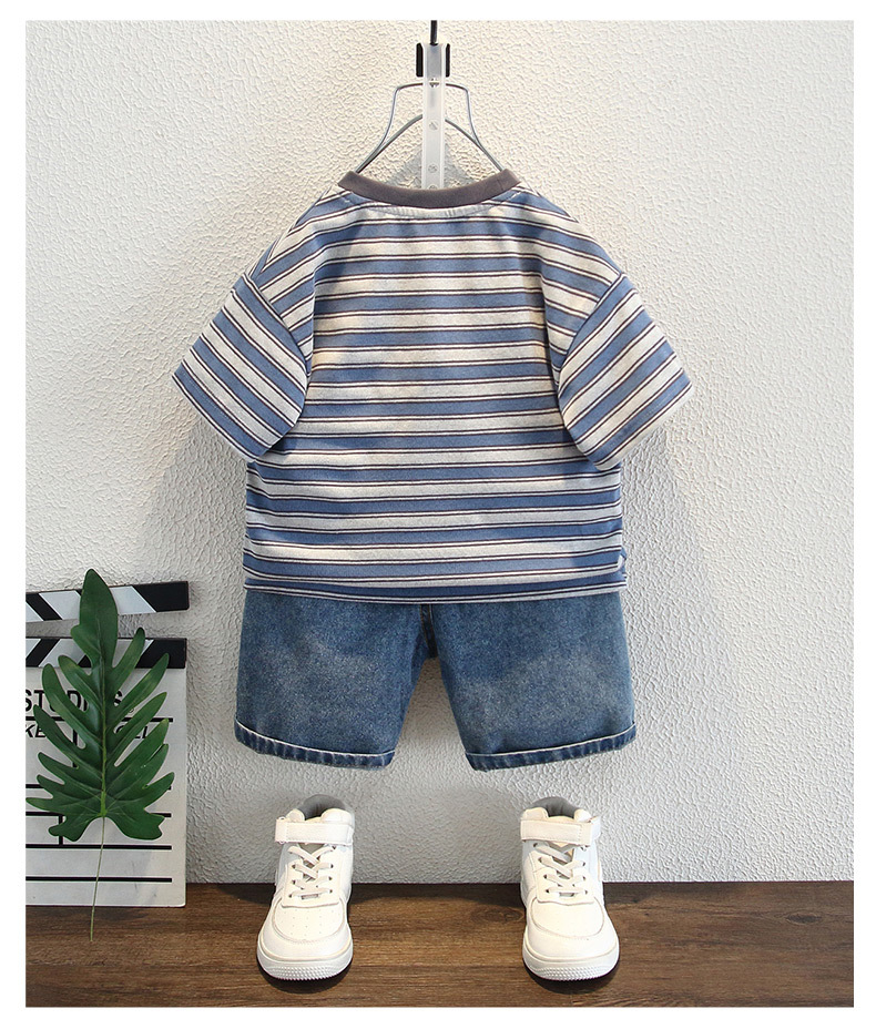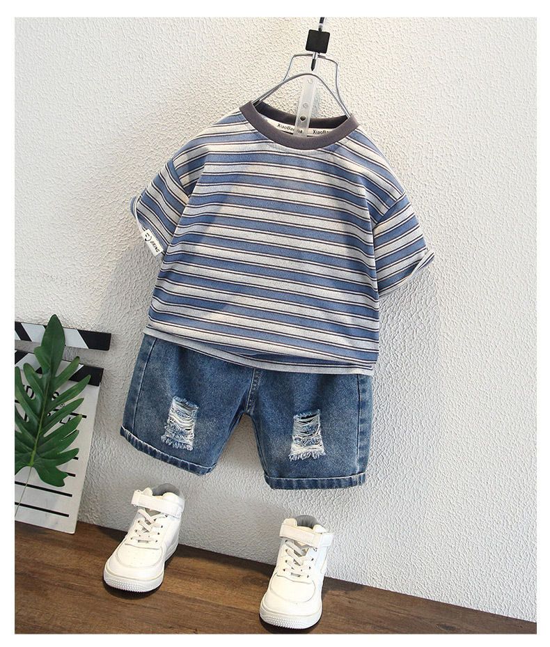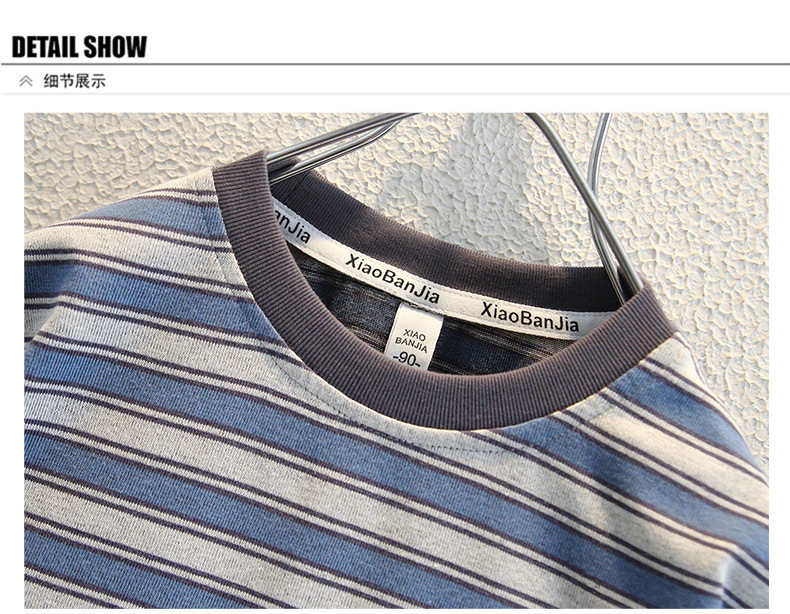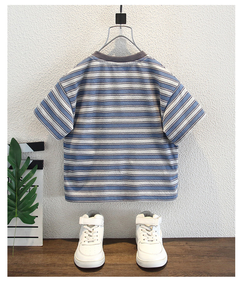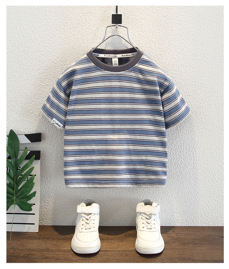 어린이 여름 반팔 2025 새로운 잘 생긴 소년 한국 스타일 스트라이프 티셔츠 베이비 캐주얼 라운드 넥 탑 트렌디 3