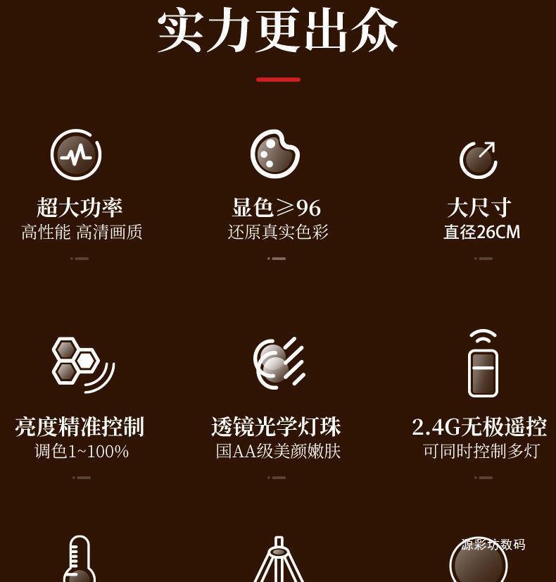 • 1.7m 조명 스탠드 + 3개의 카메라 위치 + 26CM 전체 화면 조명