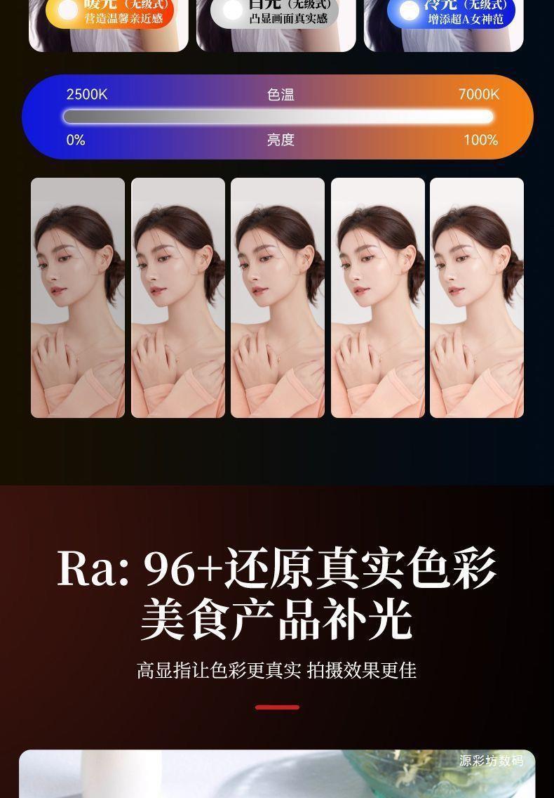 • 1.7m 라이트 스탠드 + 추가 카메라 위치 + 16CM 전체 화면 조명
