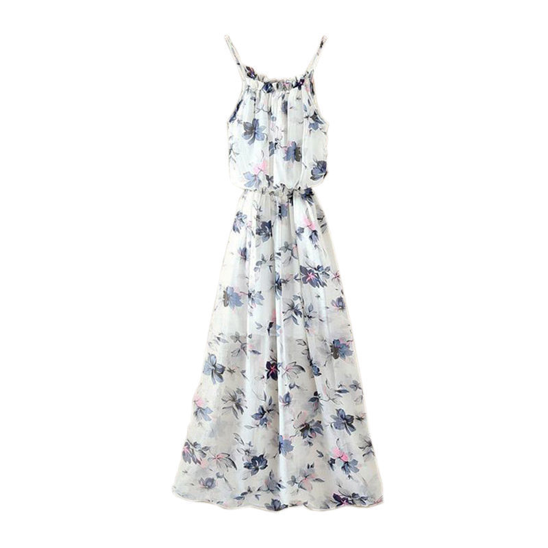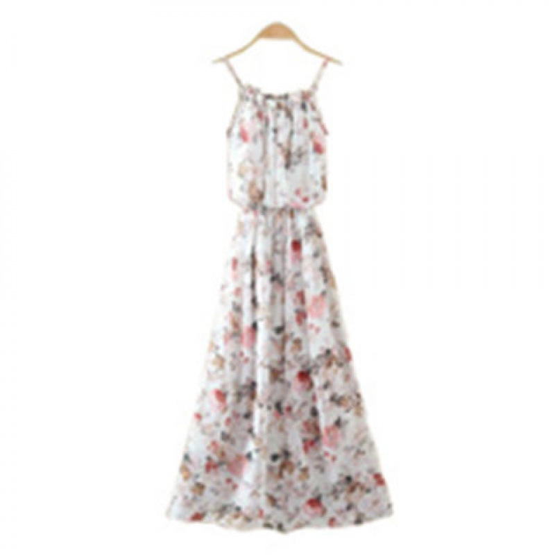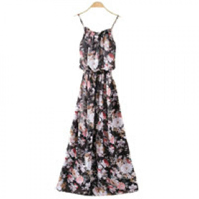 여름 달콤한 쉬폰 비치 드레스 보헤미안 롱 드레스 꽃 프린트 서스펜더 드레스 싱글 피스/세트 옵션스토어 가기