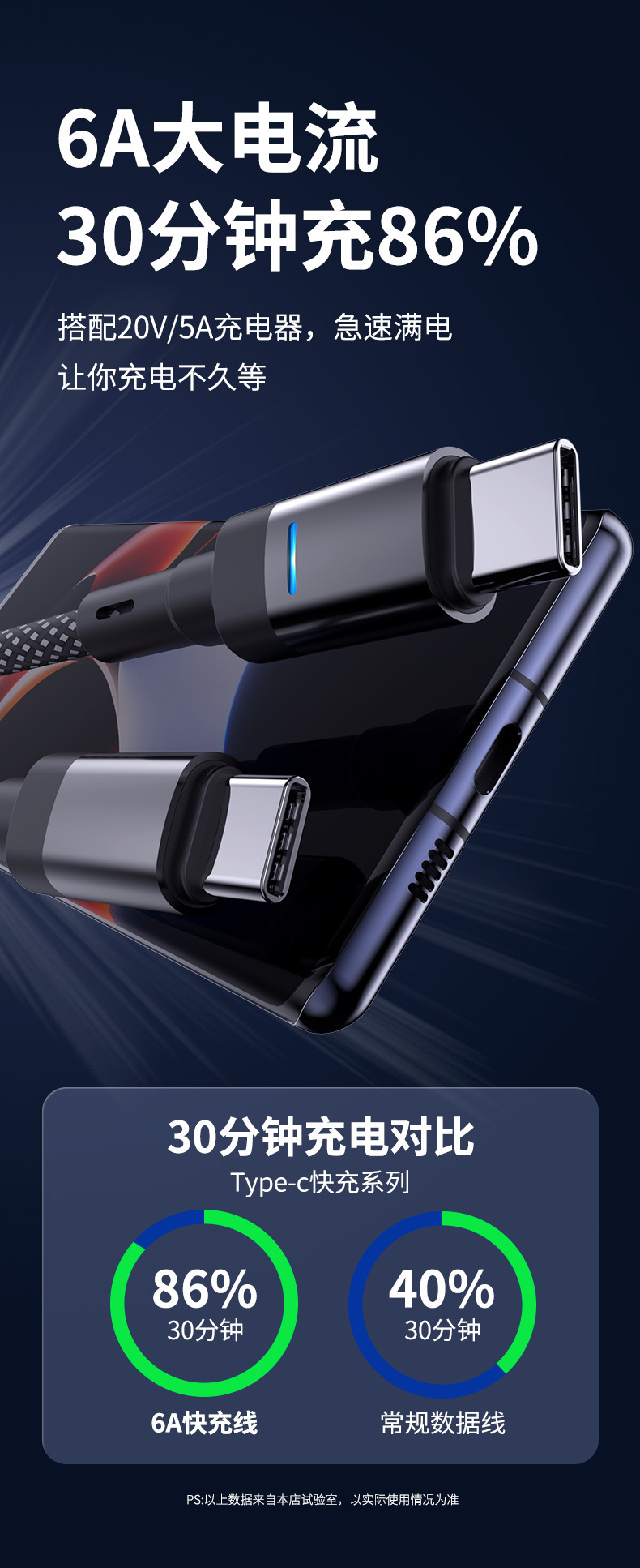 • 지능형 전원 끄기 C-C 100W 빨간색 및 검정색 편조 와이어