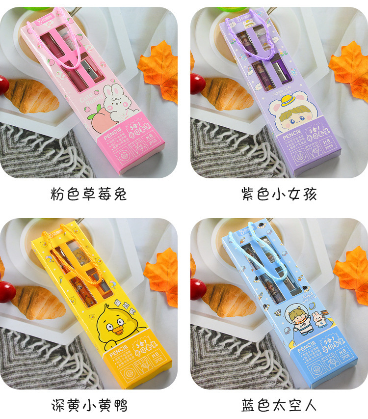 개학 시즌 학생을 위한 휴대용 선물 상자 문구 5종 세트 어린이날 생일 선물 동반자 상품 문구 5종 세트
