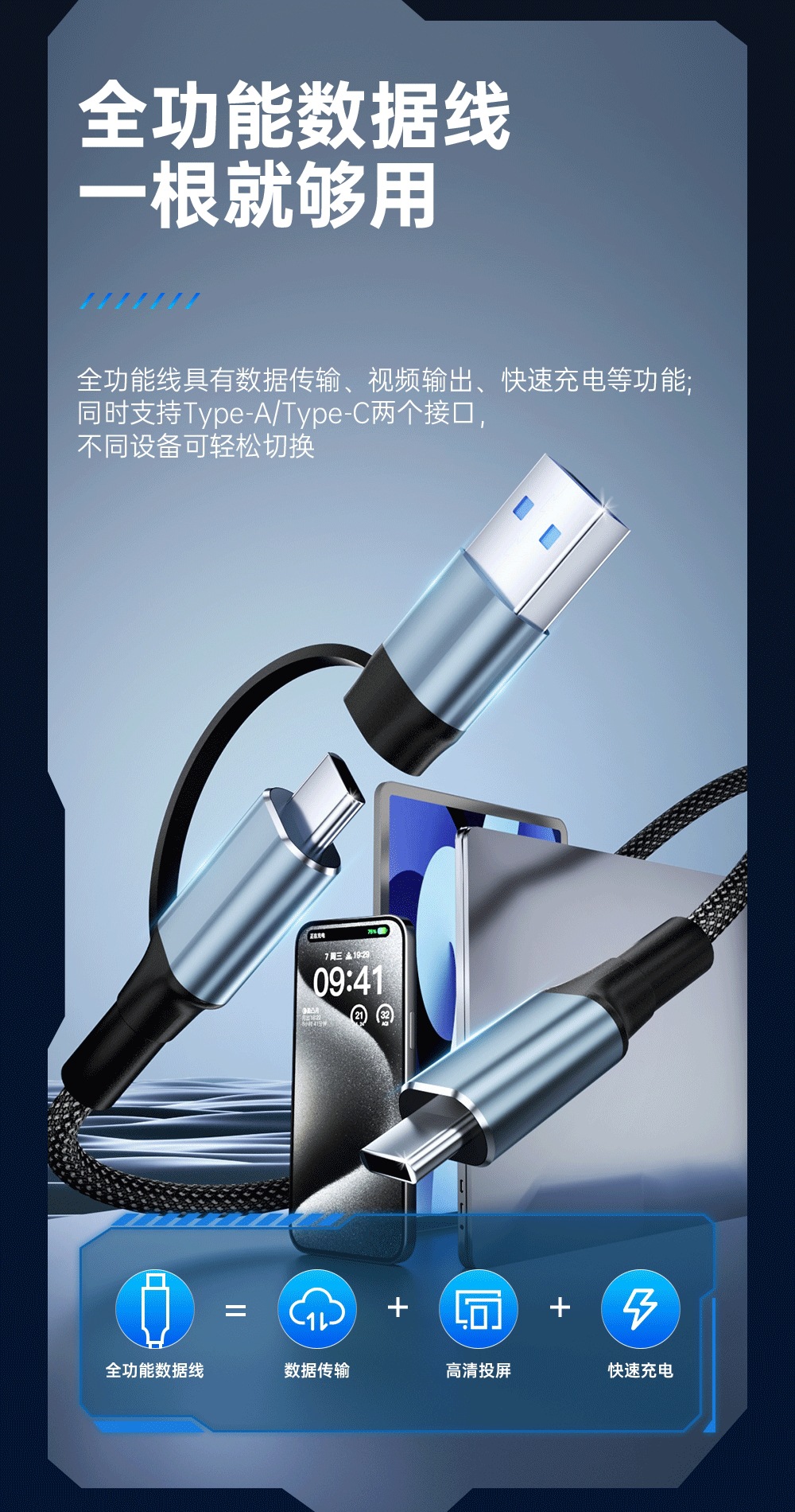 어댑터 투인원 전 기능 데이터 케이블 PD240W 고속 충전 노트북 하드 드라이브 케이블 tpyec 충전 케이블스토어 가기