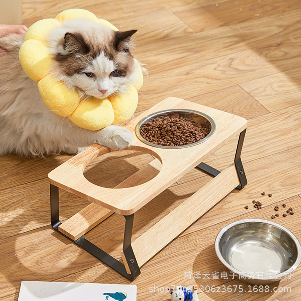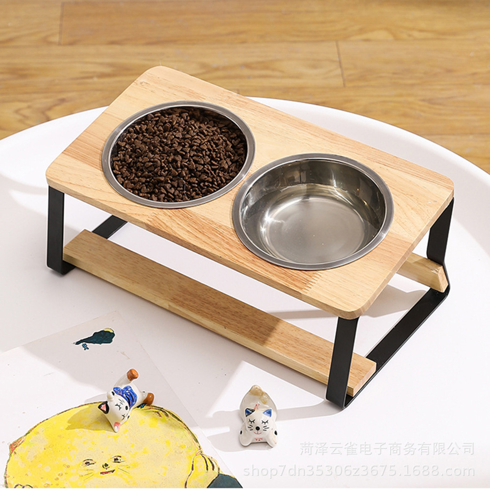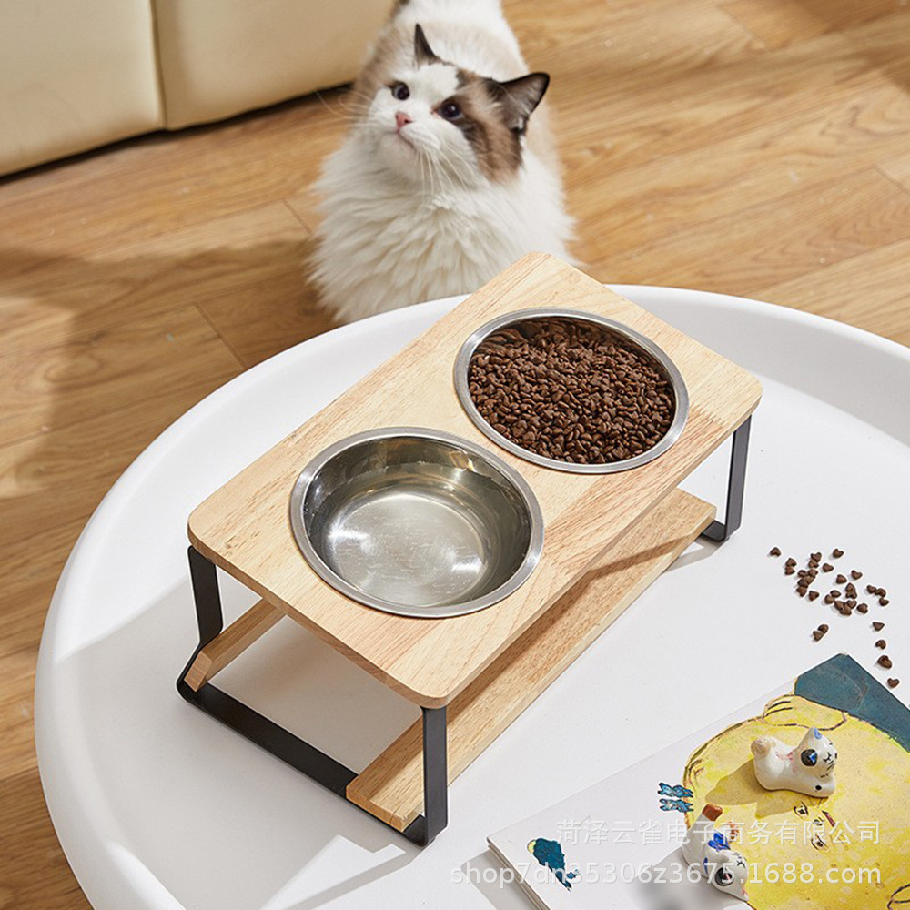 국경 간 고양이 사료 그릇 스테인레스 스틸 고양이 그릇 랙 2 그릇 실내 애완 동물 먹이 그릇 랙 개 물 그릇스토어 가기