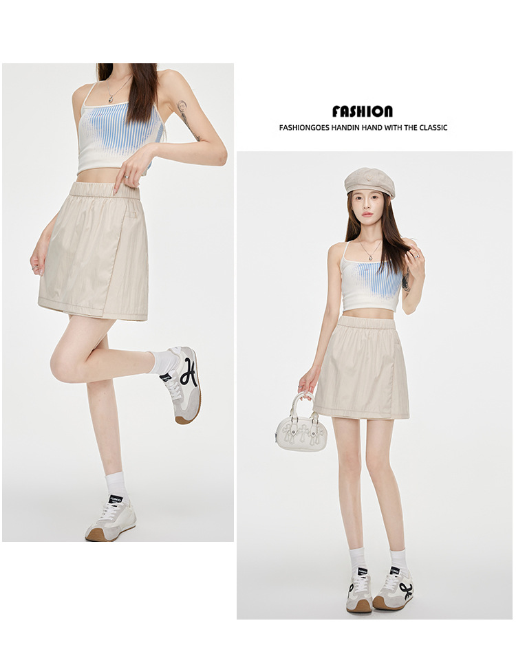 야마모토 카고 스커트 여성 여름 얇은 2025 새로운 캐주얼 와이드 레그 5부 바지 겉옷 아이스 실크 스포츠 반바지
