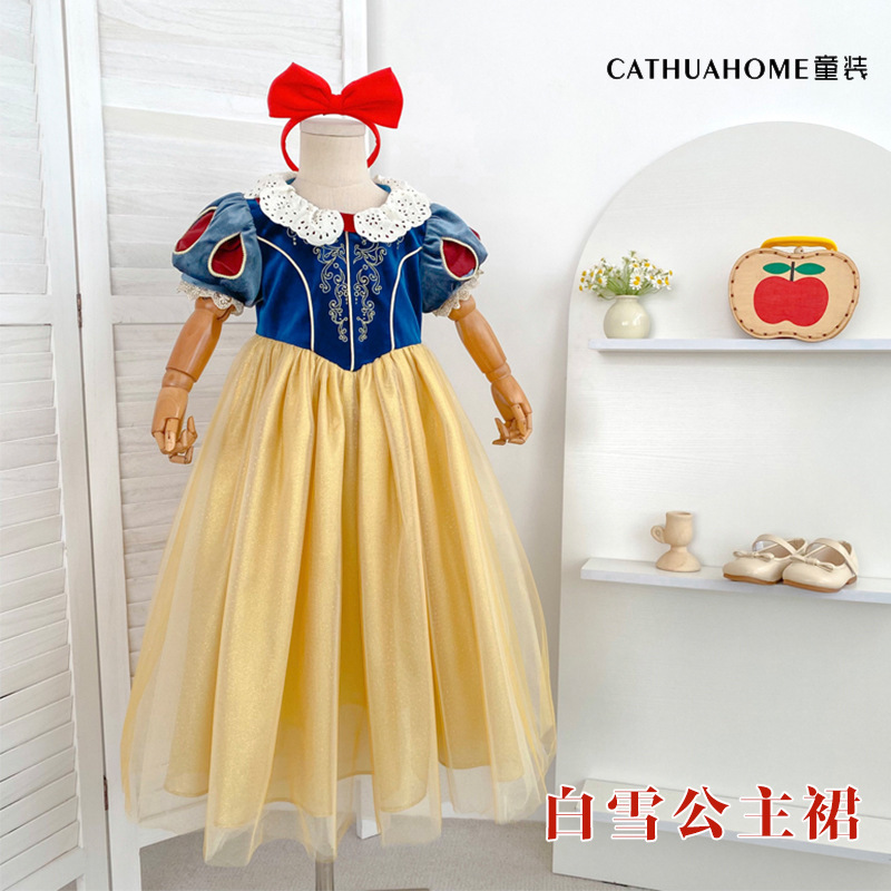 여자 중공업 드레스 2025 여름 새로운 어린이 반팔 아기 소녀 공주 백설 공주 드레스 롱 스커트스토어 가기