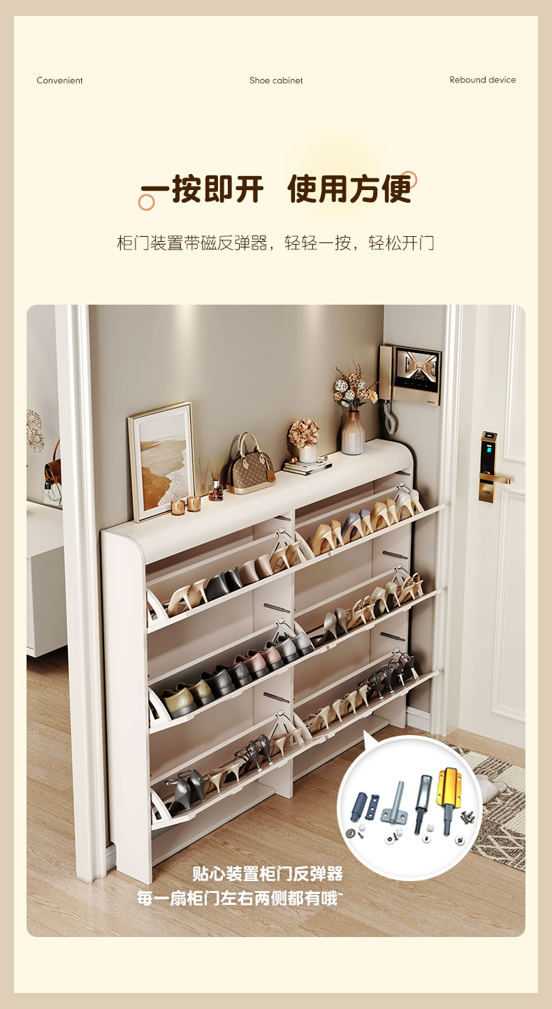 집 입구용 크림 스타일 초박형 덤핑 슈즈 캐비닛 2025 새로운 핫 스타일 입구 캐비닛 통합 수납 신발장