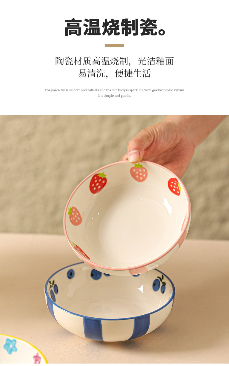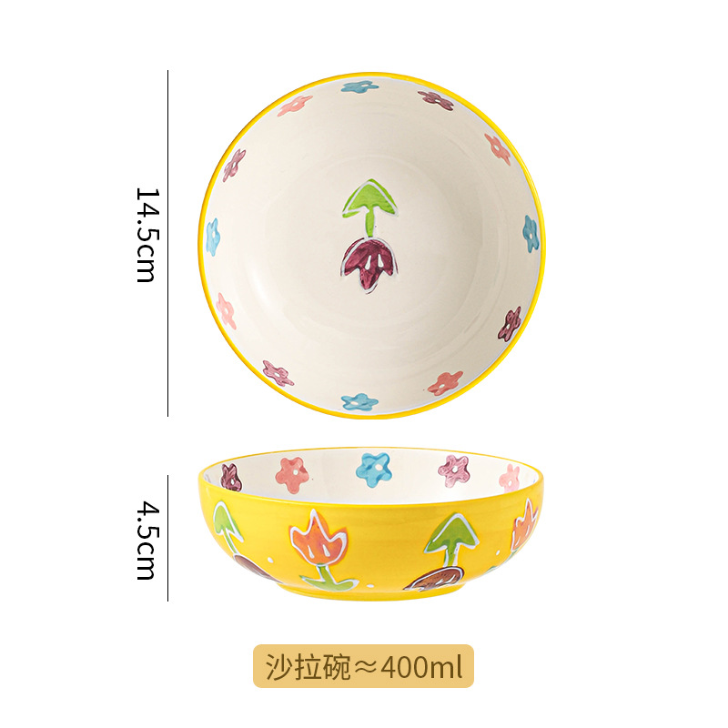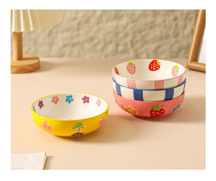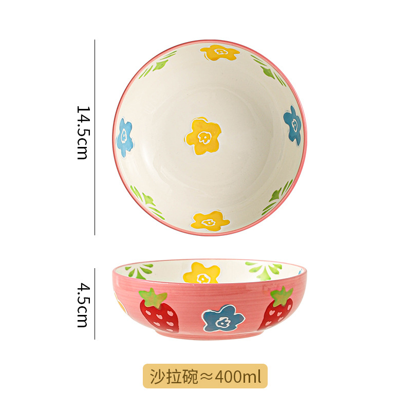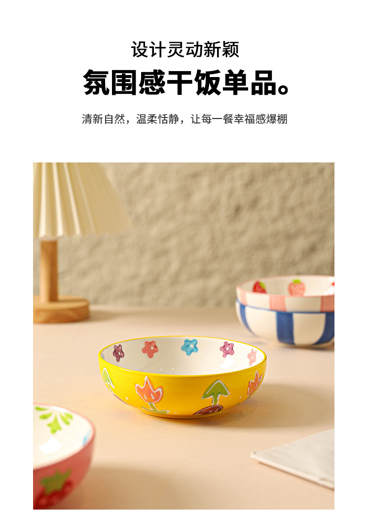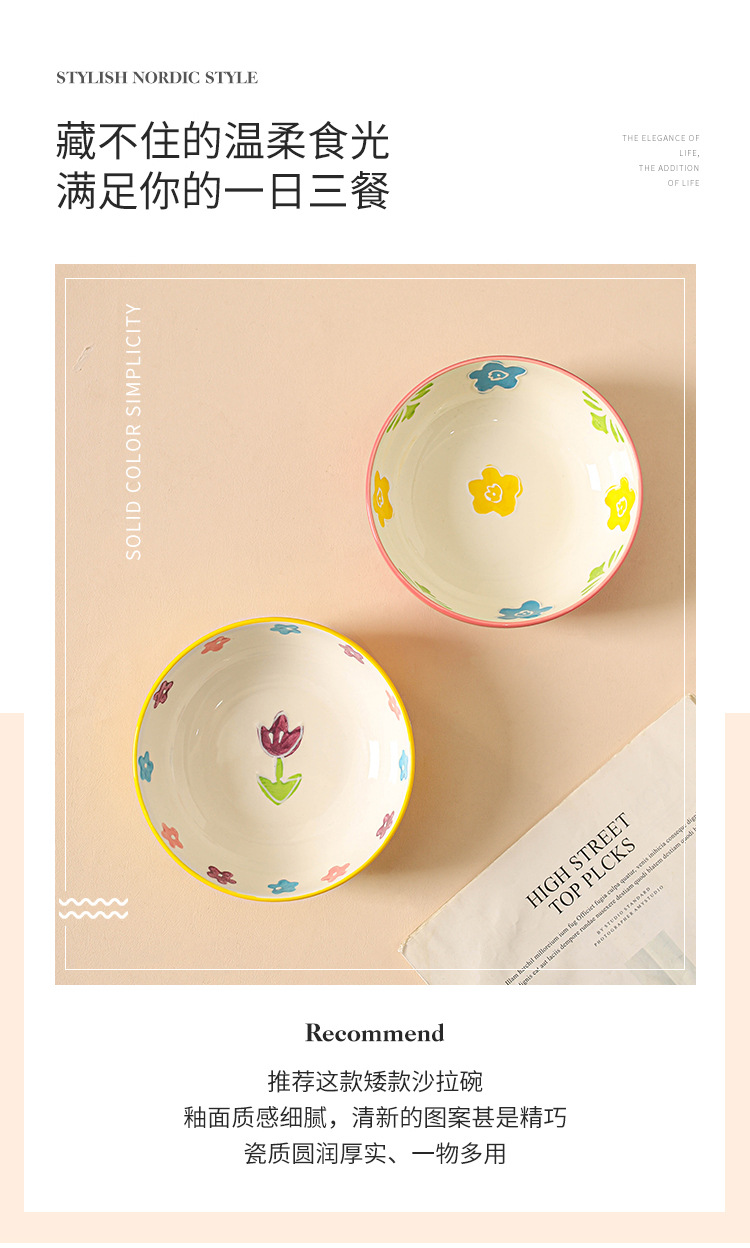 무료 배송 작은 신선한 목가적 스타일 세라믹 수프 그릇 가정용 아침 식사 쌀 과일 디저트 샐러드 그릇 Chaozhou 식기스토어 가기