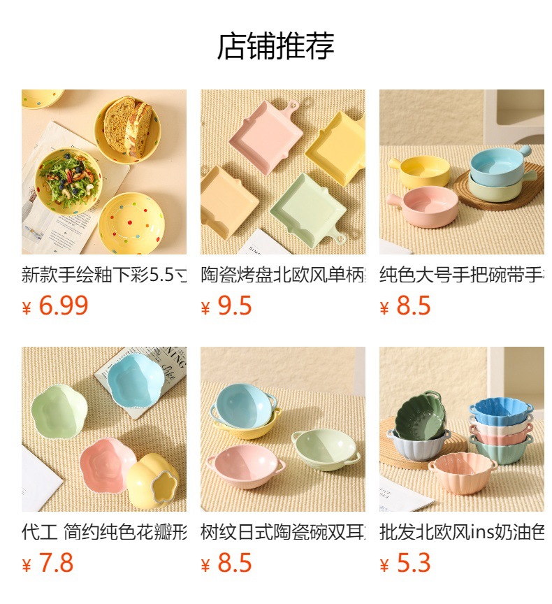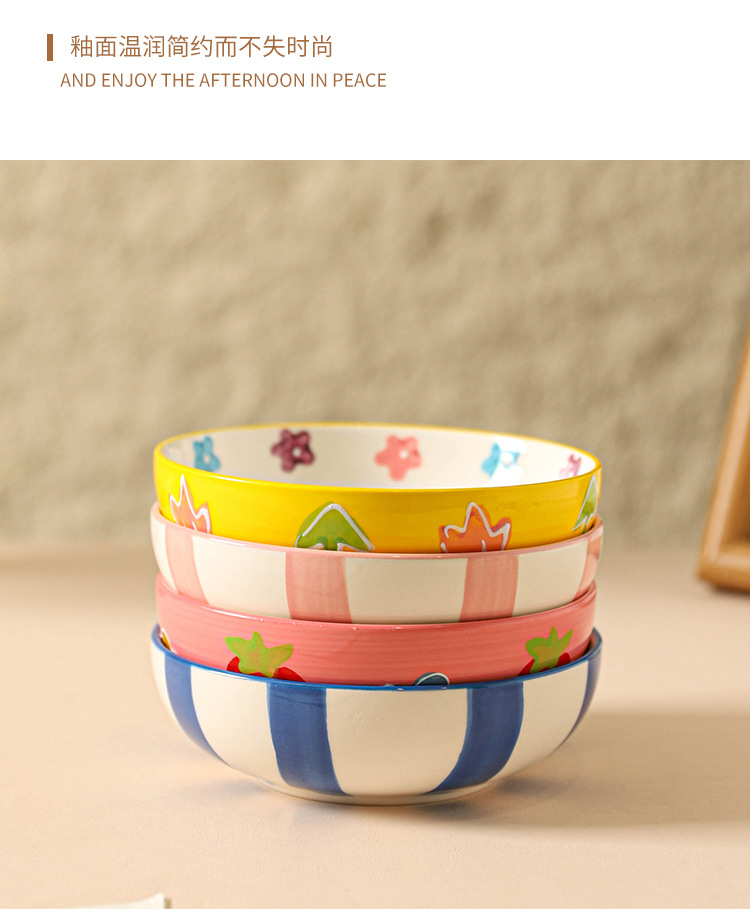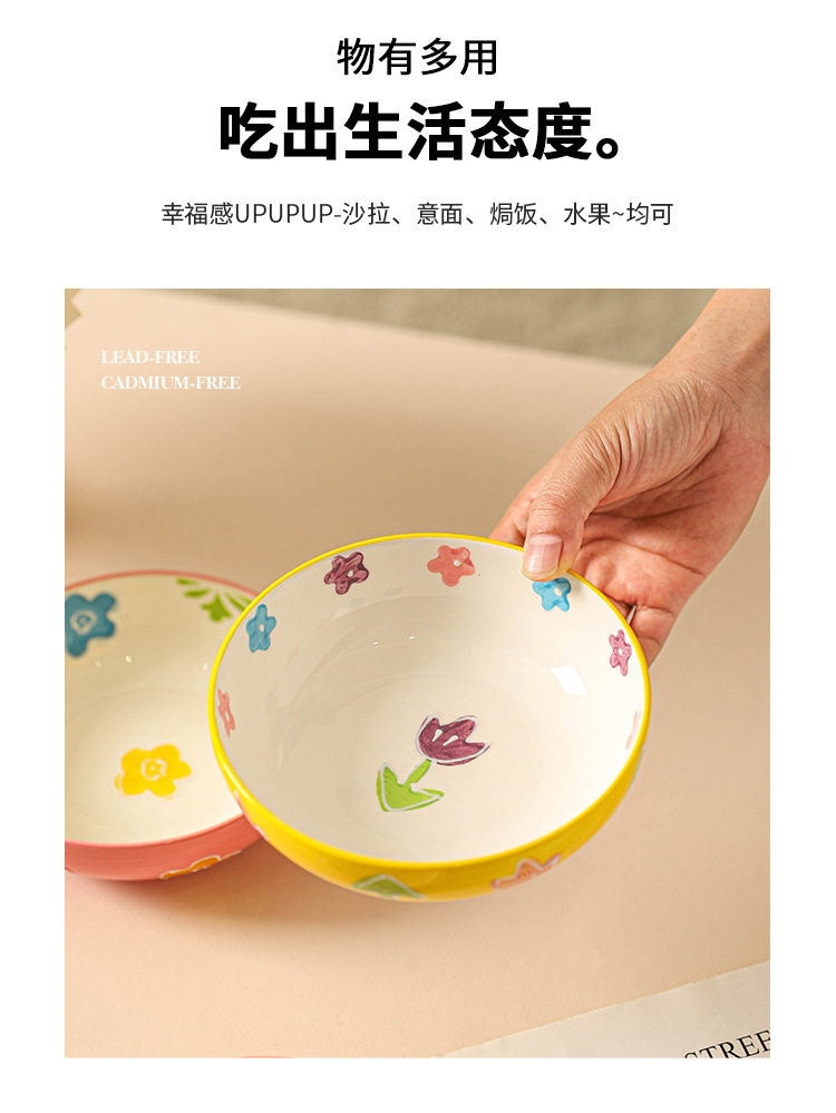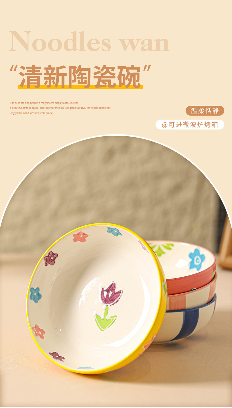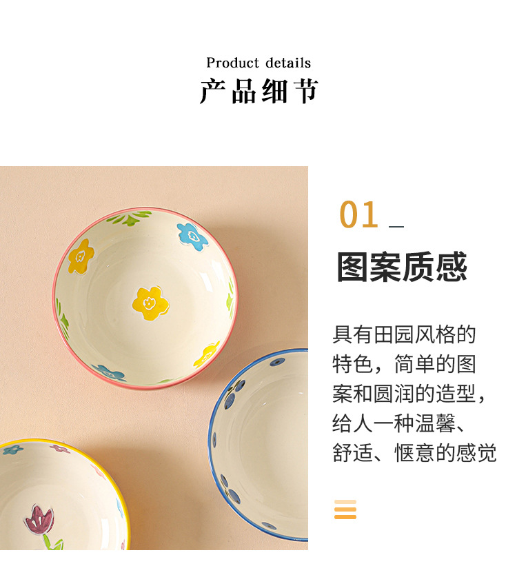 무료 배송 작은 신선한 목가적 스타일 세라믹 수프 그릇 가정용 아침 식사 쌀 과일 디저트 샐러드 그릇 Chaozhou 식기스토어 가기