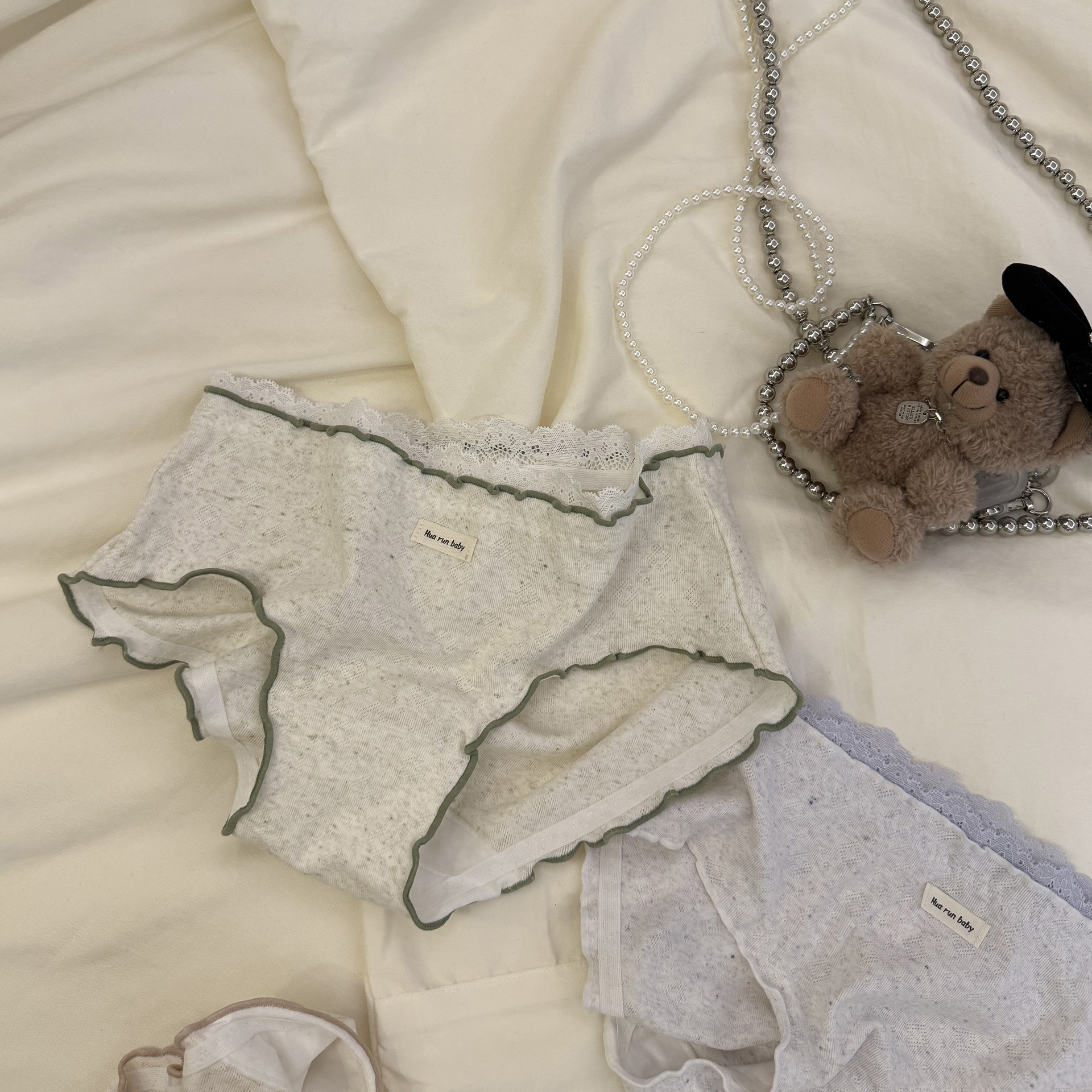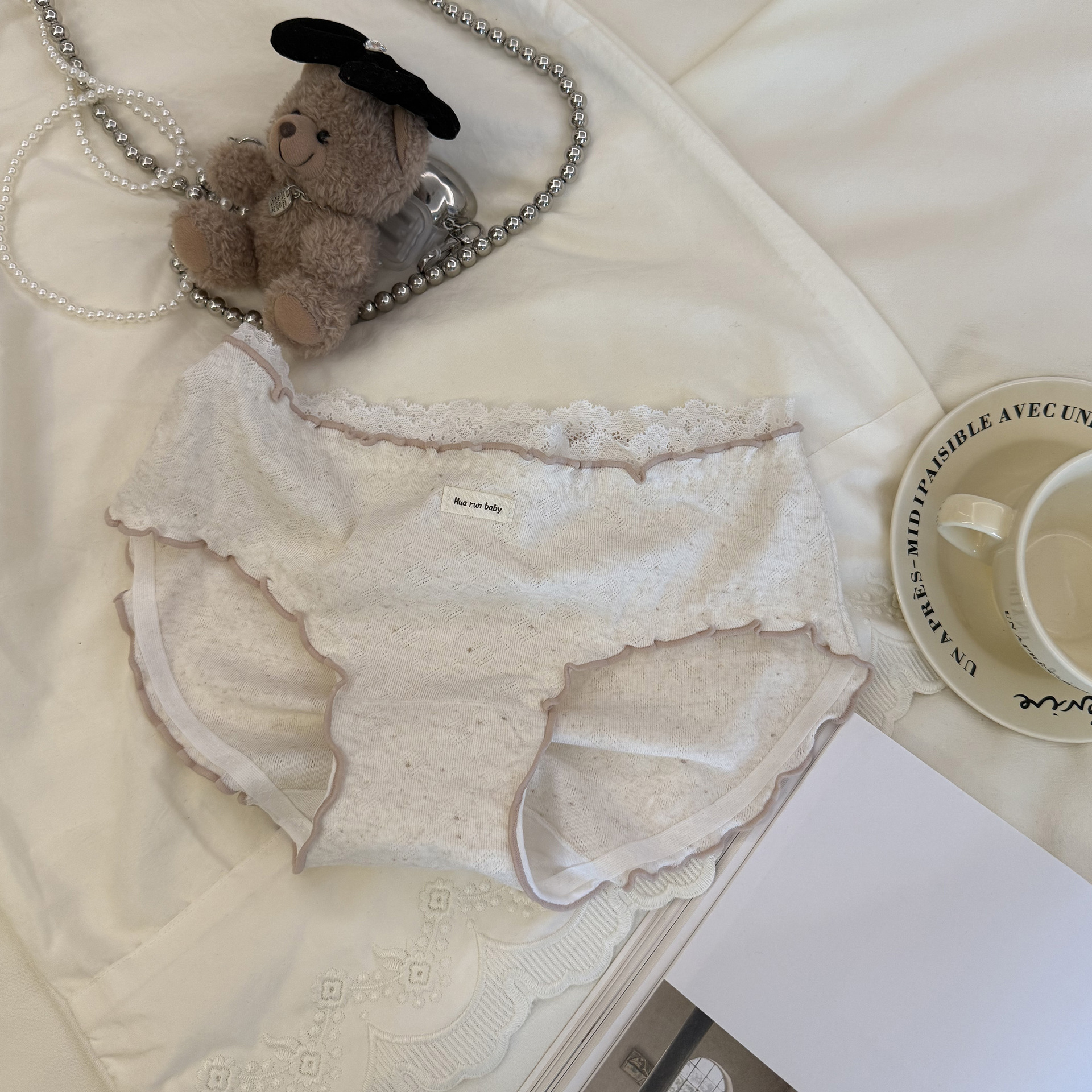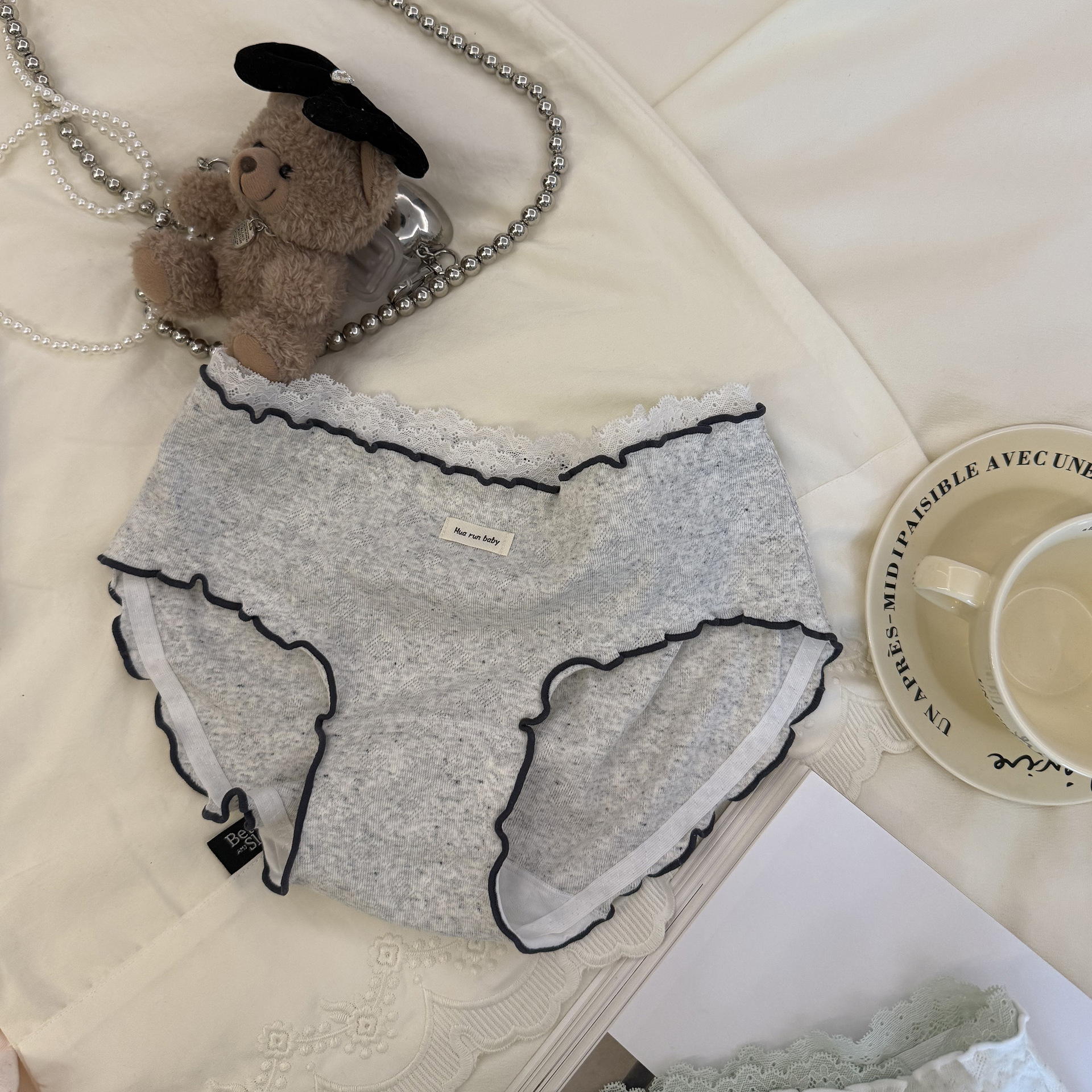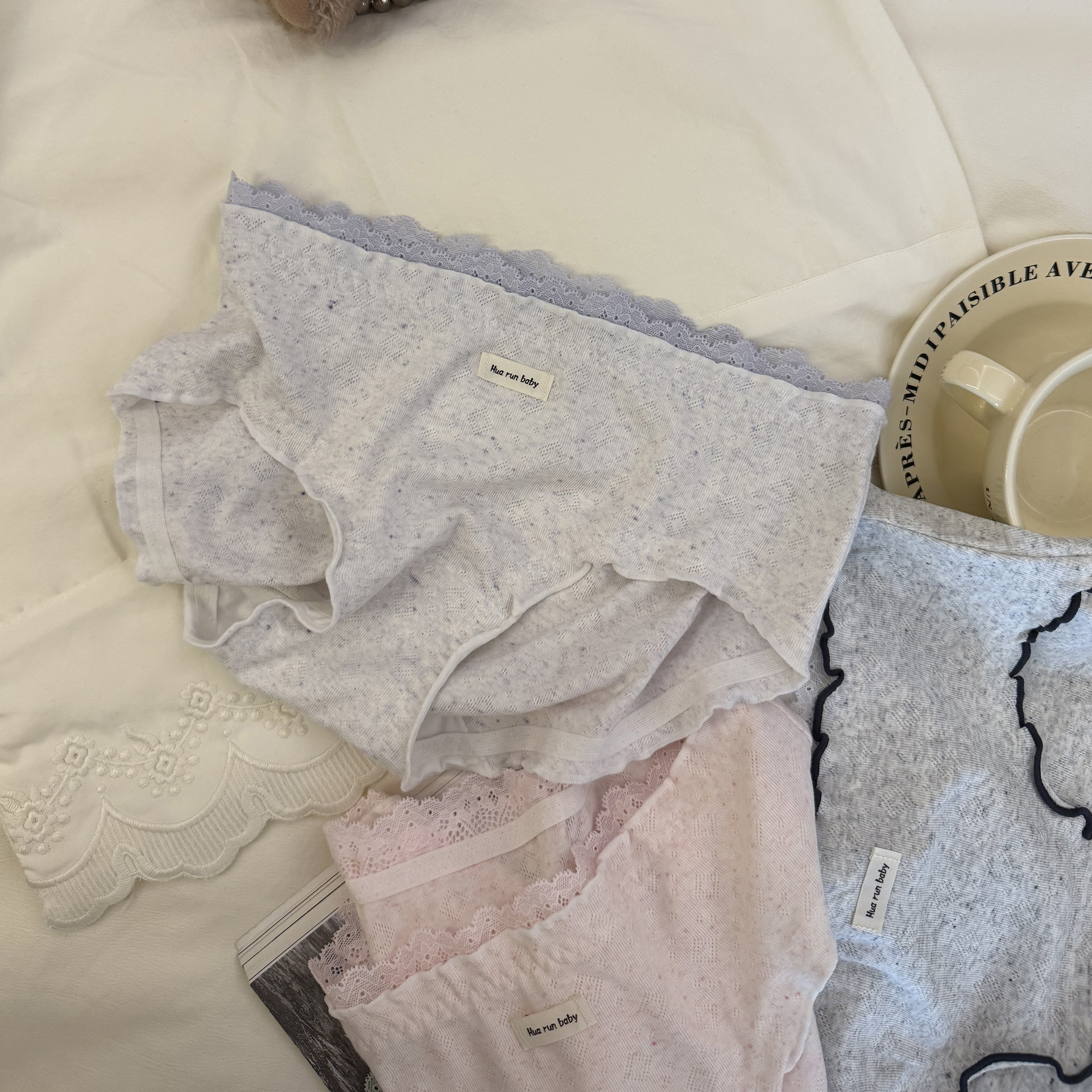 6037日系木耳边彩纱提花软糯蕾丝花边少女中腰内裤