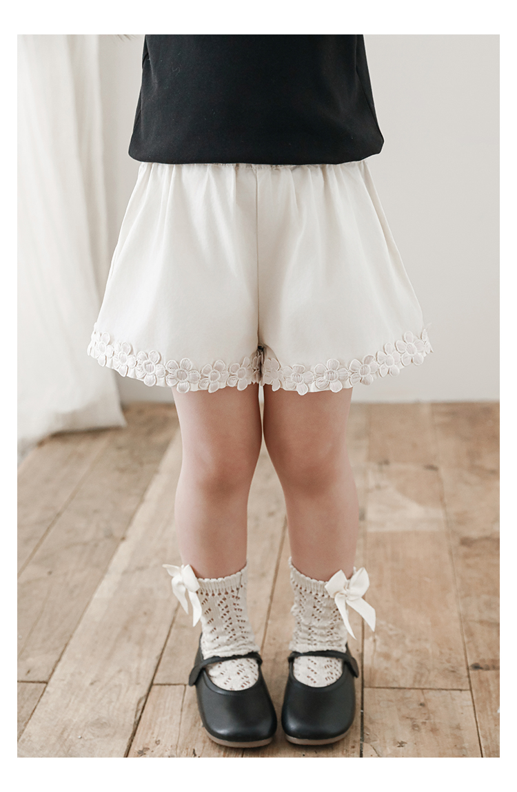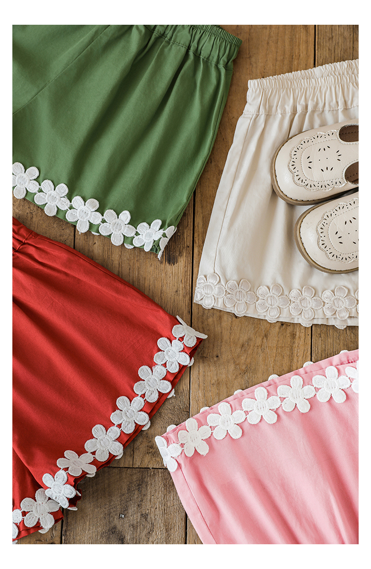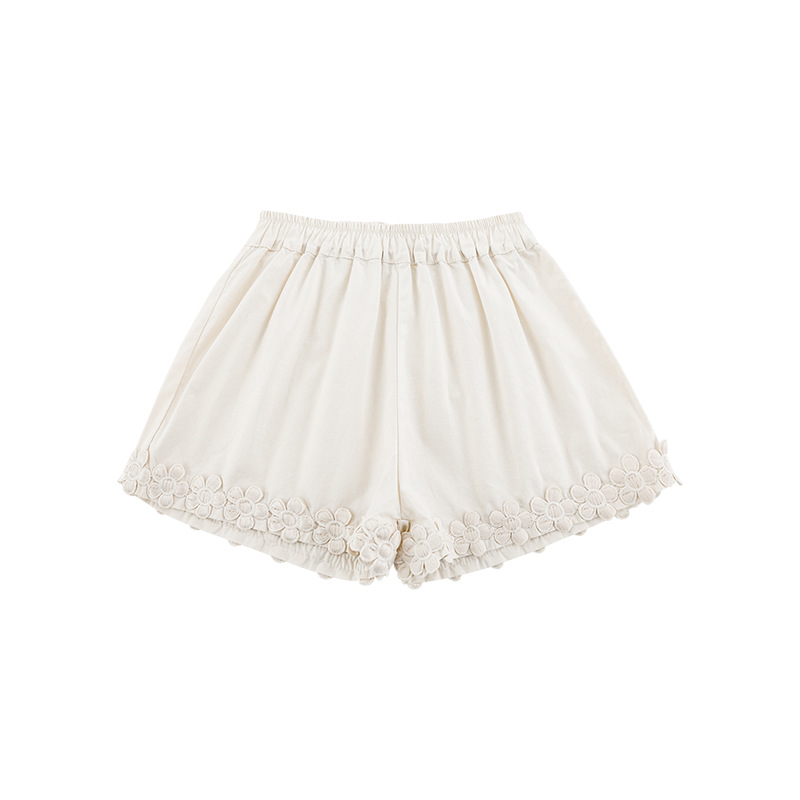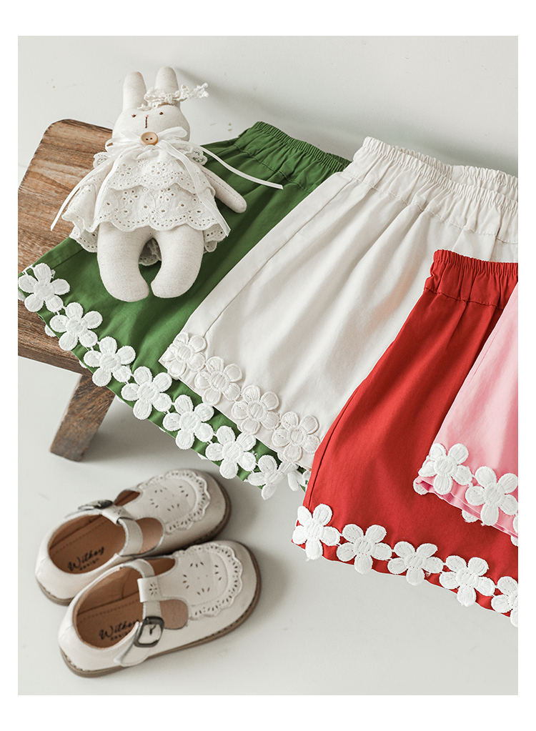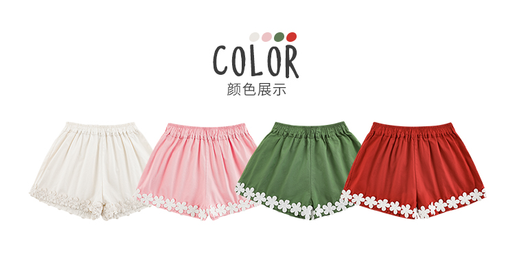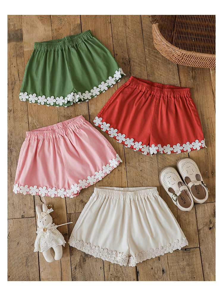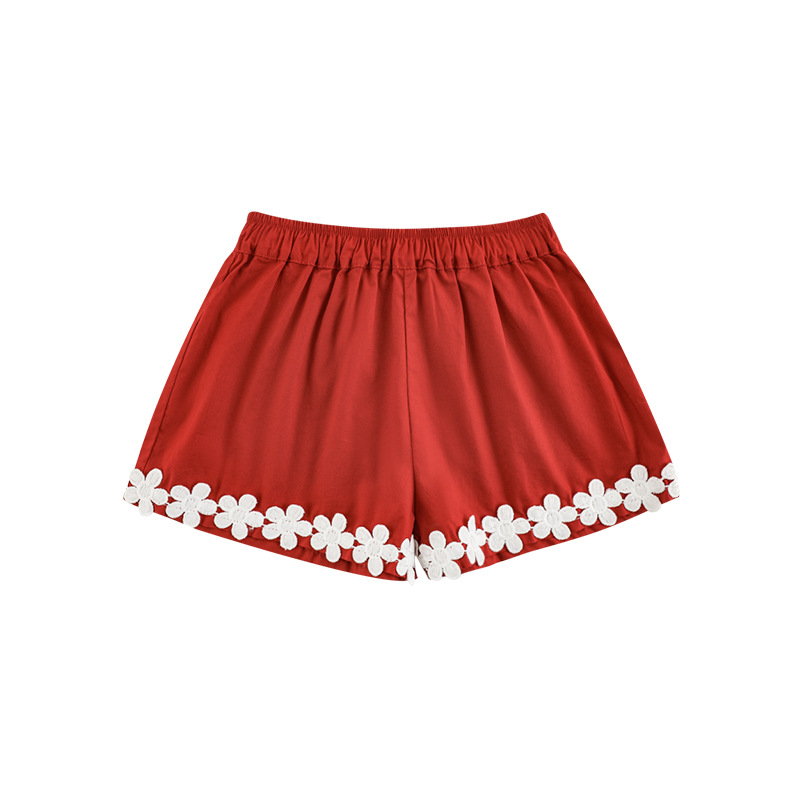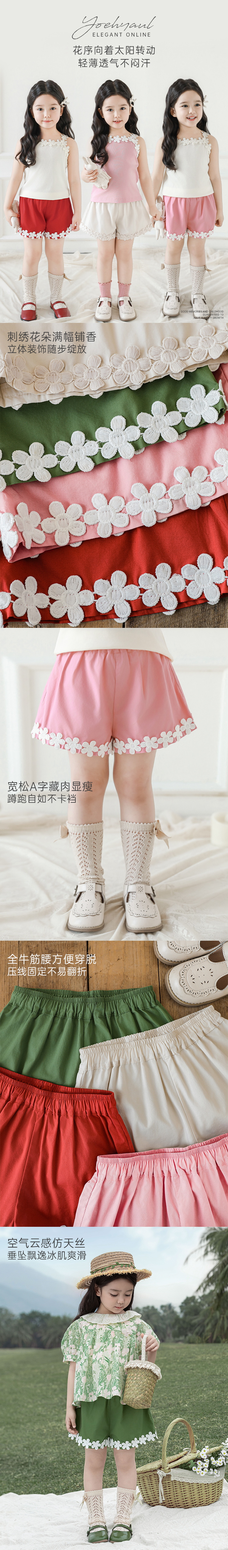 Wuri Bub 소녀의 자수 꽃 레이스 반바지 여름 경치 귀여운 통기성 느슨한 A 라인 캐주얼 바지