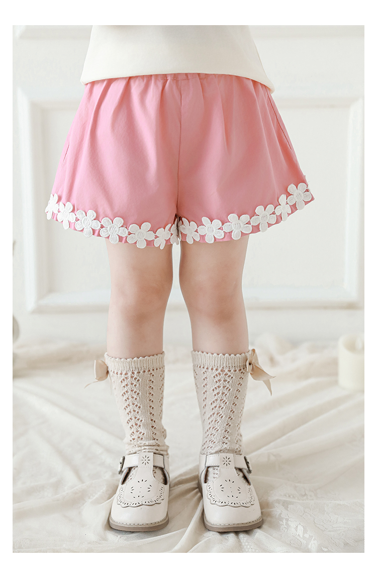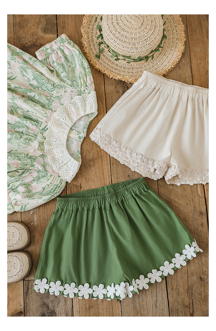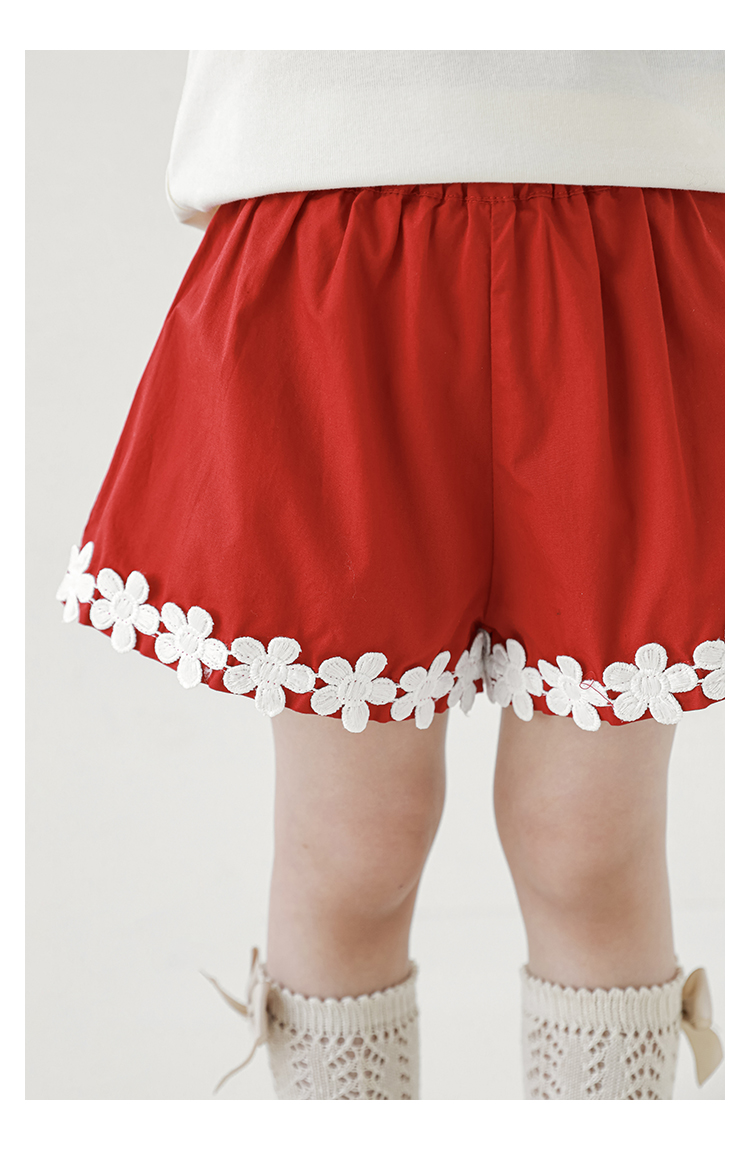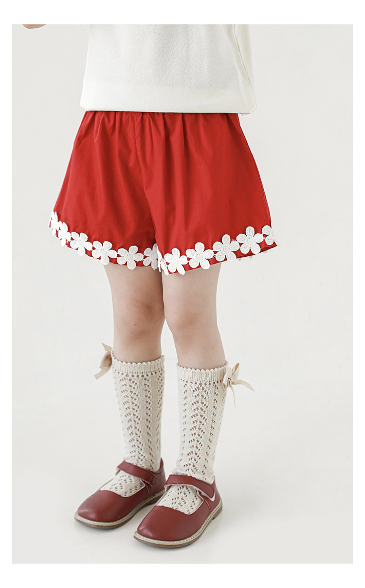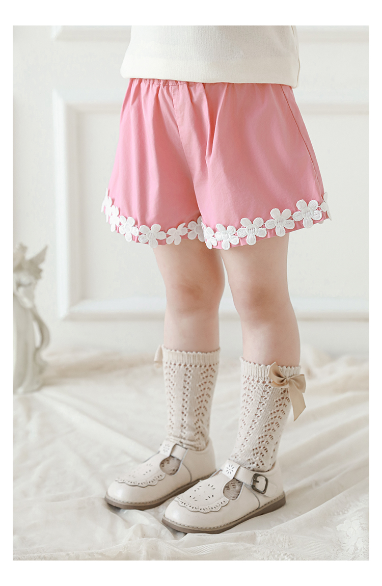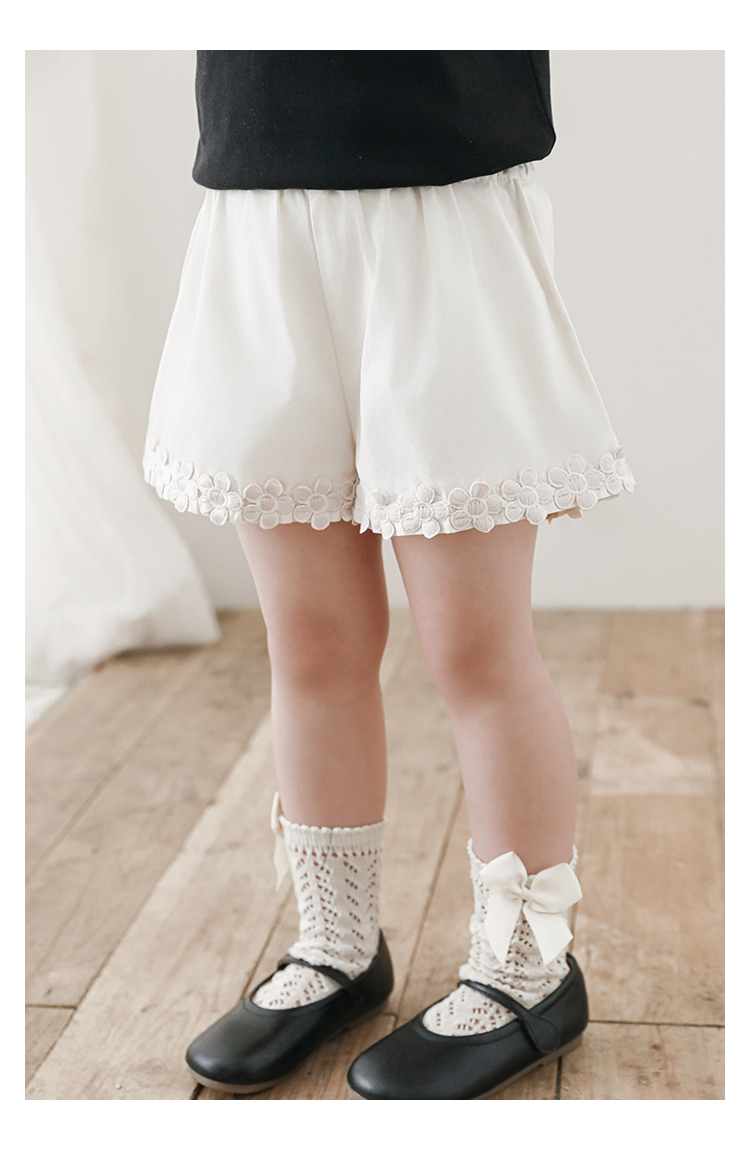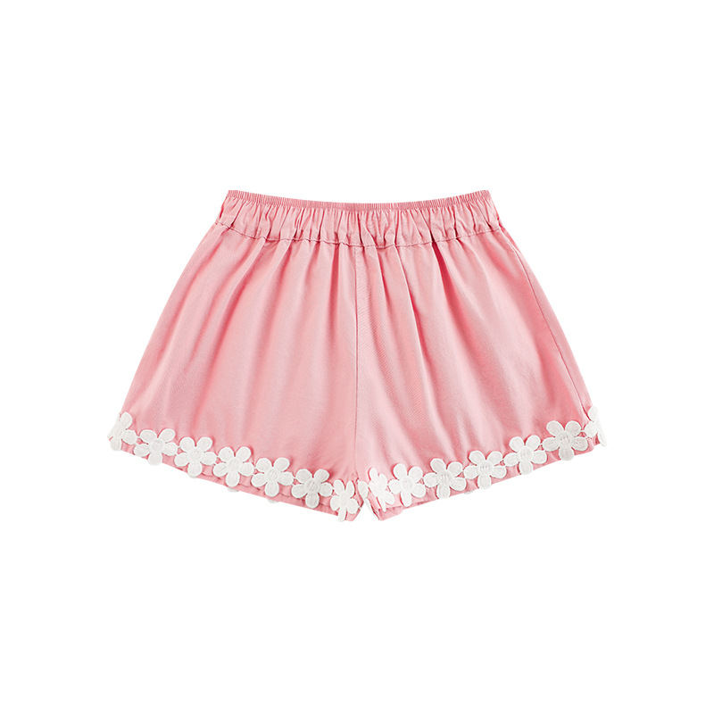 Wuri Bub 소녀의 자수 꽃 레이스 반바지 여름 경치 귀여운 통기성 느슨한 A 라인 캐주얼 바지