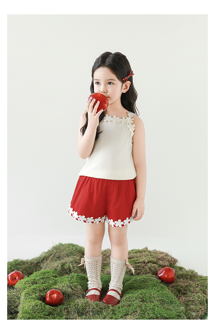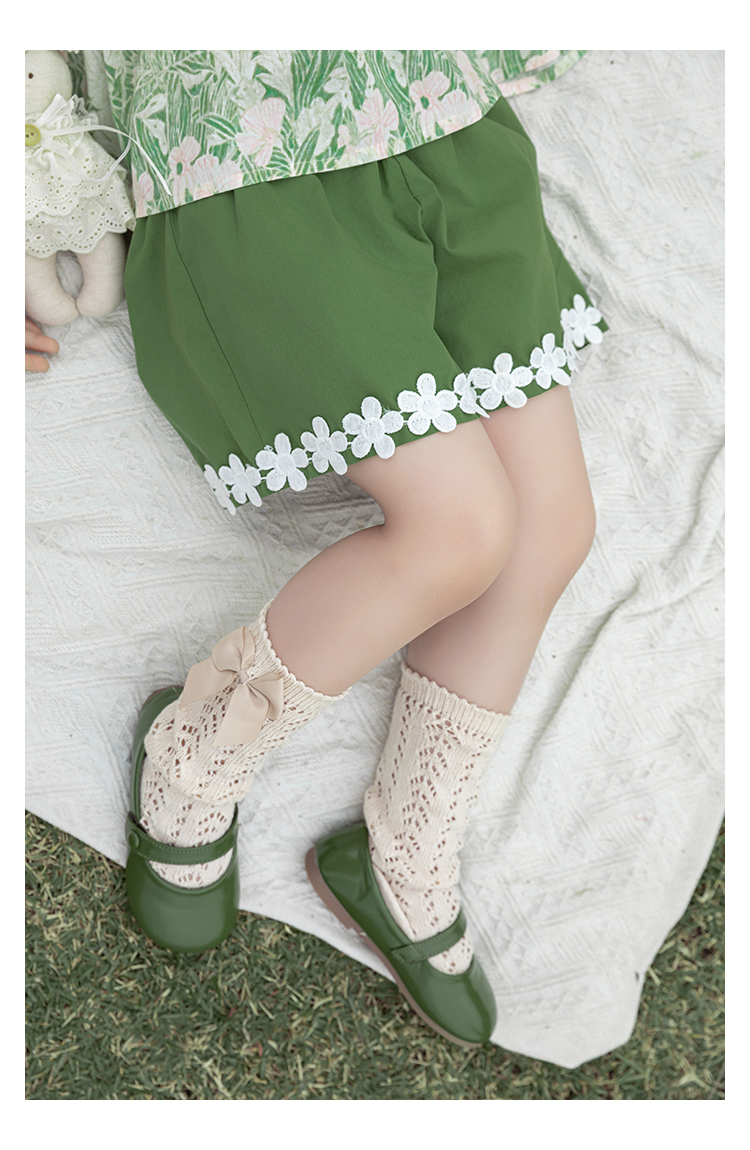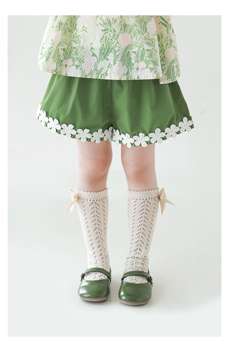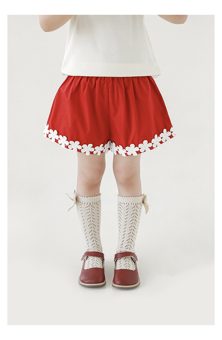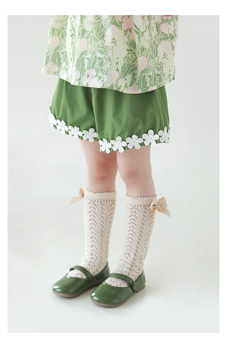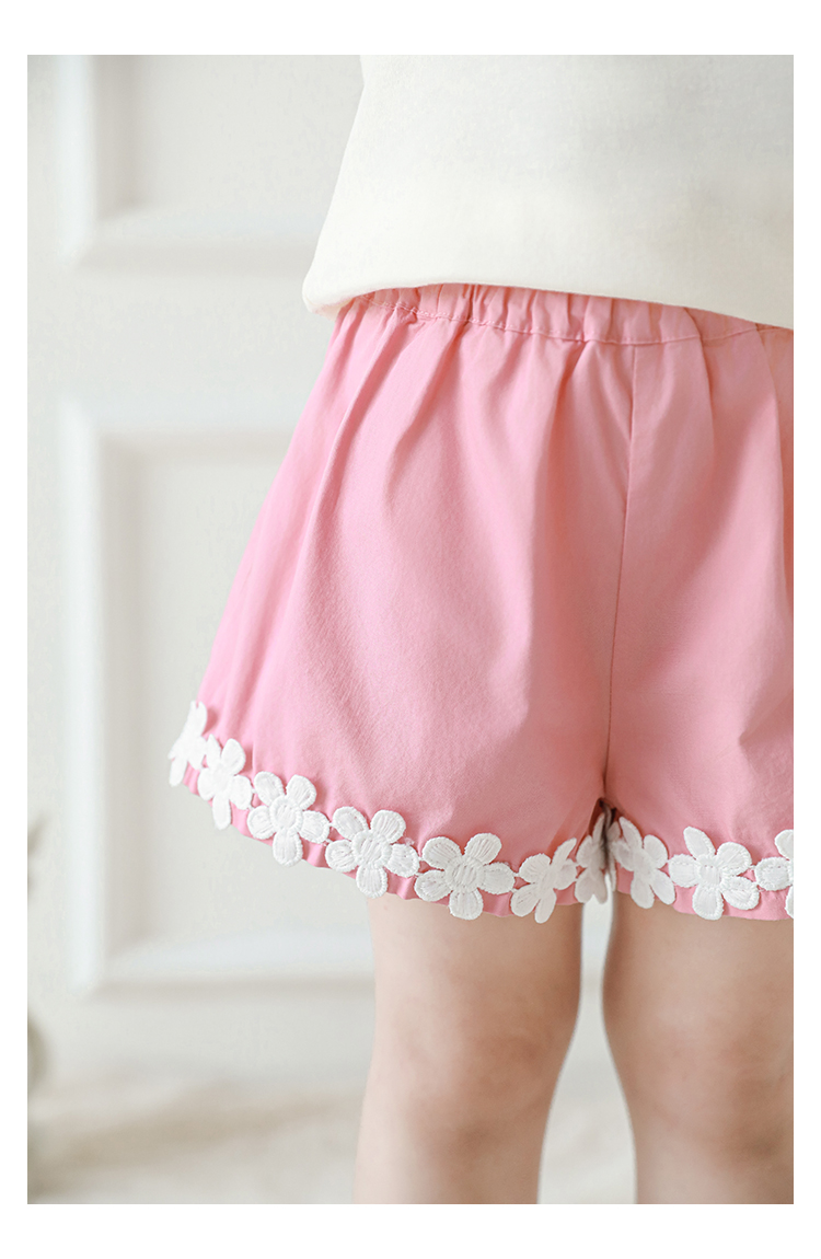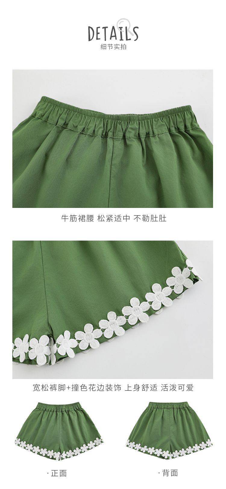 Wuri Bub 소녀의 자수 꽃 레이스 반바지 여름 경치 귀여운 통기성 느슨한 A 라인 캐주얼 바지