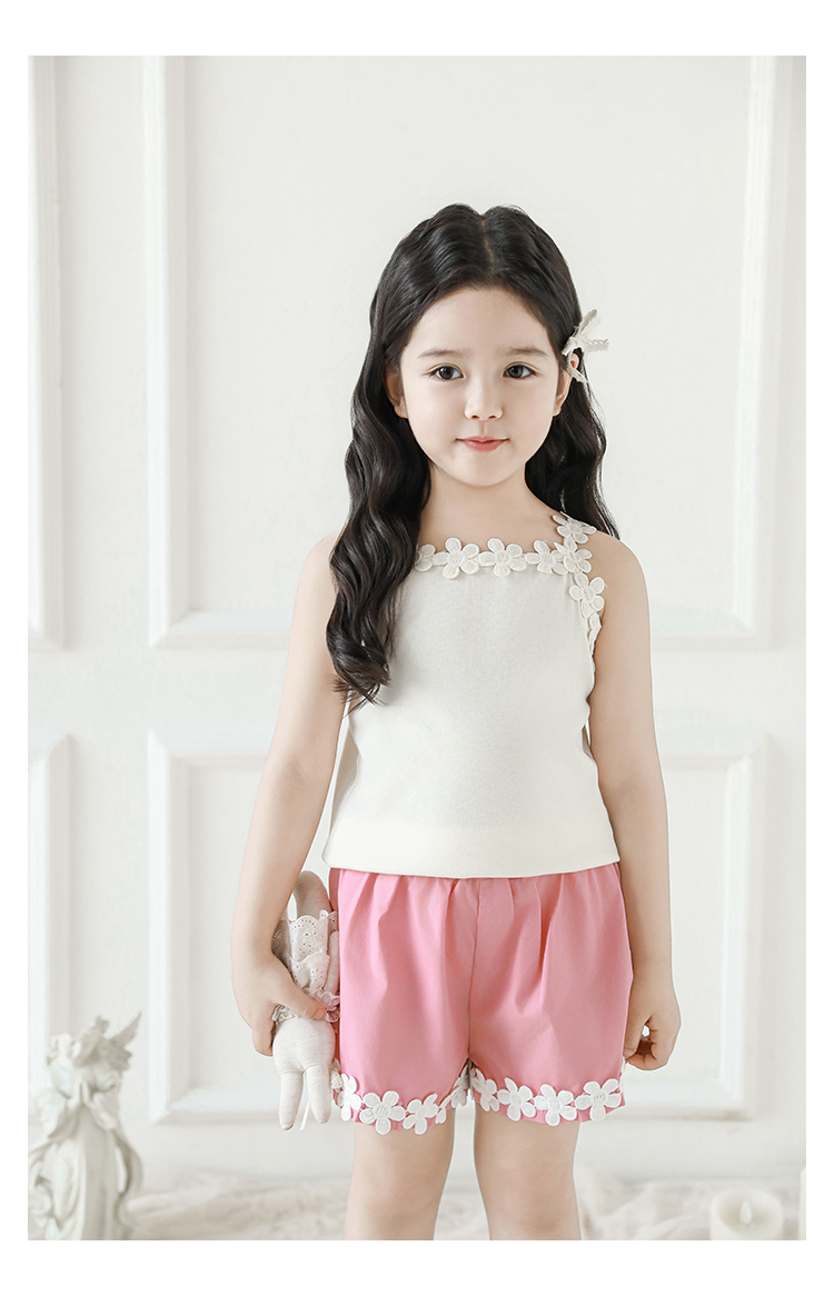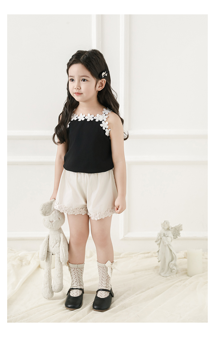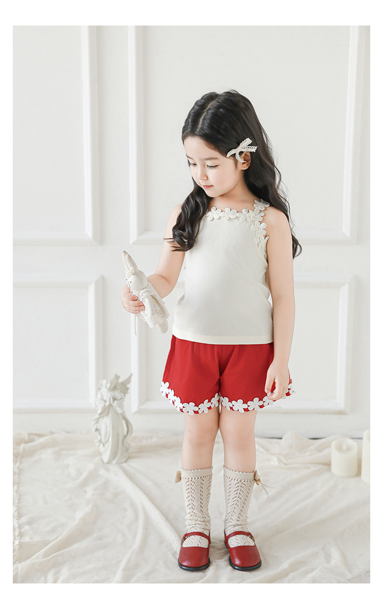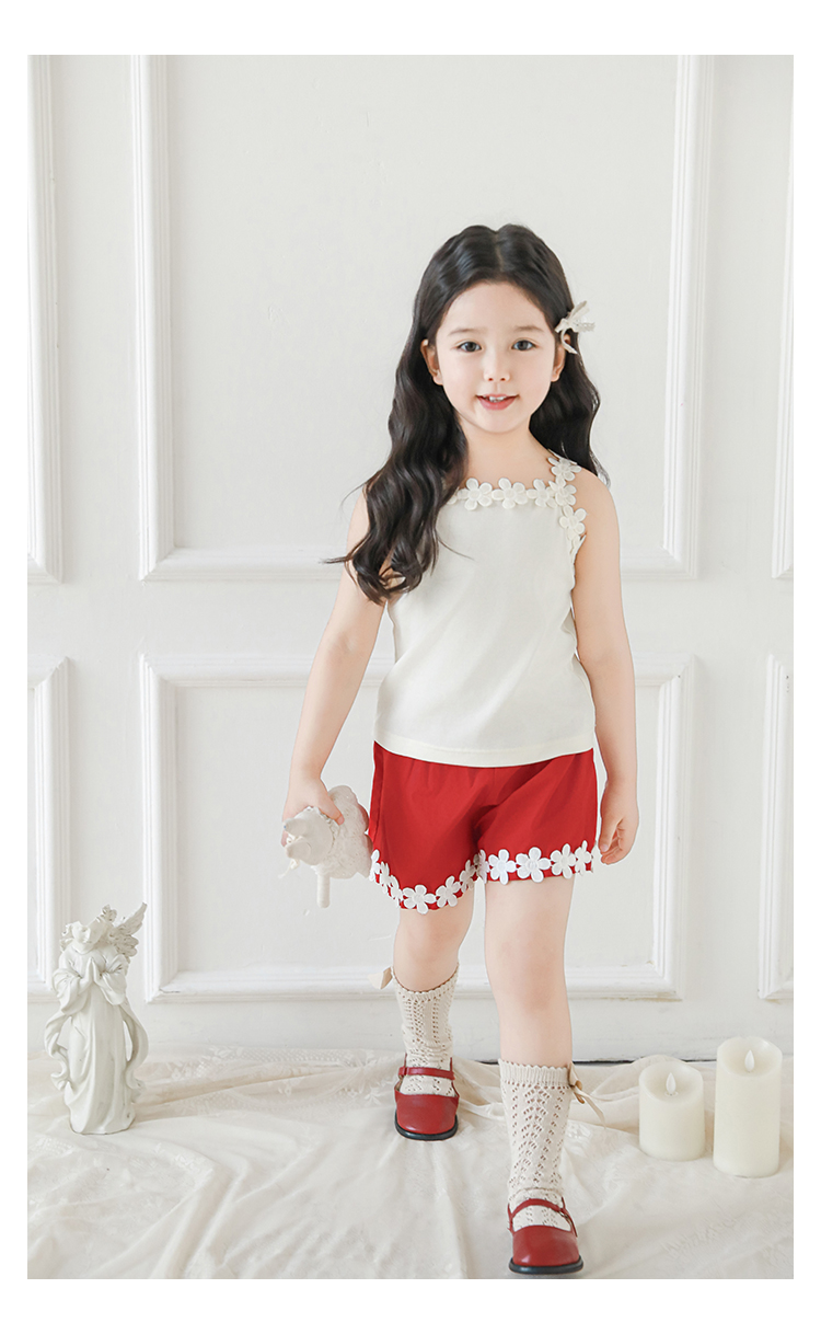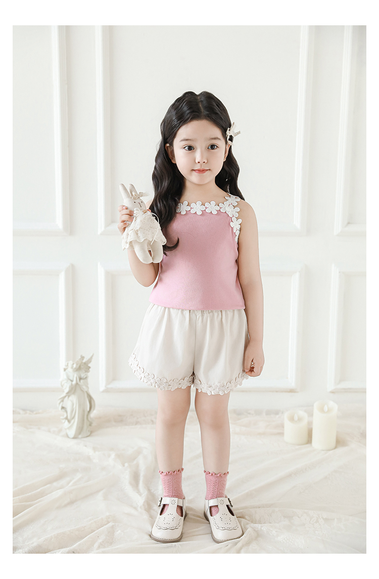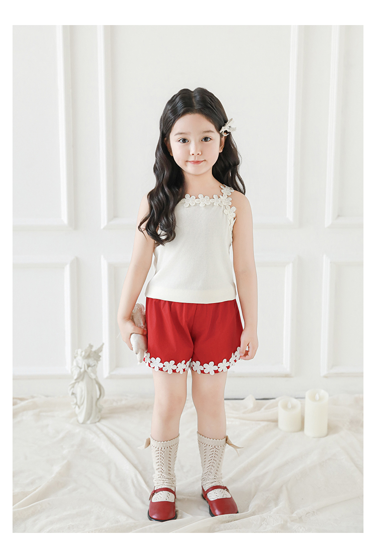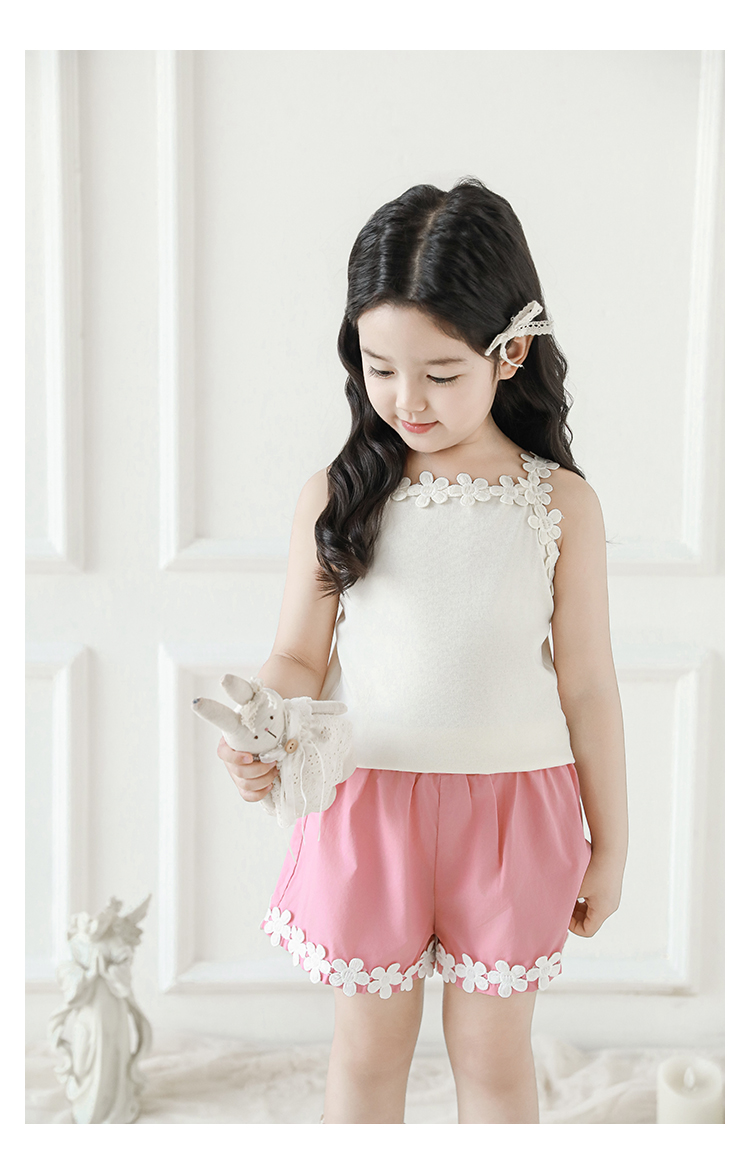 Wuri Bub 소녀의 자수 꽃 레이스 반바지 여름 경치 귀여운 통기성 느슨한 A 라인 캐주얼 바지