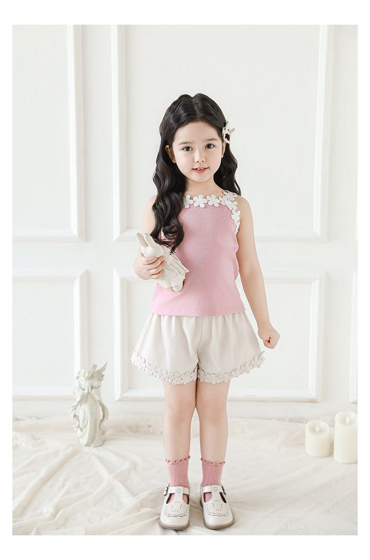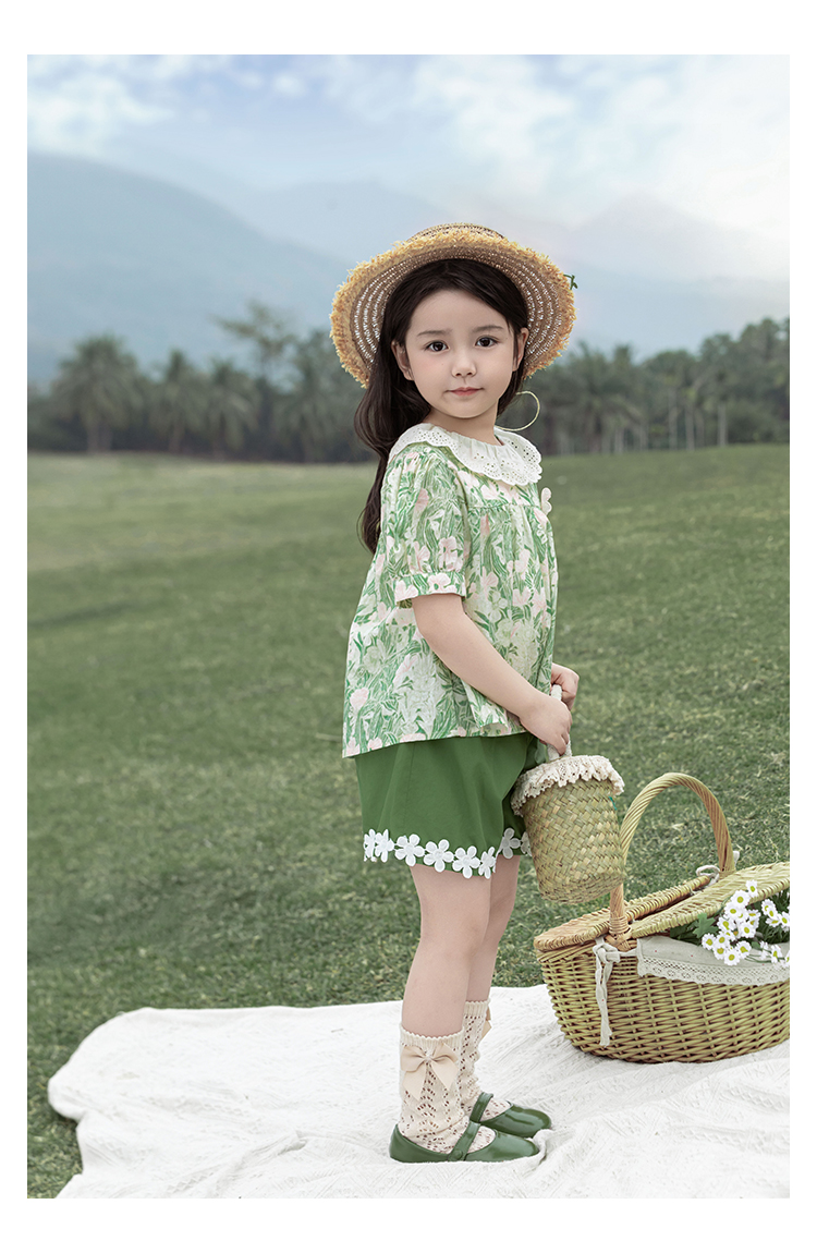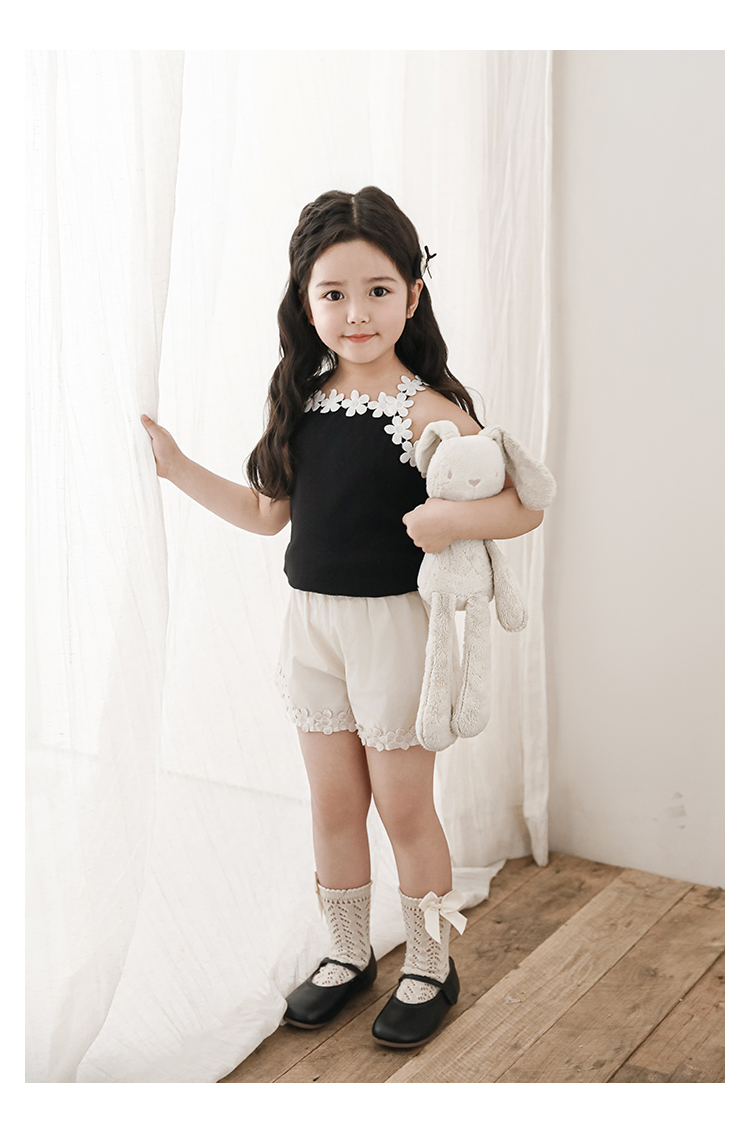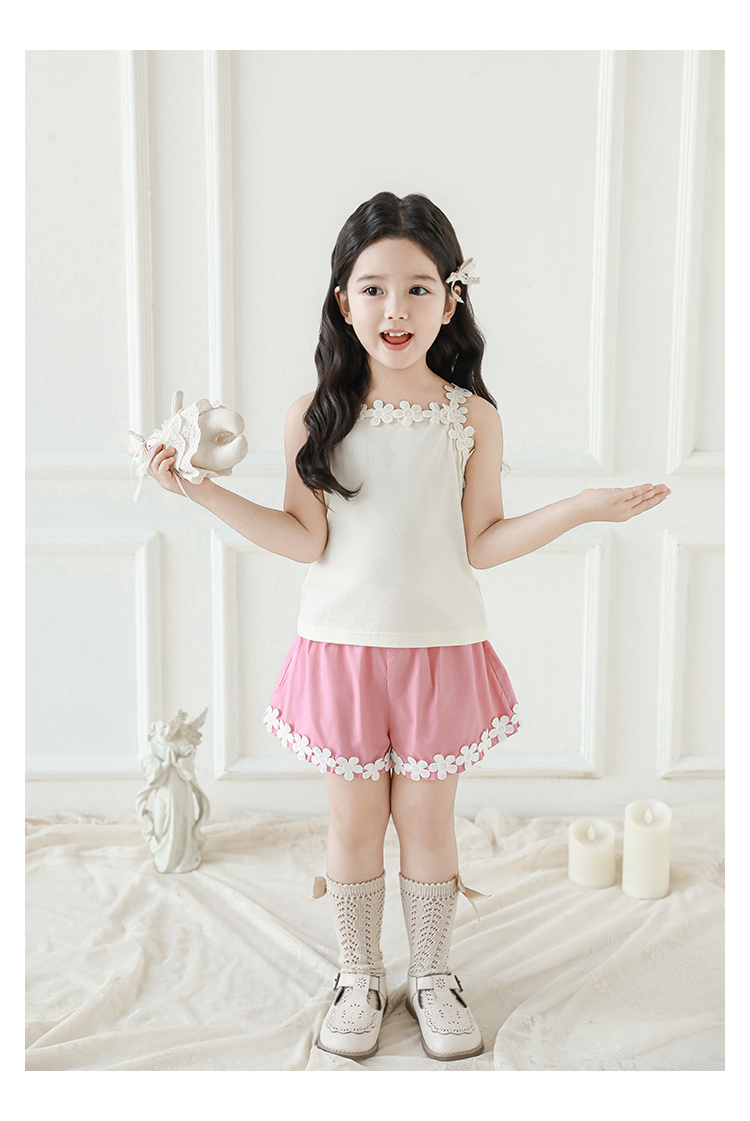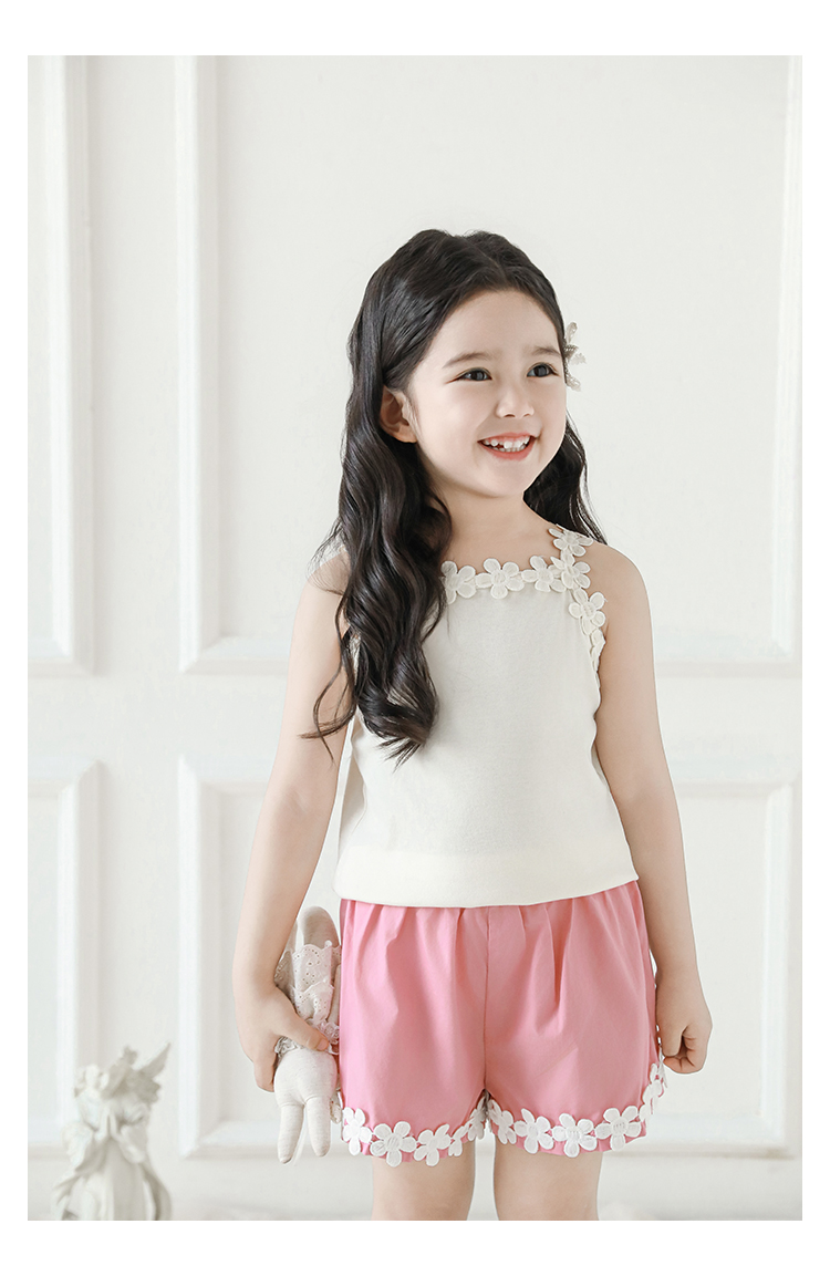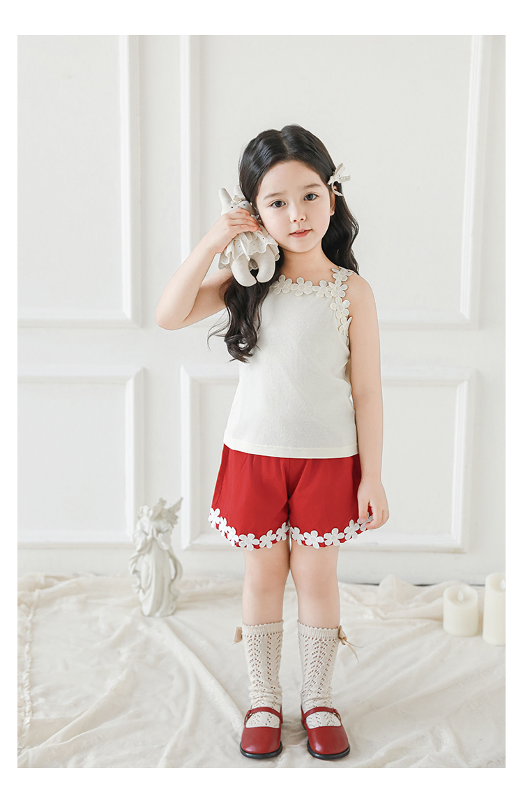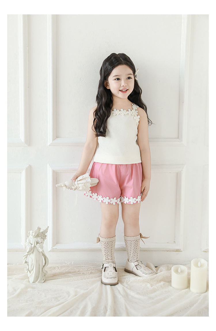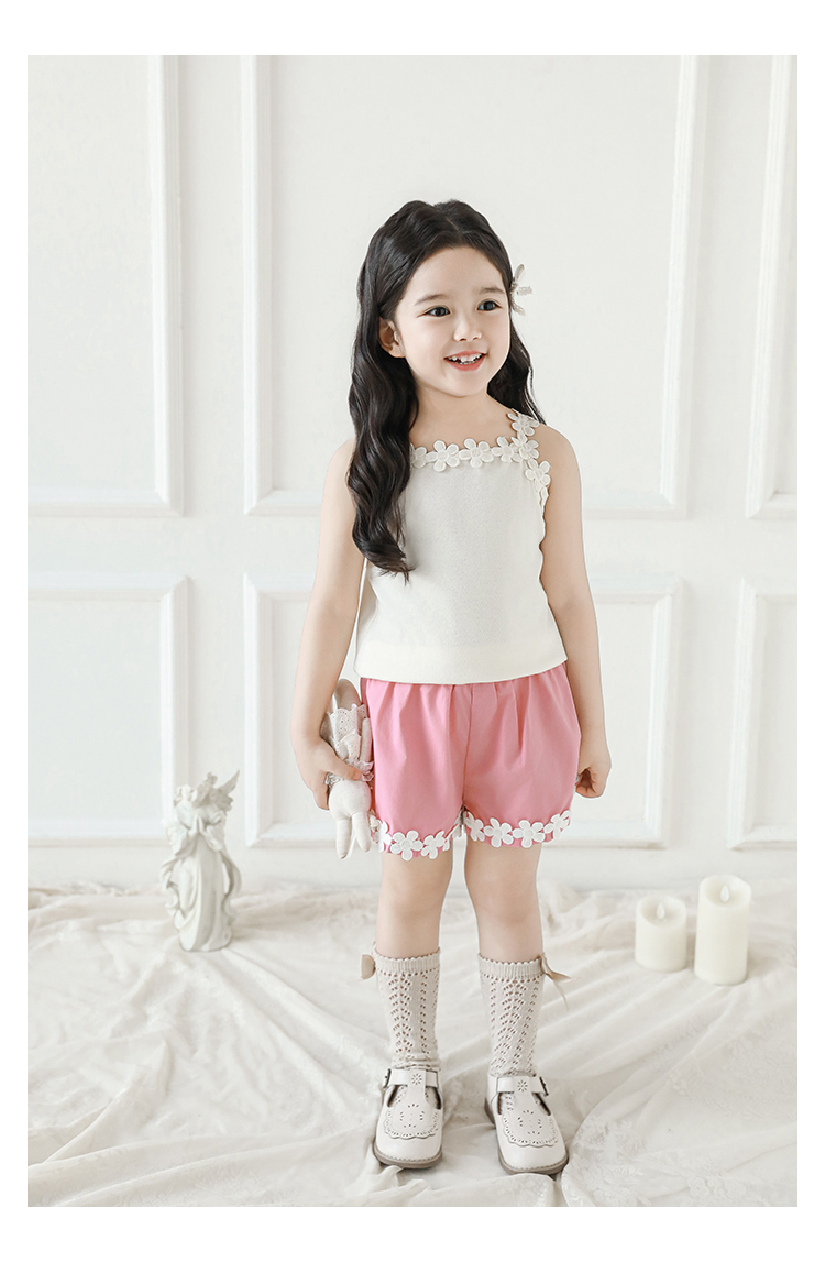 Wuri Bub 소녀의 자수 꽃 레이스 반바지 여름 경치 귀여운 통기성 느슨한 A 라인 캐주얼 바지