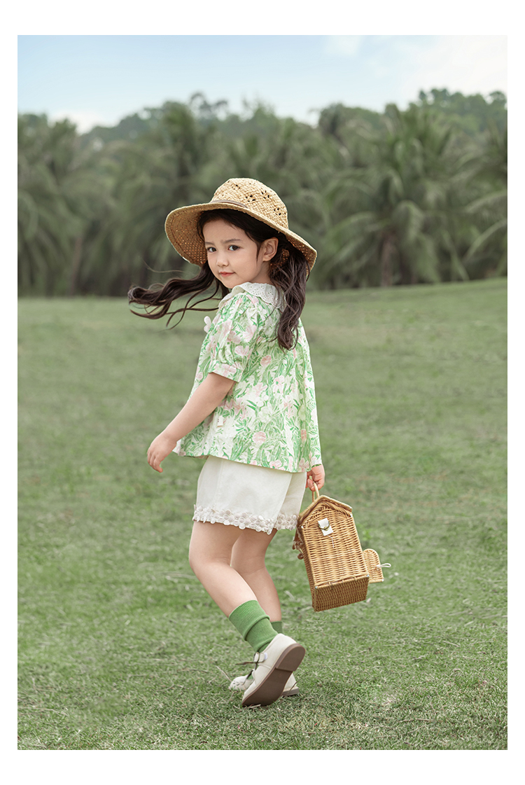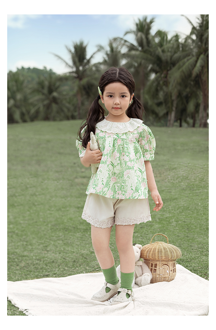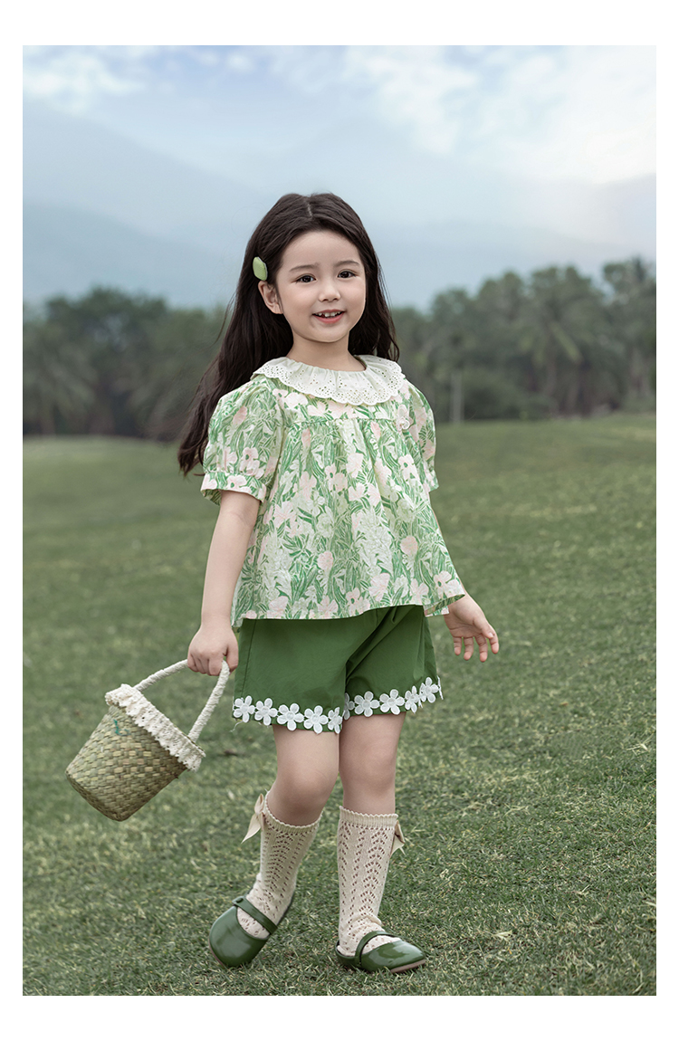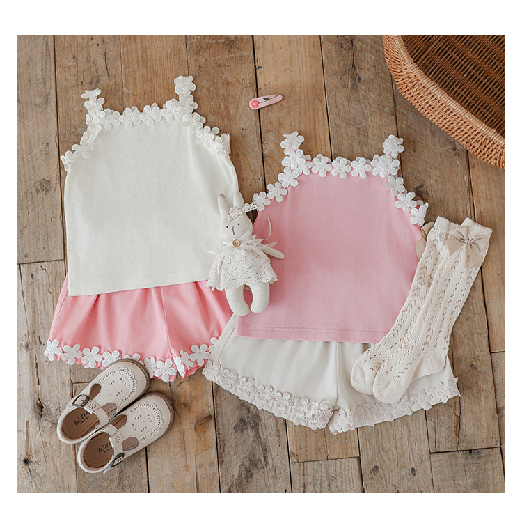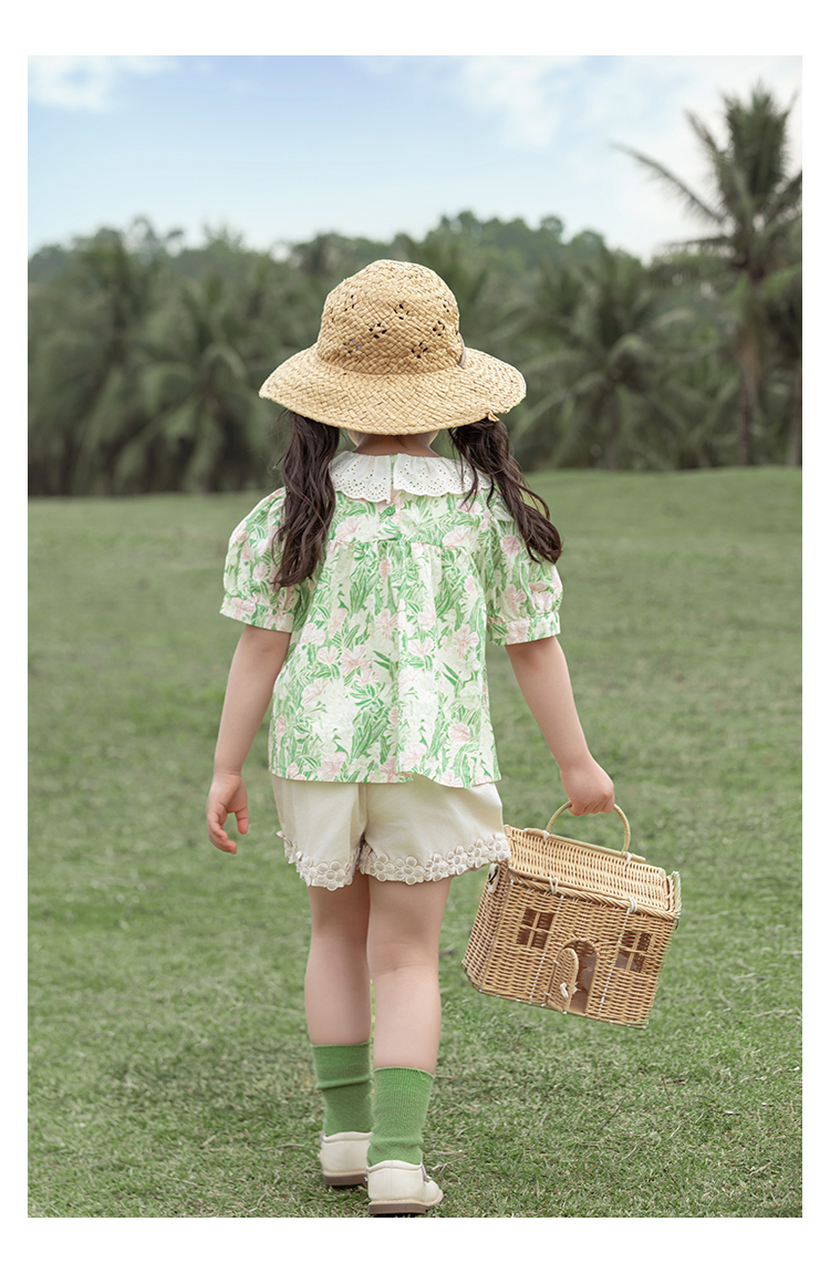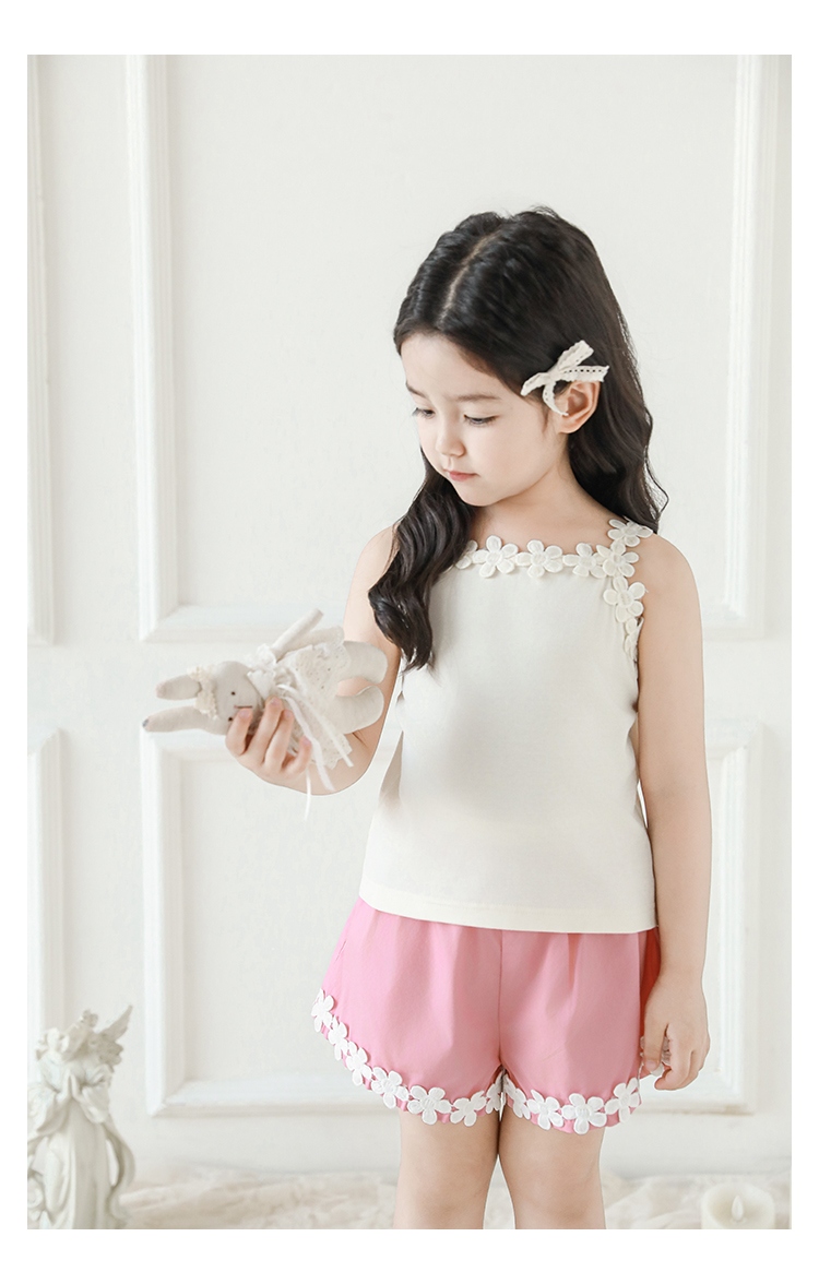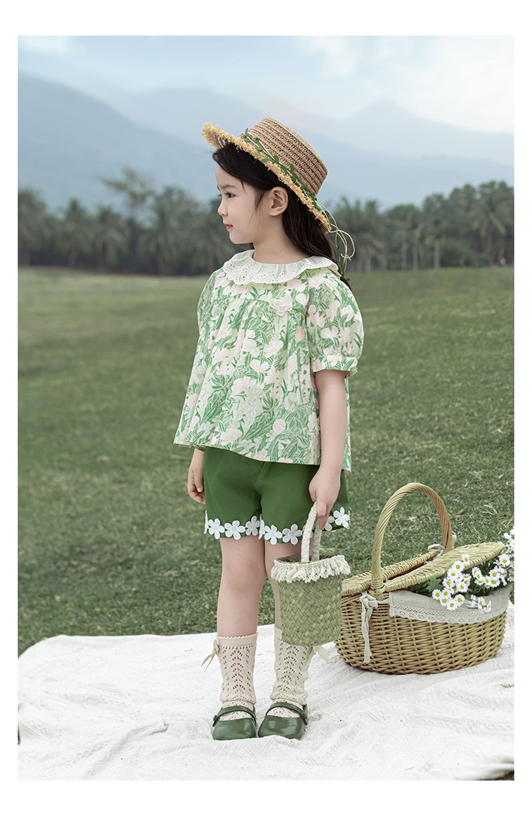 Wuri Bub 소녀의 자수 꽃 레이스 반바지 여름 경치 귀여운 통기성 느슨한 A 라인 캐주얼 바지