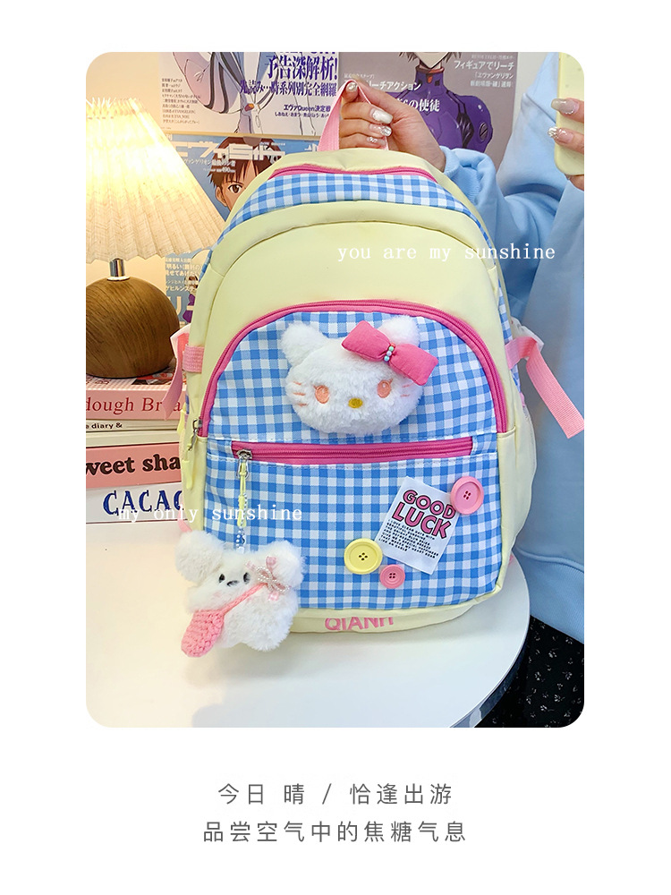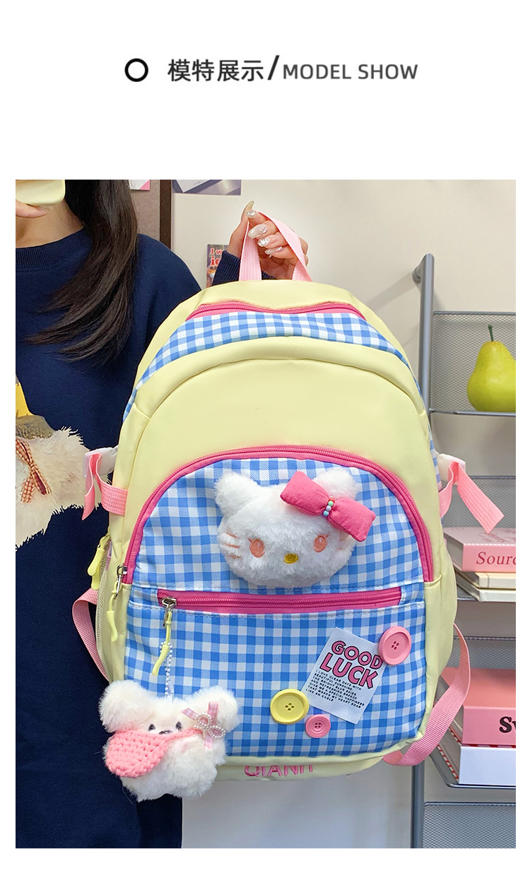 귀여운 도파민 스플라이스 체크 무늬 키티 고양이 대용량 배낭 한국어 버전 여성용 다용도 학생 학교 가방스토어 가기