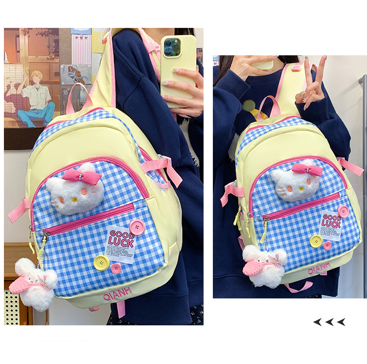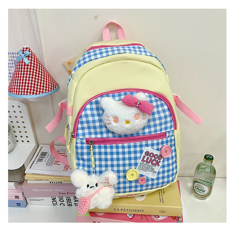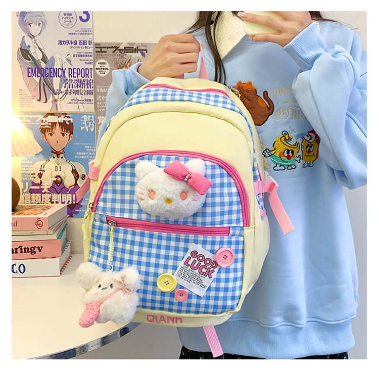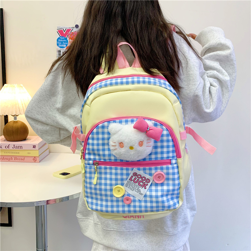 귀여운 도파민 스플라이스 체크 무늬 키티 고양이 대용량 배낭 한국어 버전 여성용 다용도 학생 학교 가방