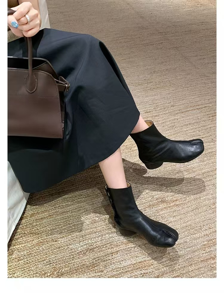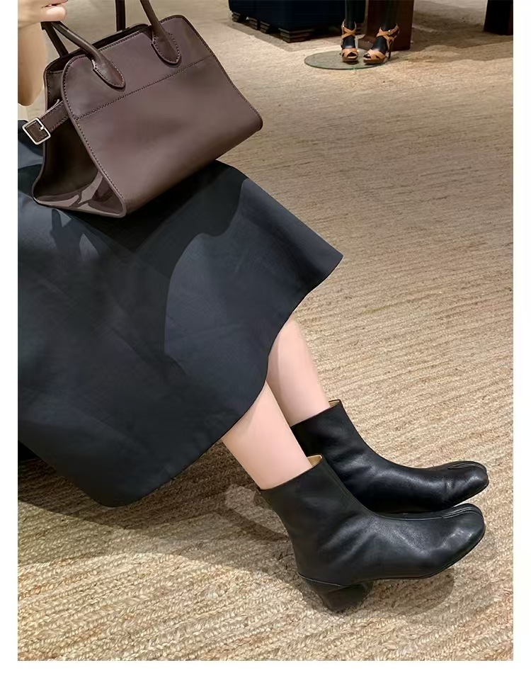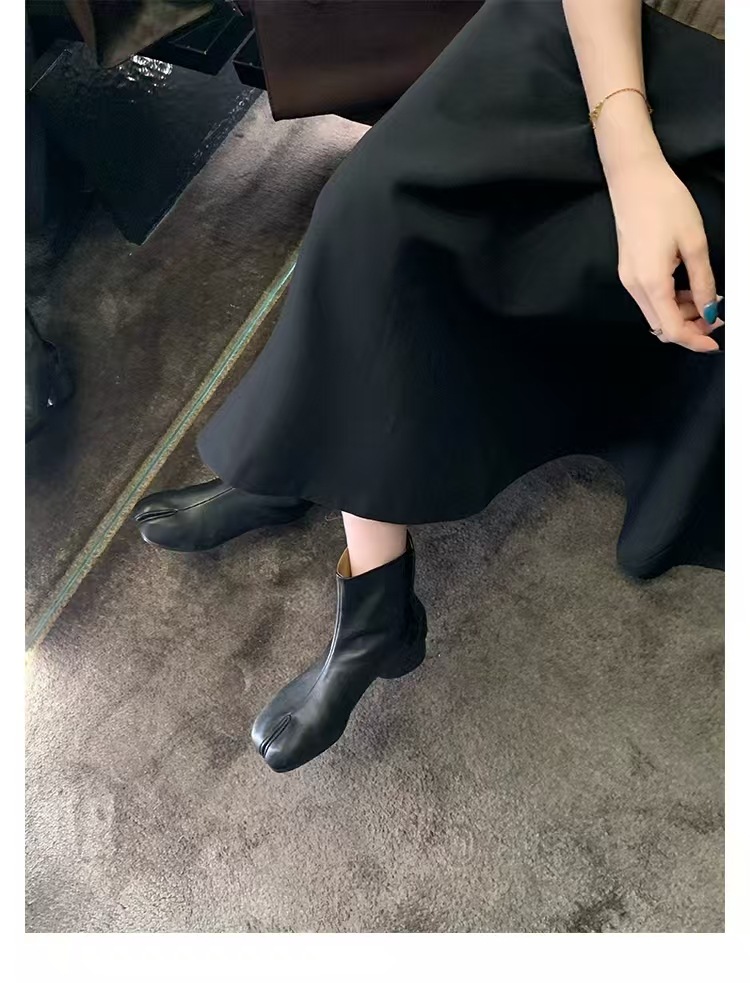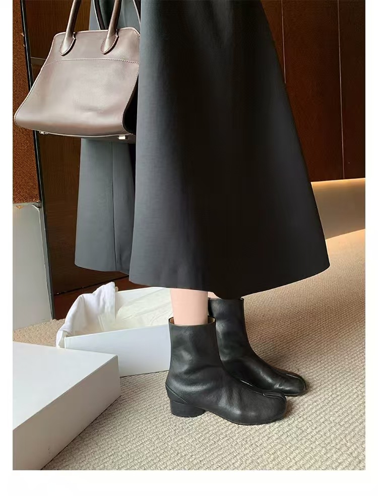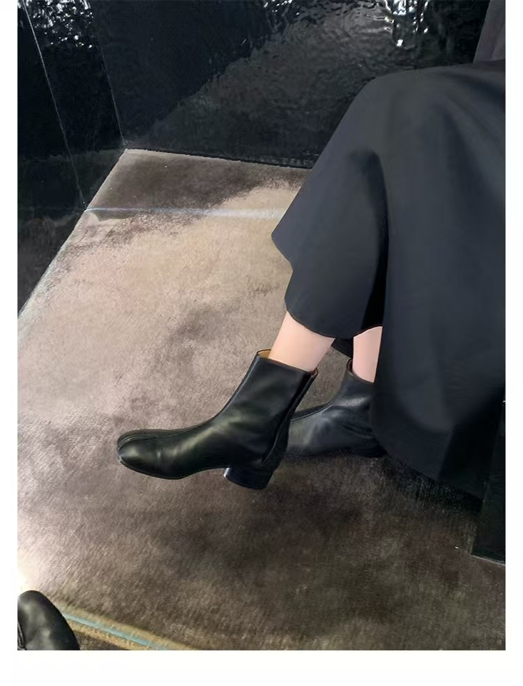 재고 있음~포도맘과 같은 스타일의 천연 가죽 토오픈 숏부츠, 슬립온 레트로 첼시 부츠, 중간 굽 마틴 부츠 여성용