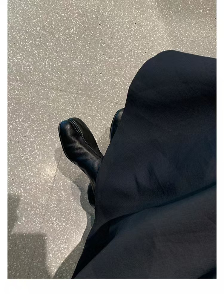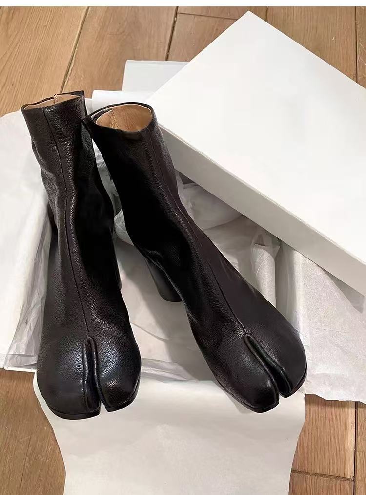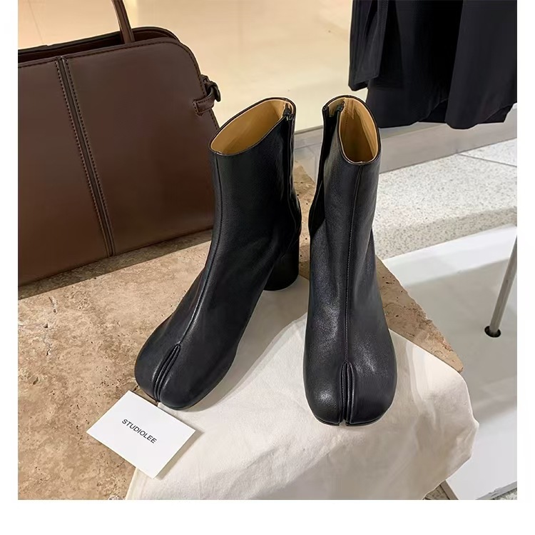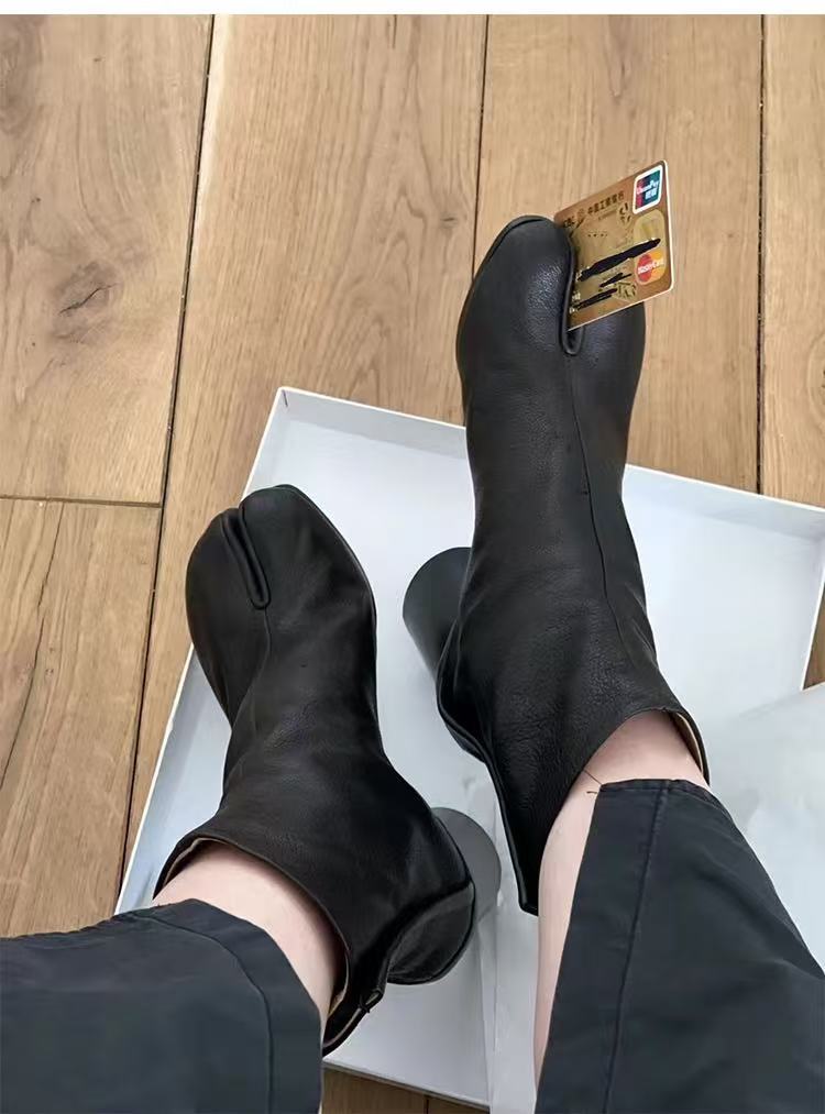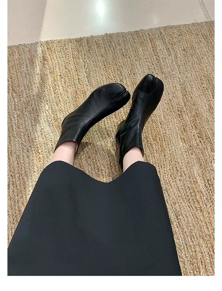 재고 있음~포도맘과 같은 스타일의 천연 가죽 토오픈 숏부츠, 슬립온 레트로 첼시 부츠, 중간 굽 마틴 부츠 여성용