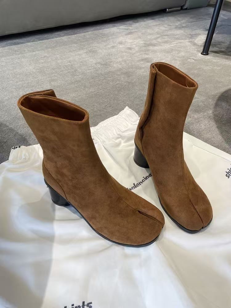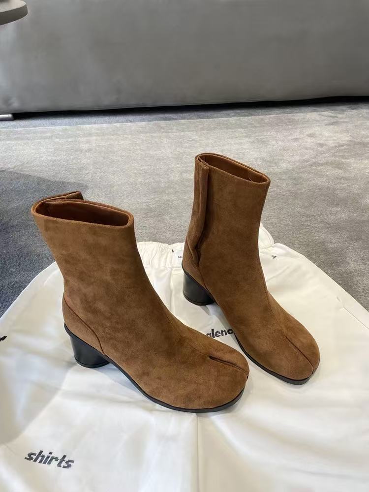 재고 있음~포도맘과 같은 스타일의 천연 가죽 토오픈 숏부츠, 슬립온 레트로 첼시 부츠, 중간 굽 마틴 부츠 여성용스토어 가기