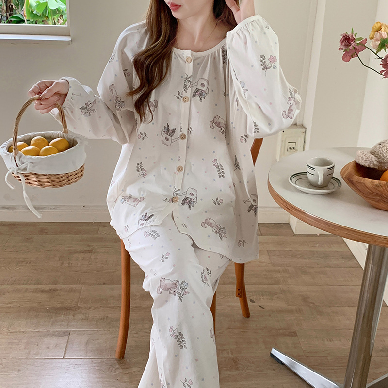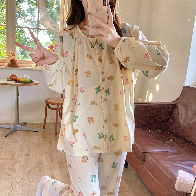 7A 항균 클래스 A 100% 면 산후복 임산부 잠옷 봄, 가을 산후 산모 수유 홈웨어
