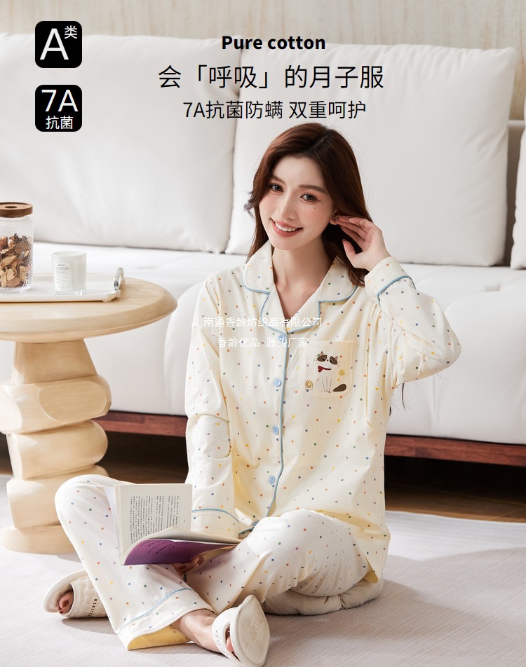 7A 항균 클래스 A 100% 면 산후복 임산부 잠옷 봄, 가을 산후 산모 수유 홈웨어스토어 가기