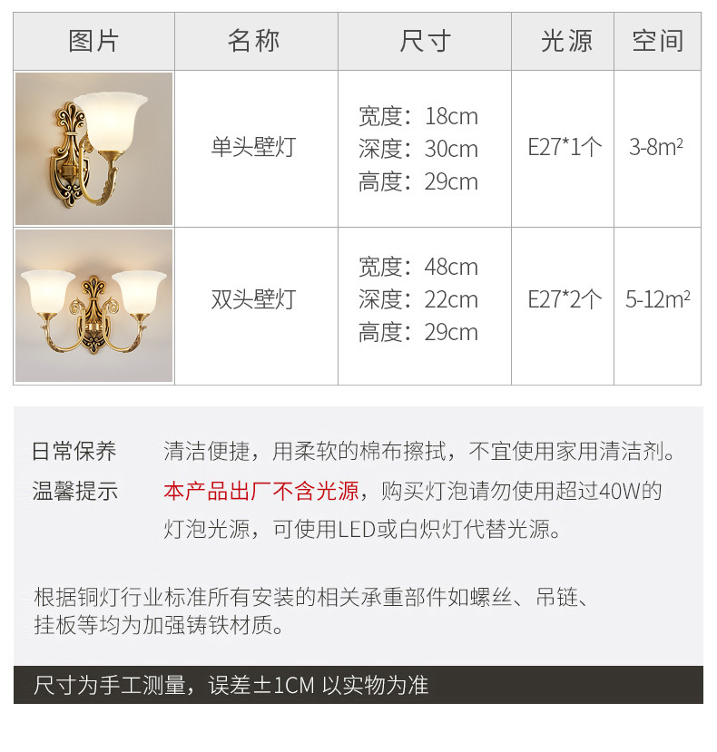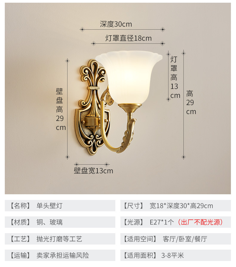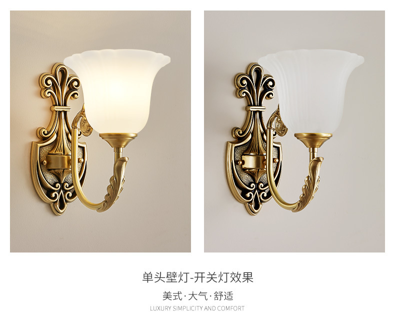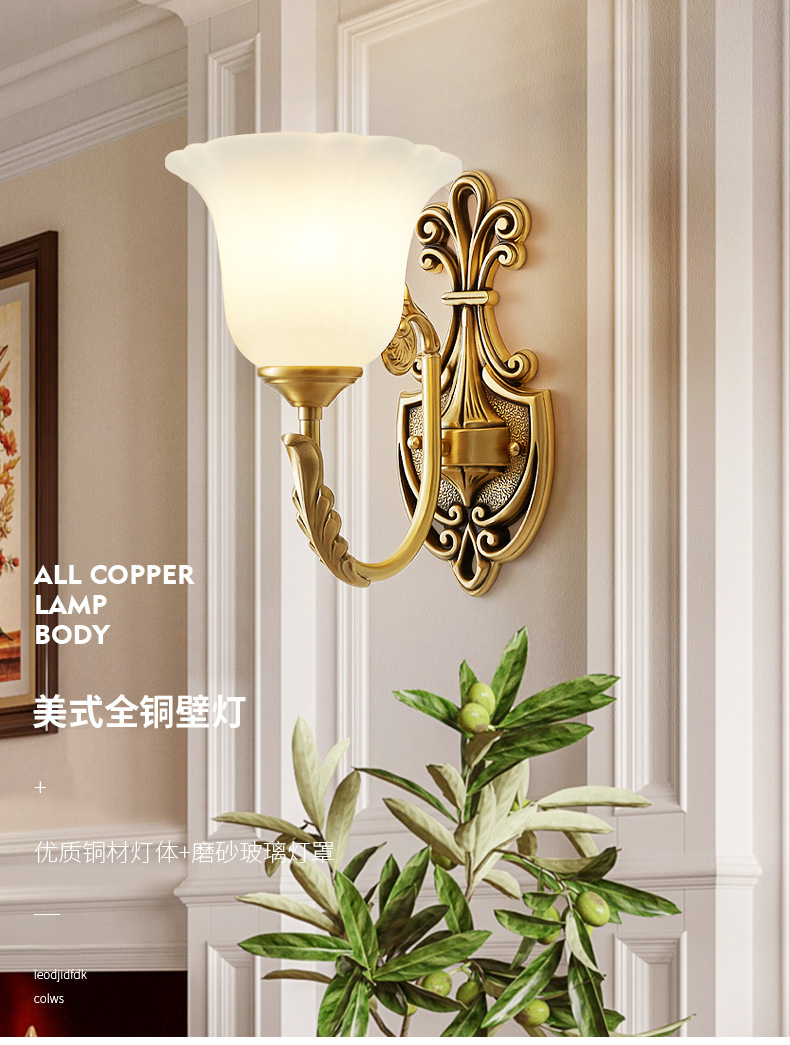미국 구리 벽 램프 간단한 복고풍 유럽 거실 배경 벽 복도 침실 침대 옆 램프 LZ219스토어 가기