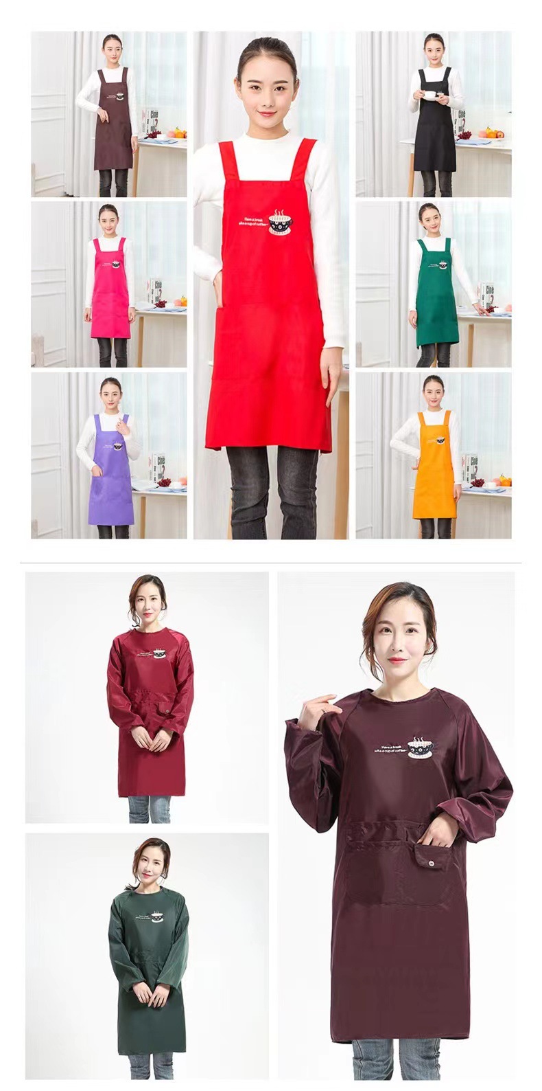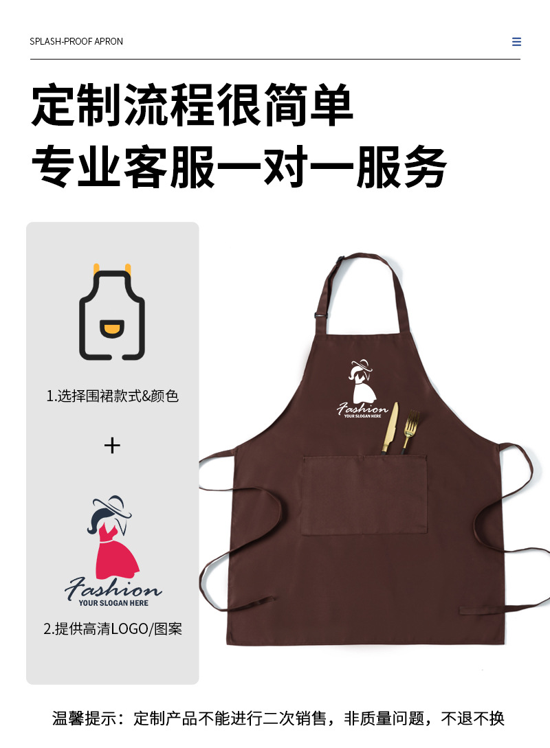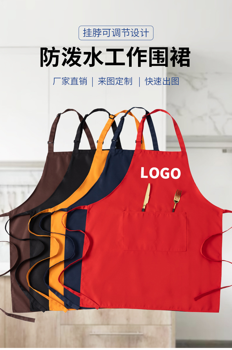 폴리에스터 면 혼방 앞치마 맞춤 로고 인쇄 방수 방유 작업복 광고 홍보 커피 밀크티 가게 앞치마 민소매스토어 가기