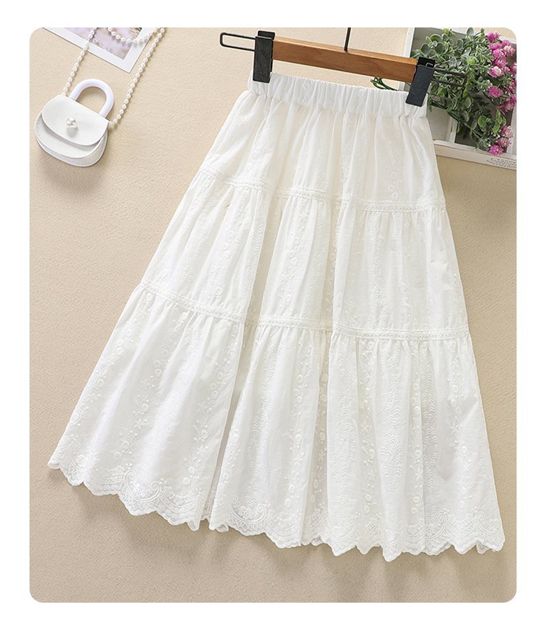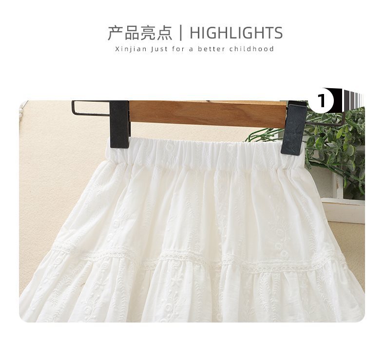 소녀 흰 치마 아름다운 2025 새로운 여름 원피스 어린이 치마 소녀 큰 어린이 중간 길이 치마스토어 가기