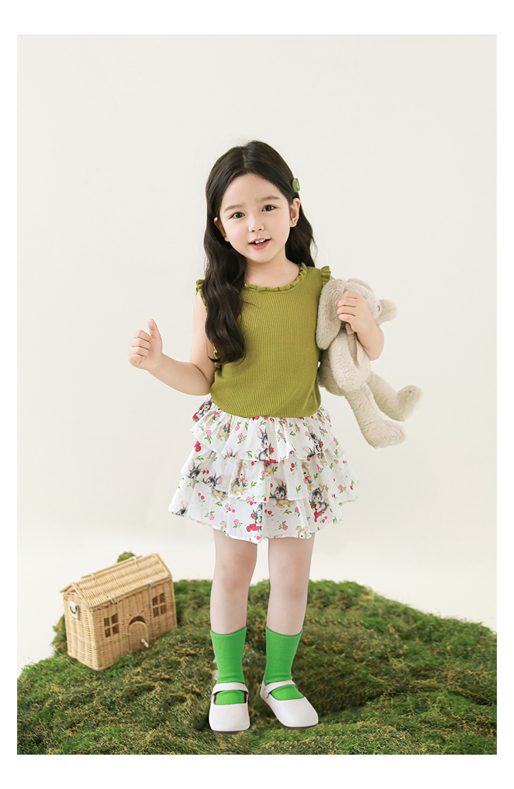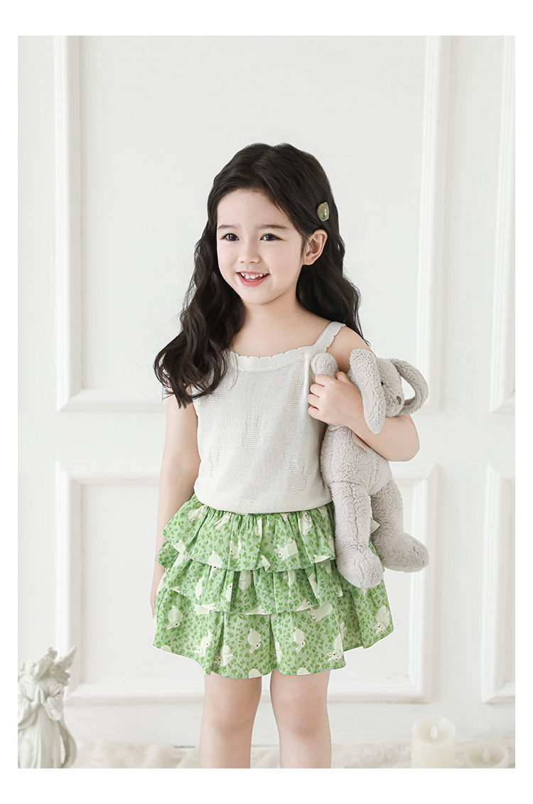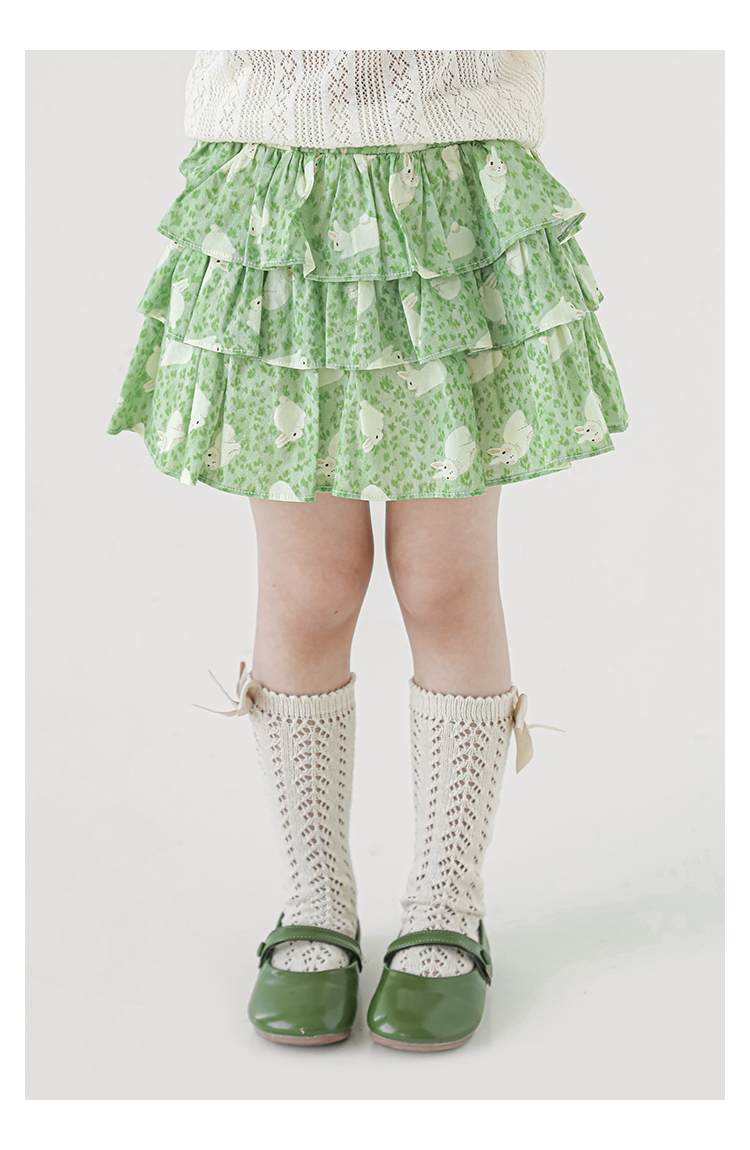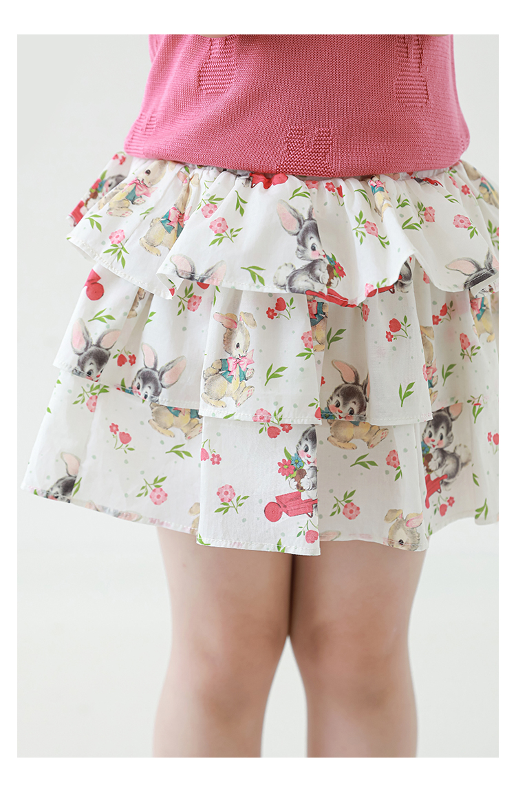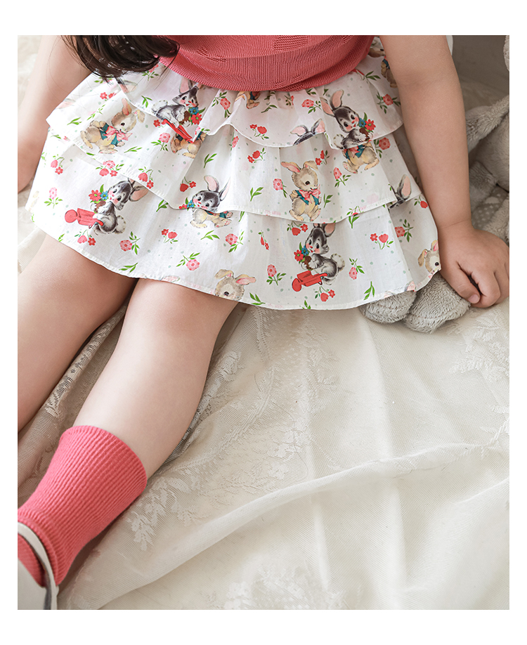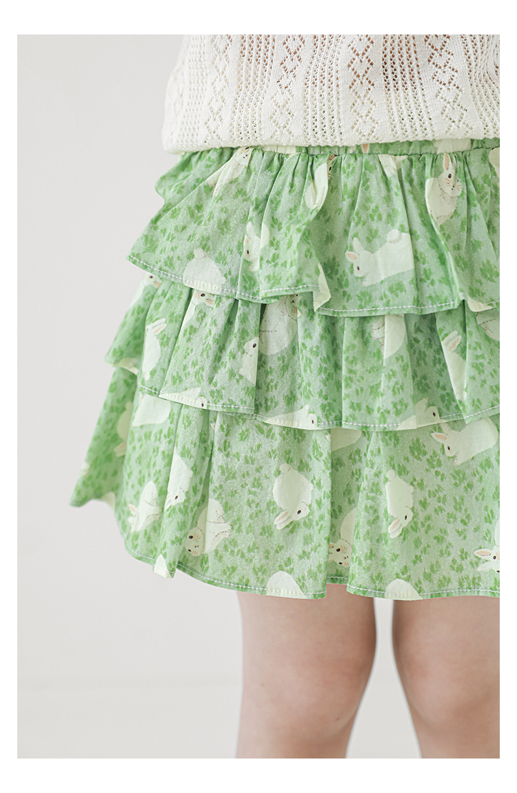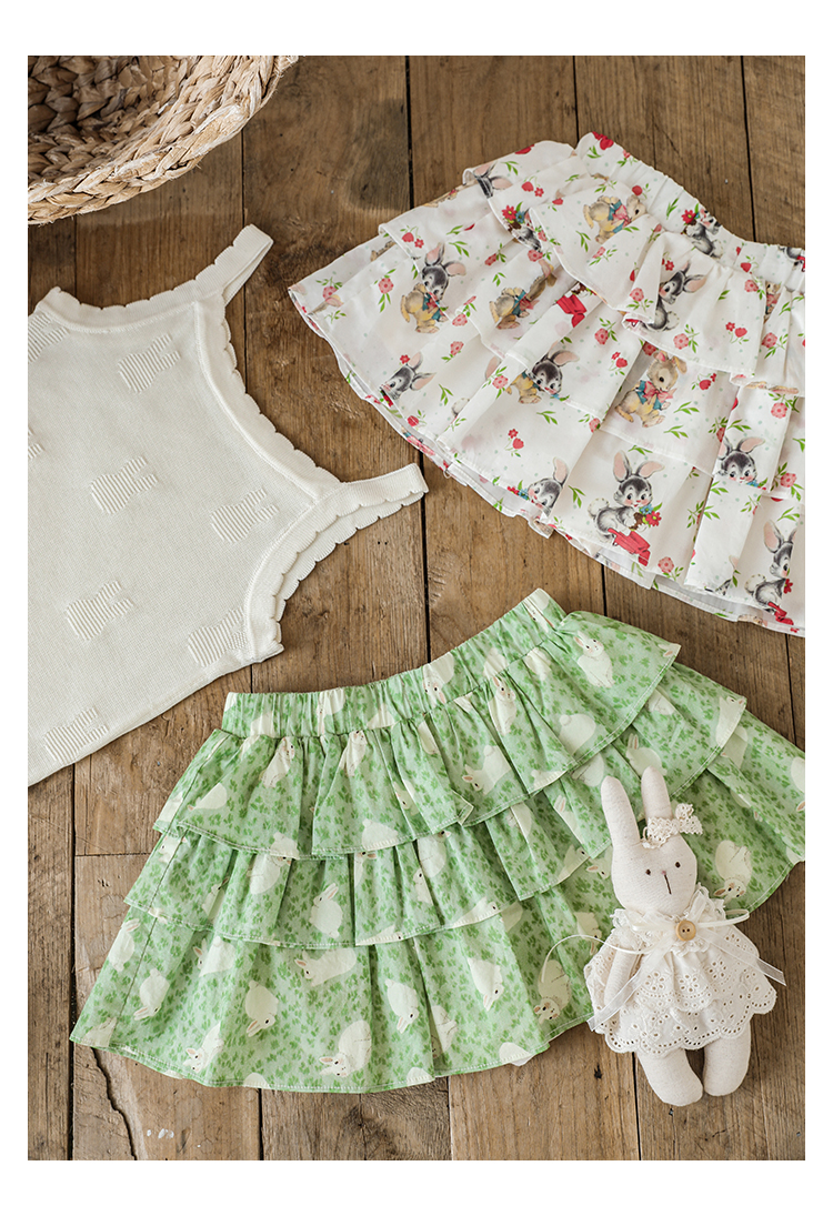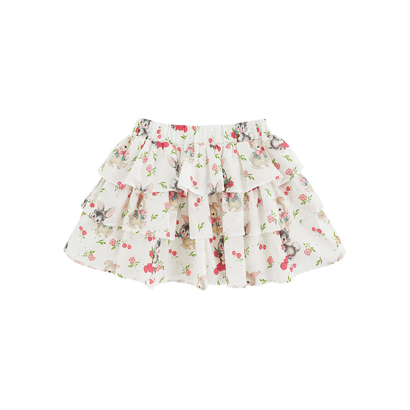 Wuribu 소녀의 3 층 케이크 예쁜 치마 여름 상쾌한 달콤한 토끼 인쇄 경량 통기성 치마