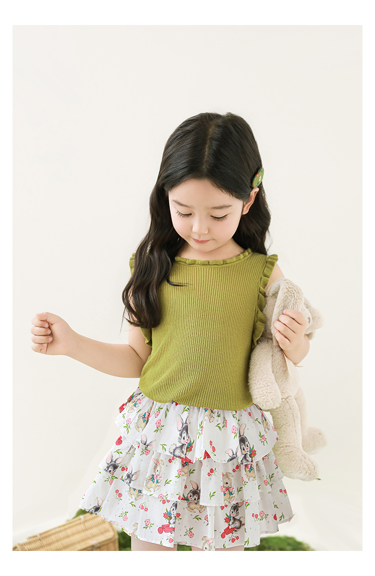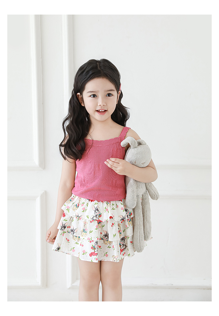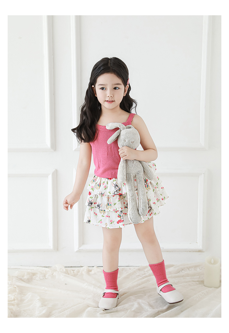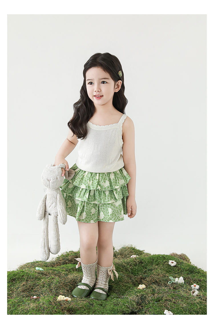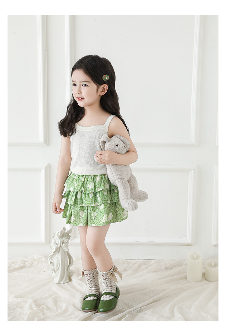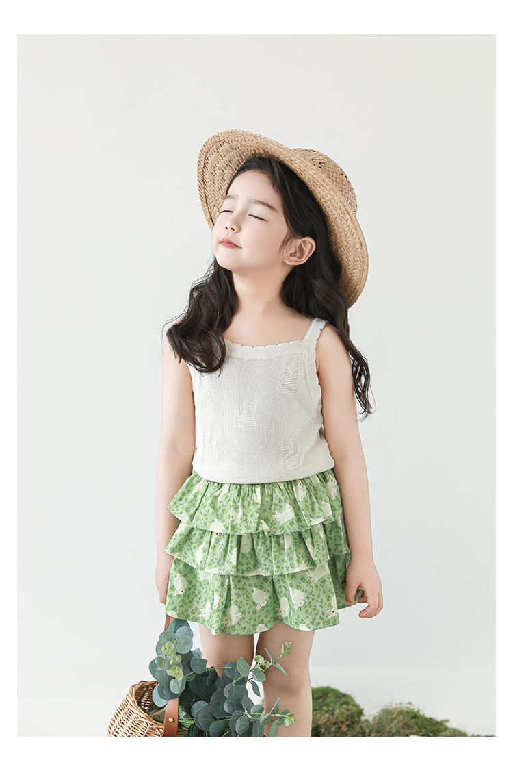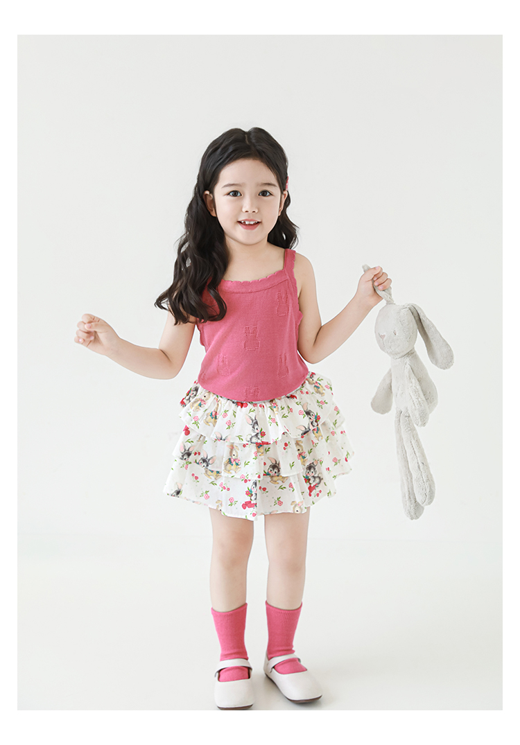 Wuribu 소녀의 3 층 케이크 예쁜 치마 여름 상쾌한 달콤한 토끼 인쇄 경량 통기성 치마